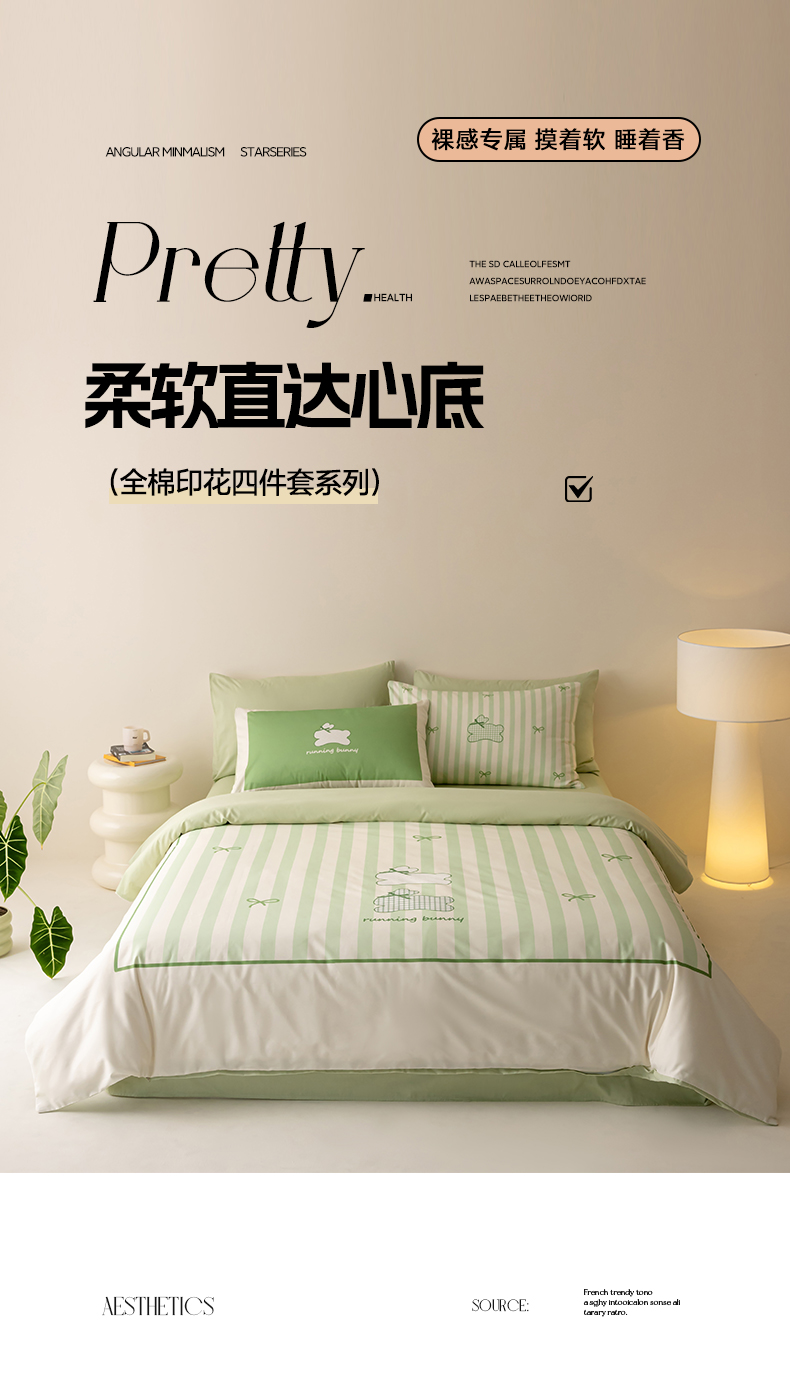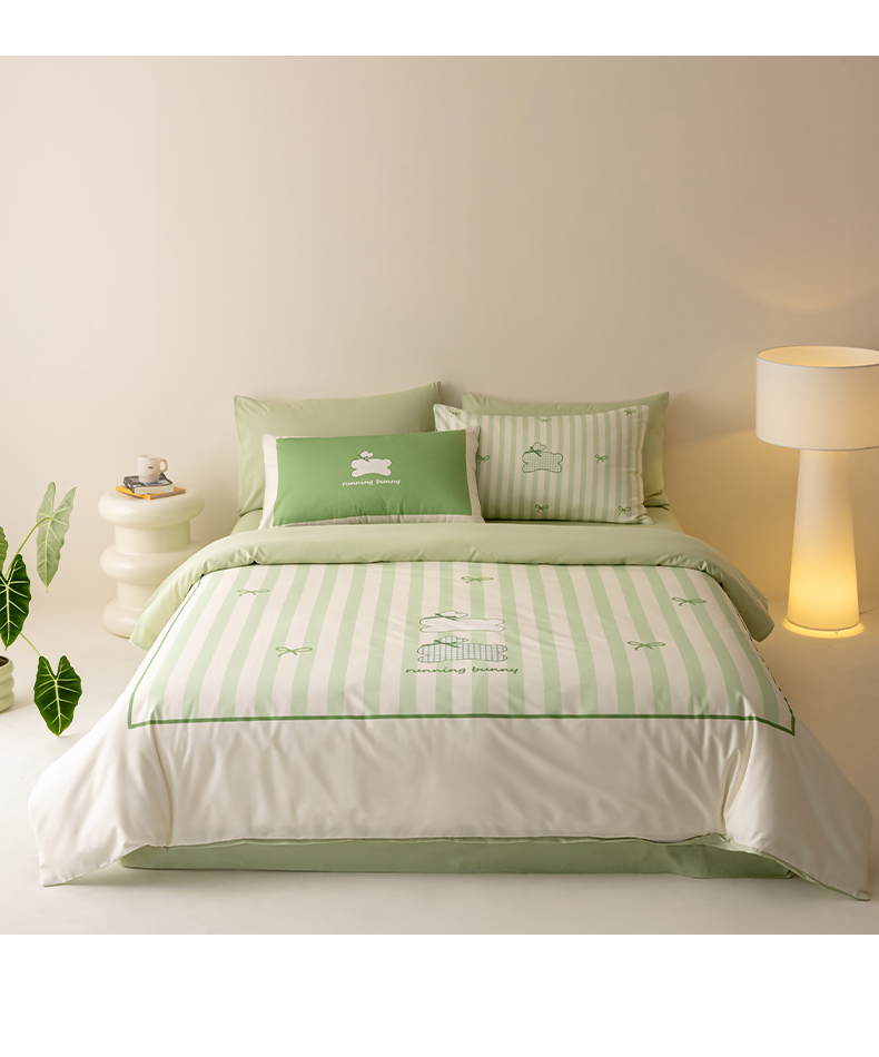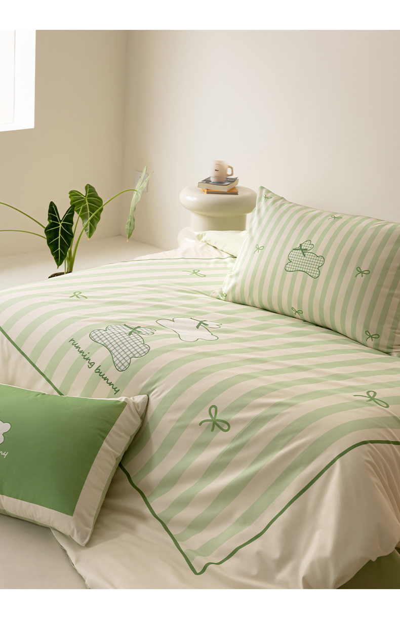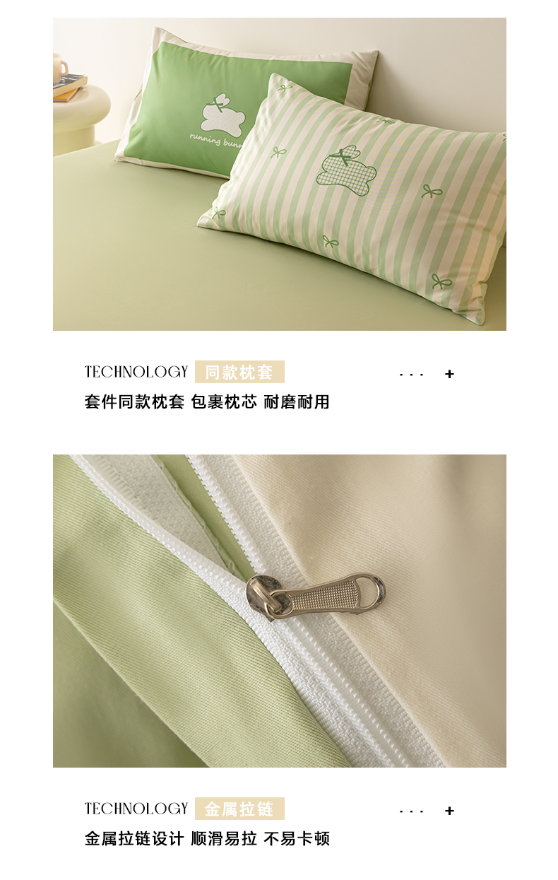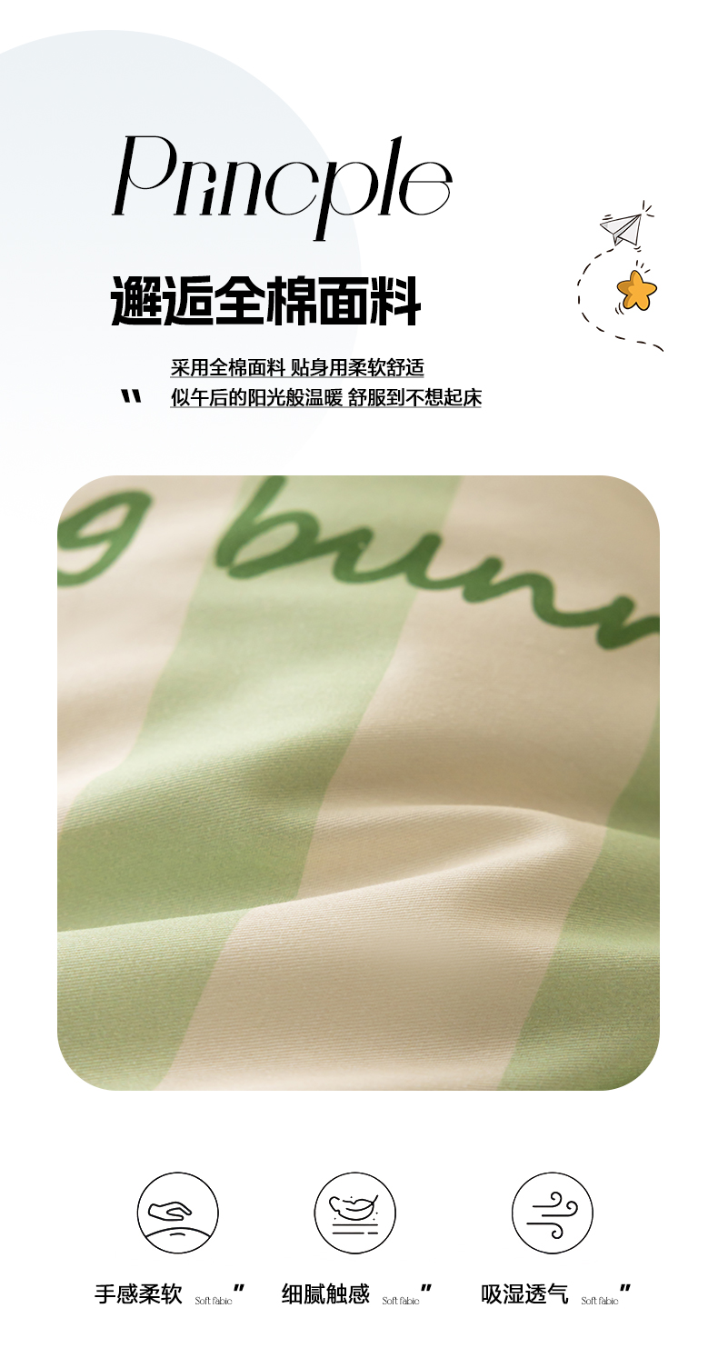 商品名称:雅居纺家纺 2024新款全棉印花13372大版四件套 奔跑小兔