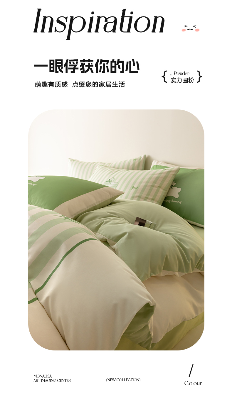 雅居纺家纺 2024新款全棉印花13372大版四件套 奔跑小兔
