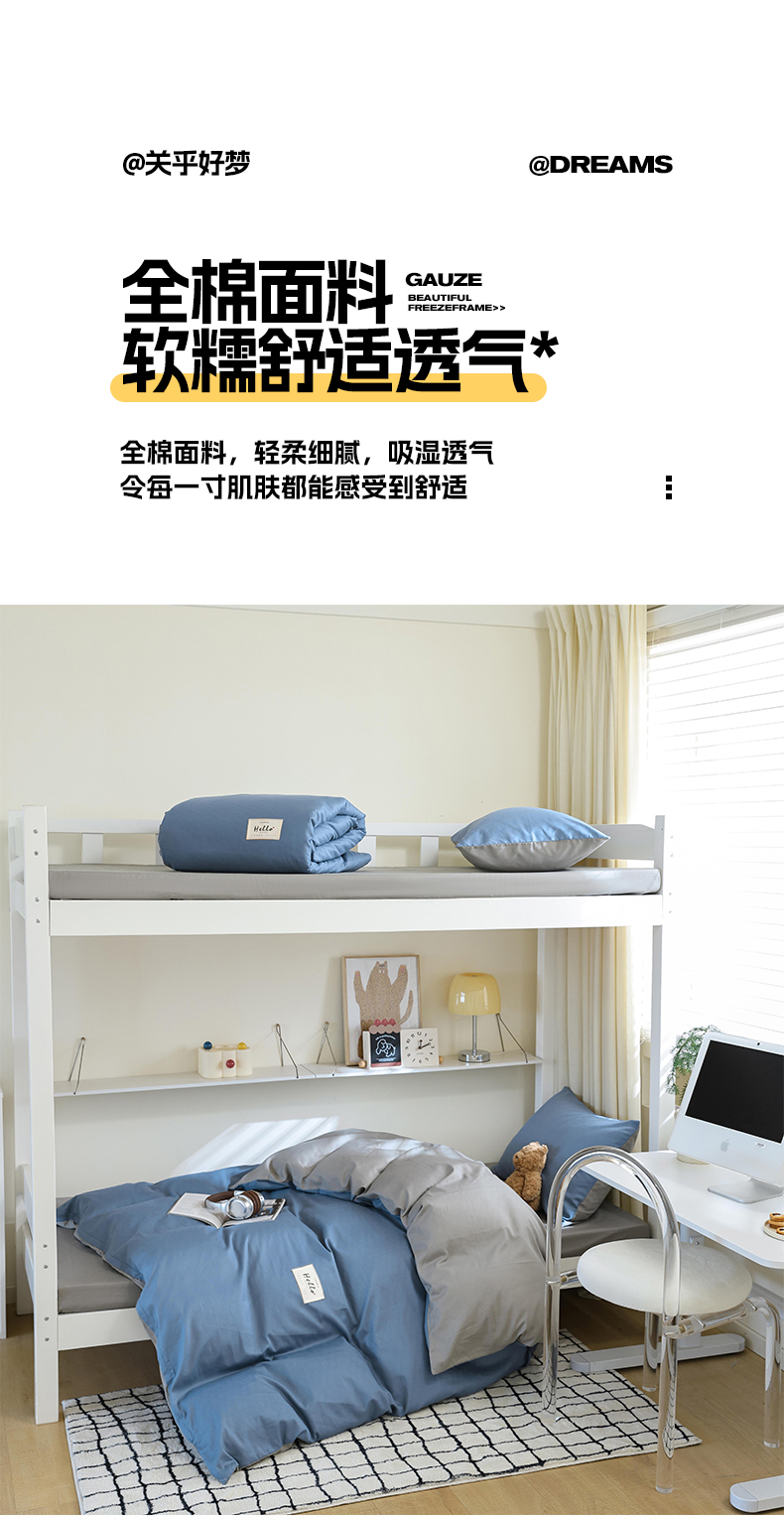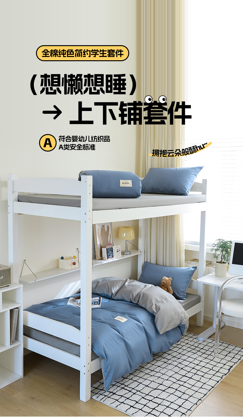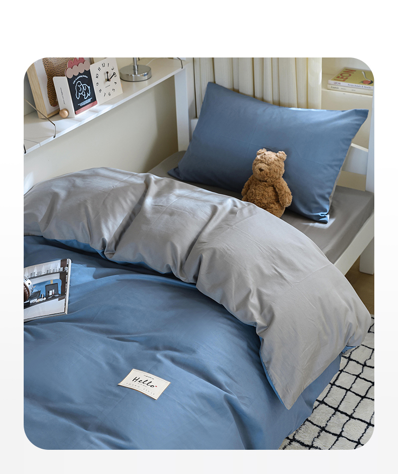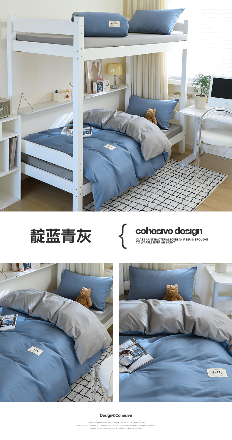 当前位置: 91家纺网 > 商品网购 > 床品套件 > 四件套 > 全棉普通四件套 > 寐眠 2024新款全棉纯色简约学生三件套 靛蓝青灰