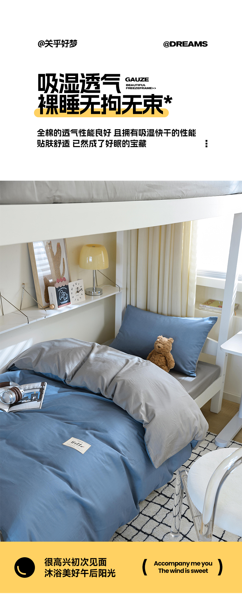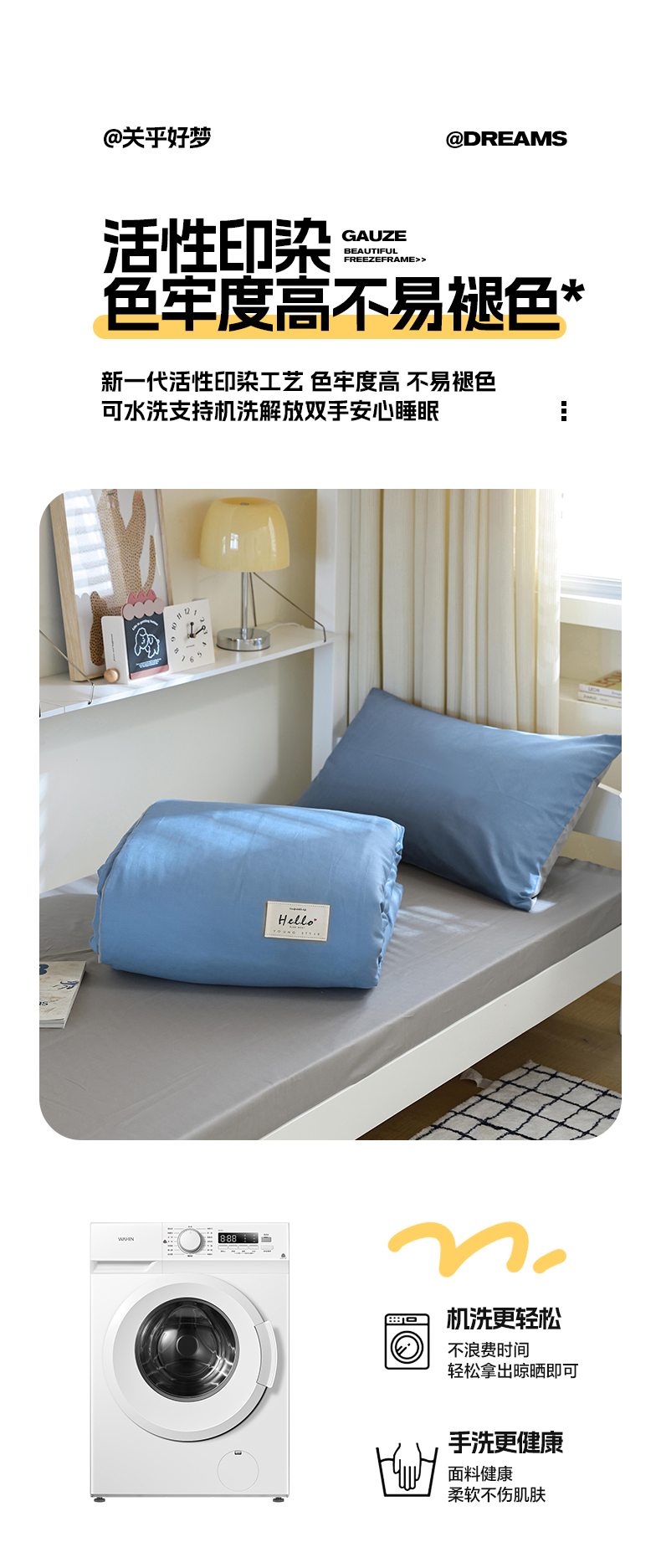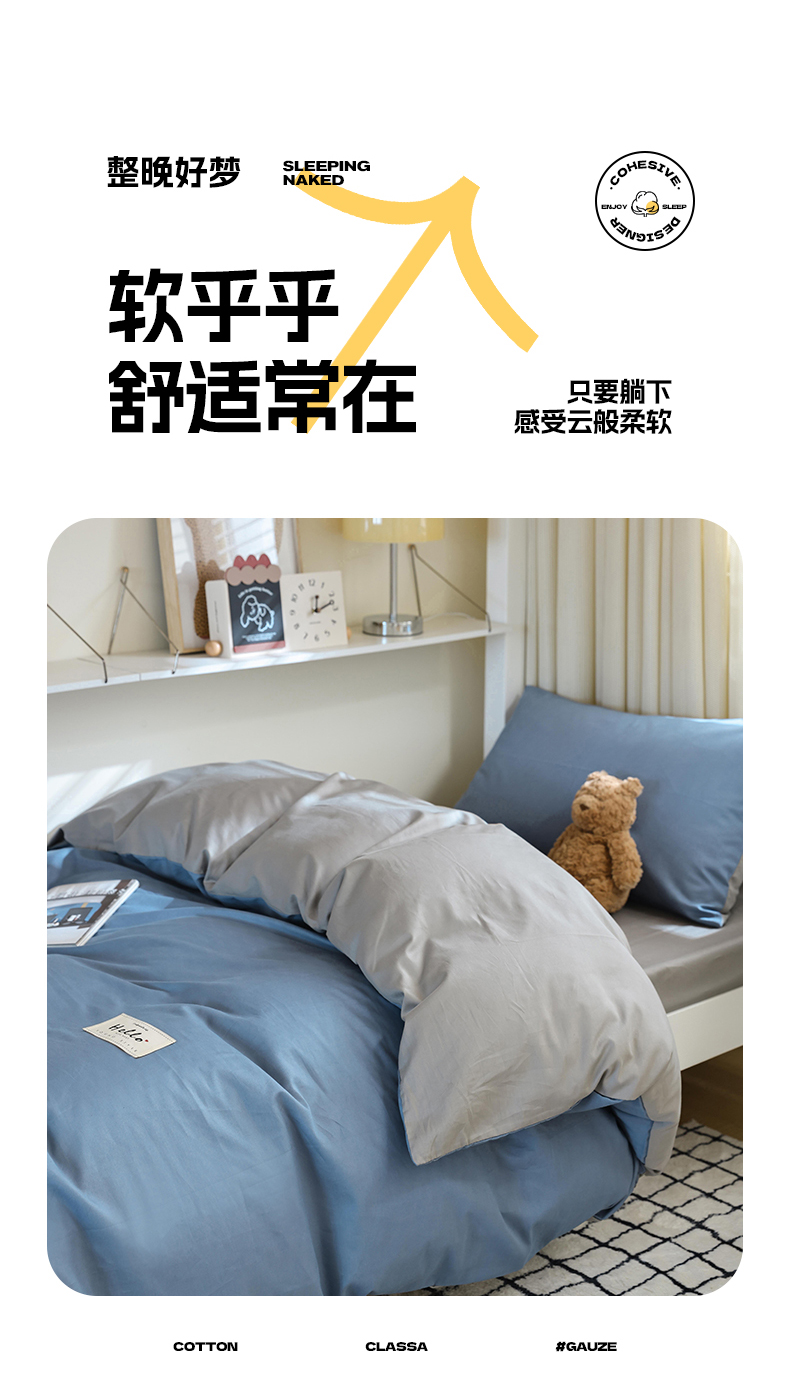 当前位置: 91家纺网 > 商品网购 > 床品套件 > 四件套 > 全棉普通四件套 > 寐眠 2024新款全棉纯色简约学生三件套 靛蓝青灰
