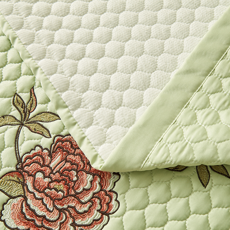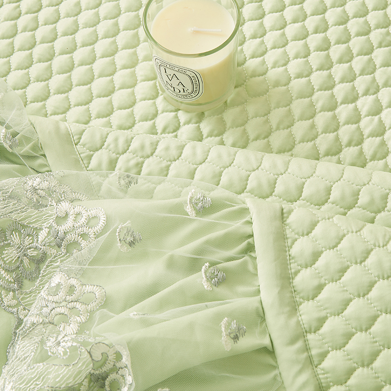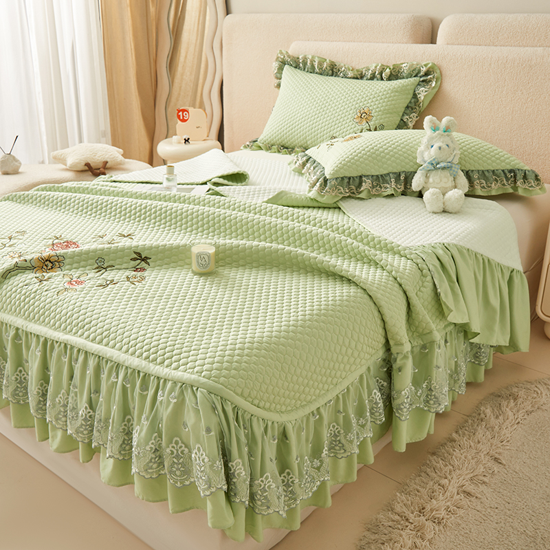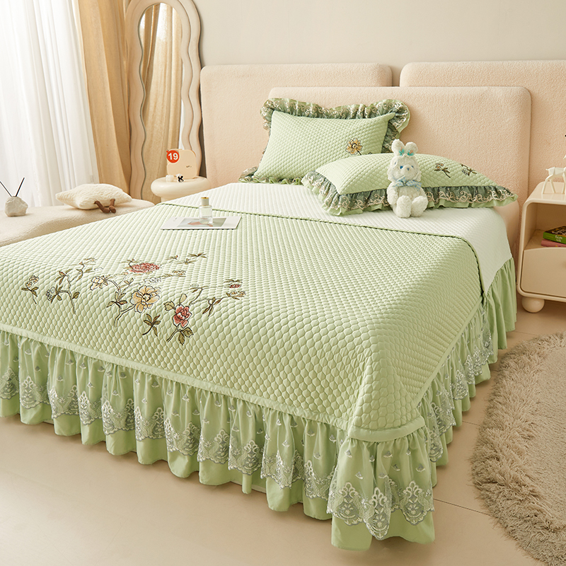 紫碧螺家纺 2024新款刺绣花边床裙式床盖(仿天丝) 嫩绿