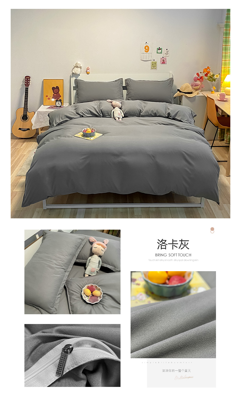 悦织湾家纺 2025新款纯色床单款芦荟棉四件套 洛卡灰