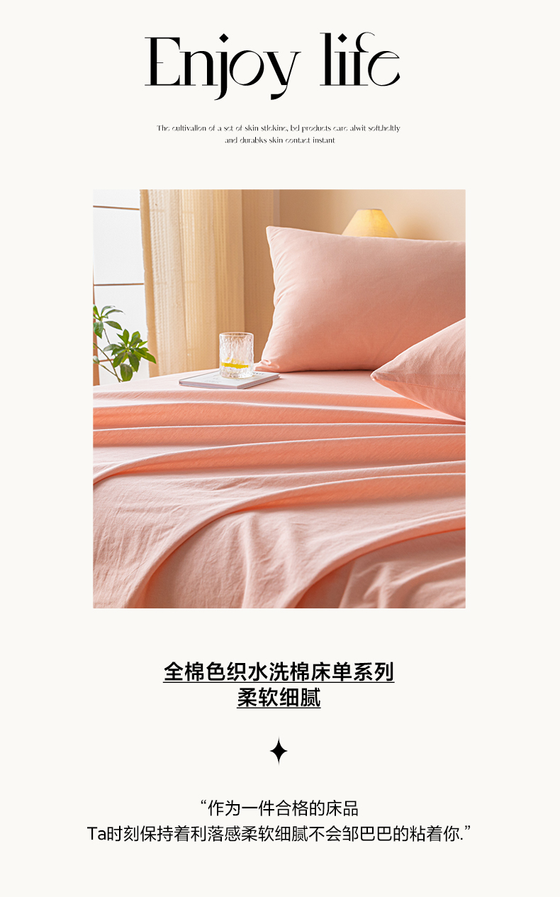 商品名称:卡伦家纺 2025新款全棉色织水洗棉床单学生宿舍单人双人床单系列粉青年