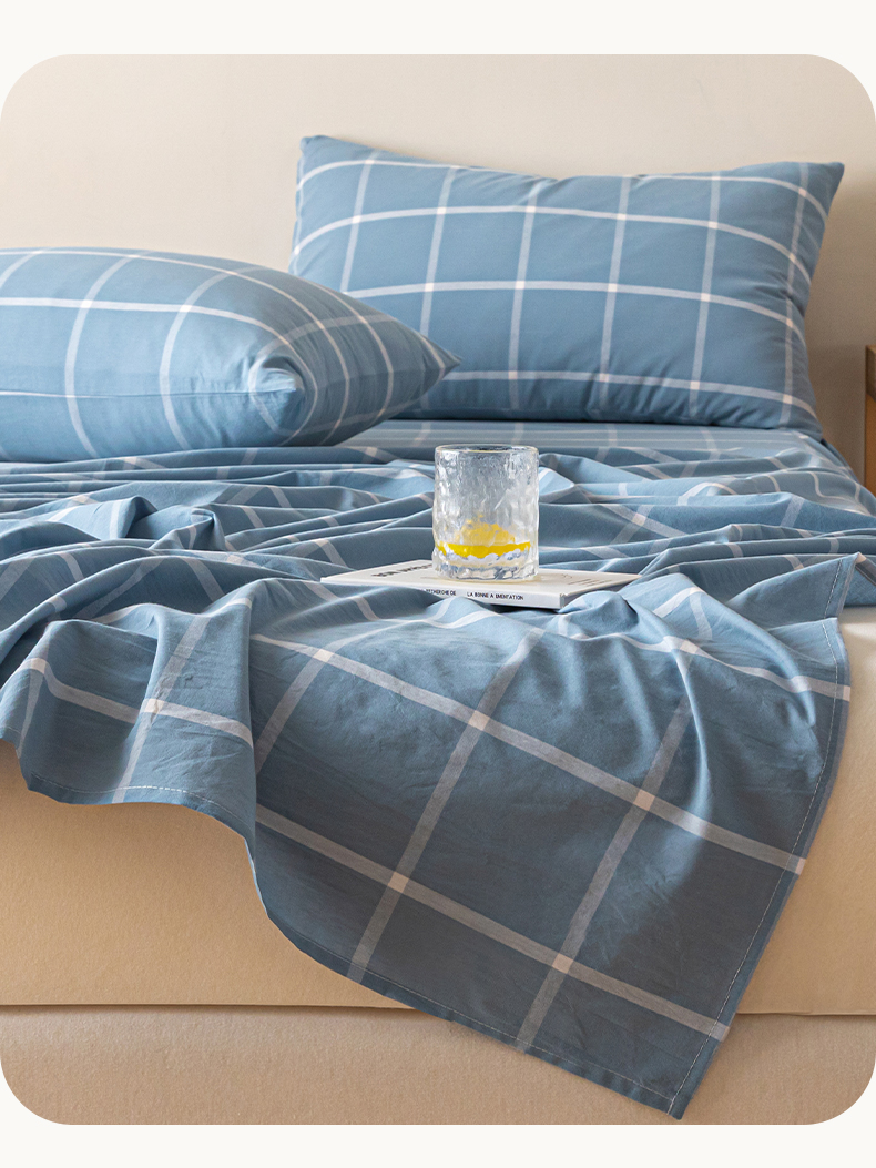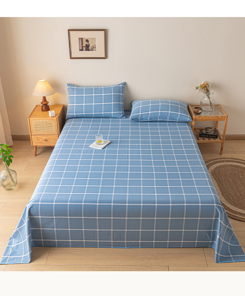 商品名称:2025新款全棉色织水洗棉床单学生宿舍单人双人床单系列 蓝灰中格