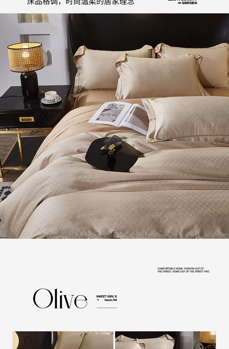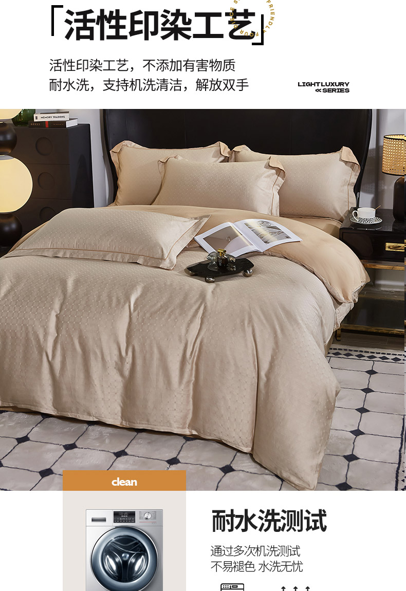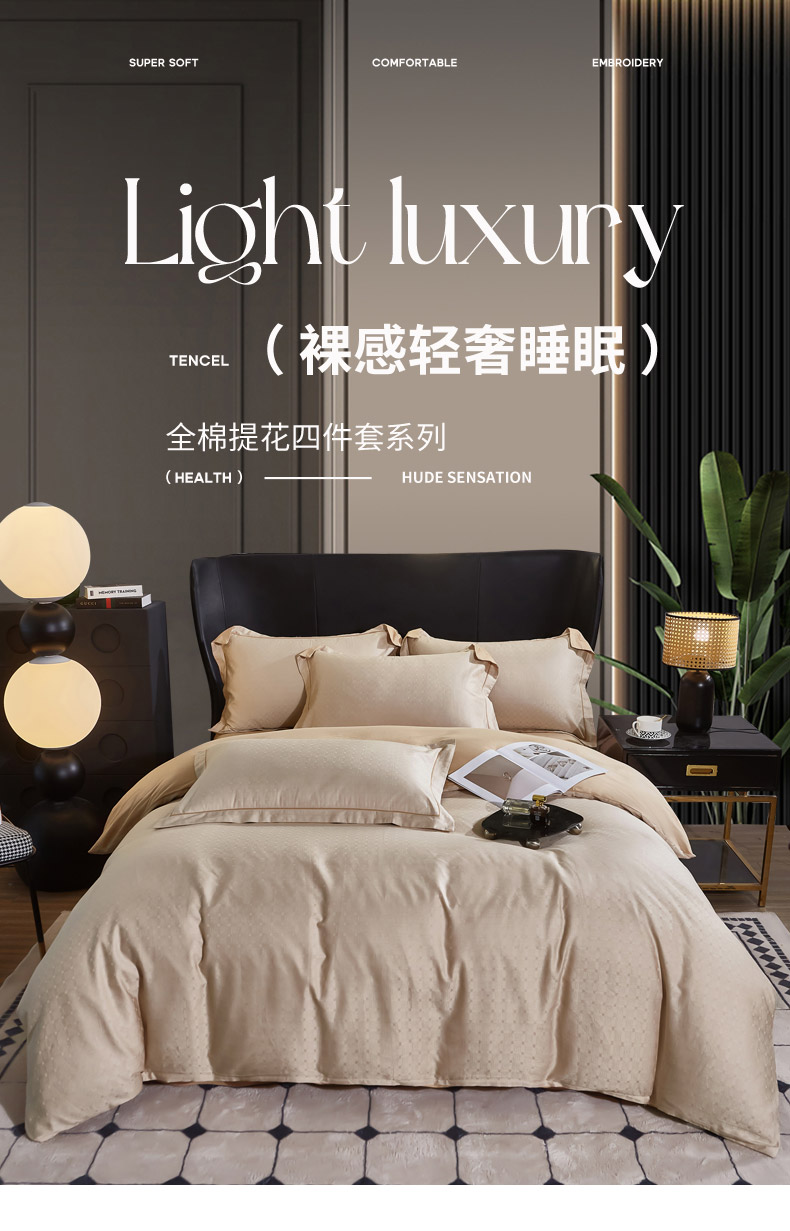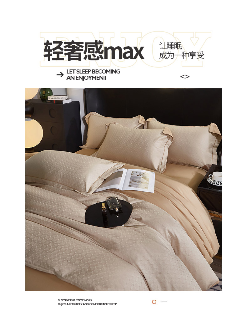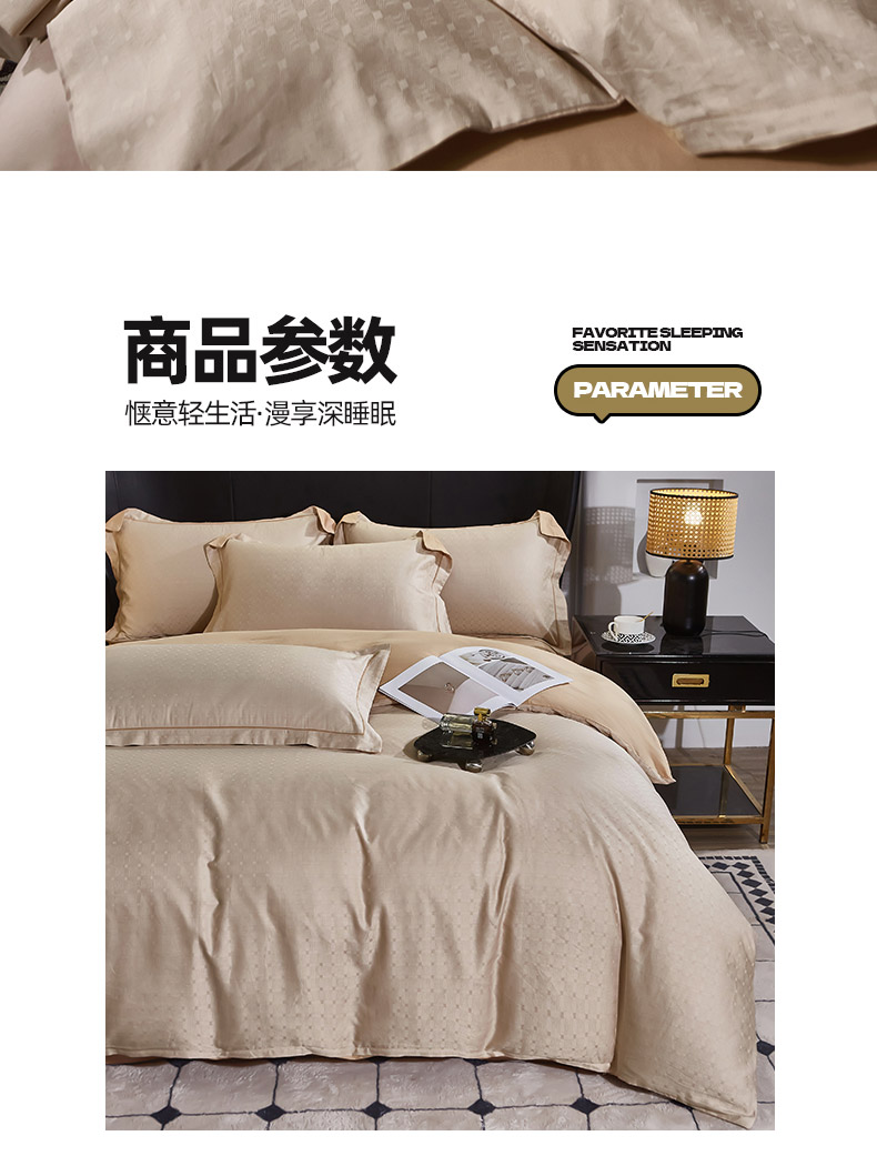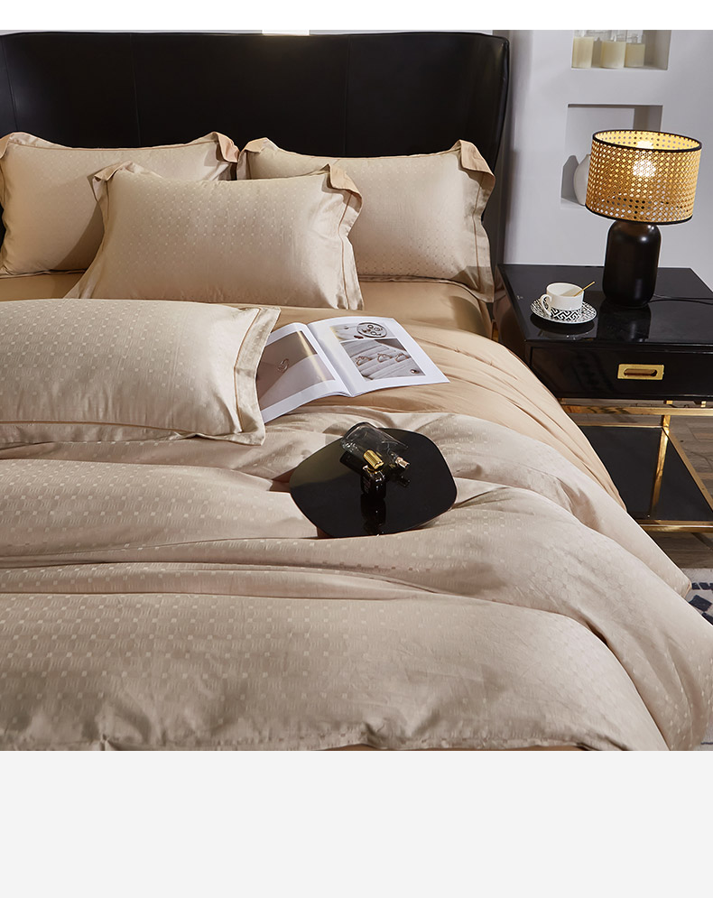 商品名称:雲归梦 2024新款全棉提花活性高支密轻奢四件套 曲线格-香槟金