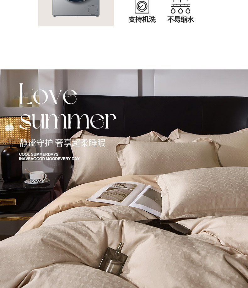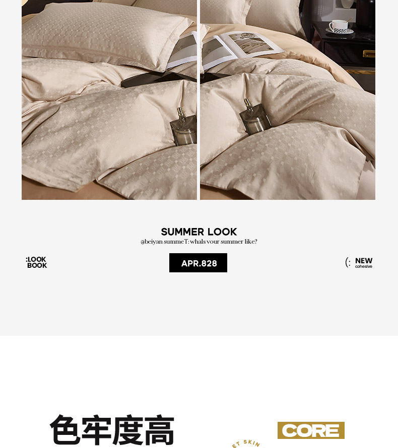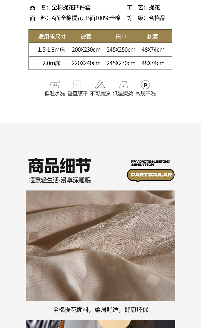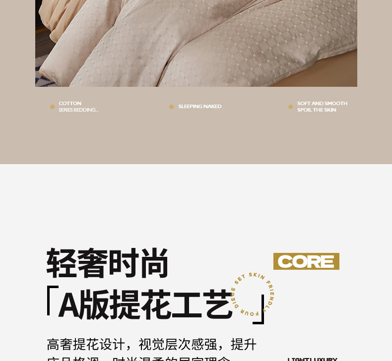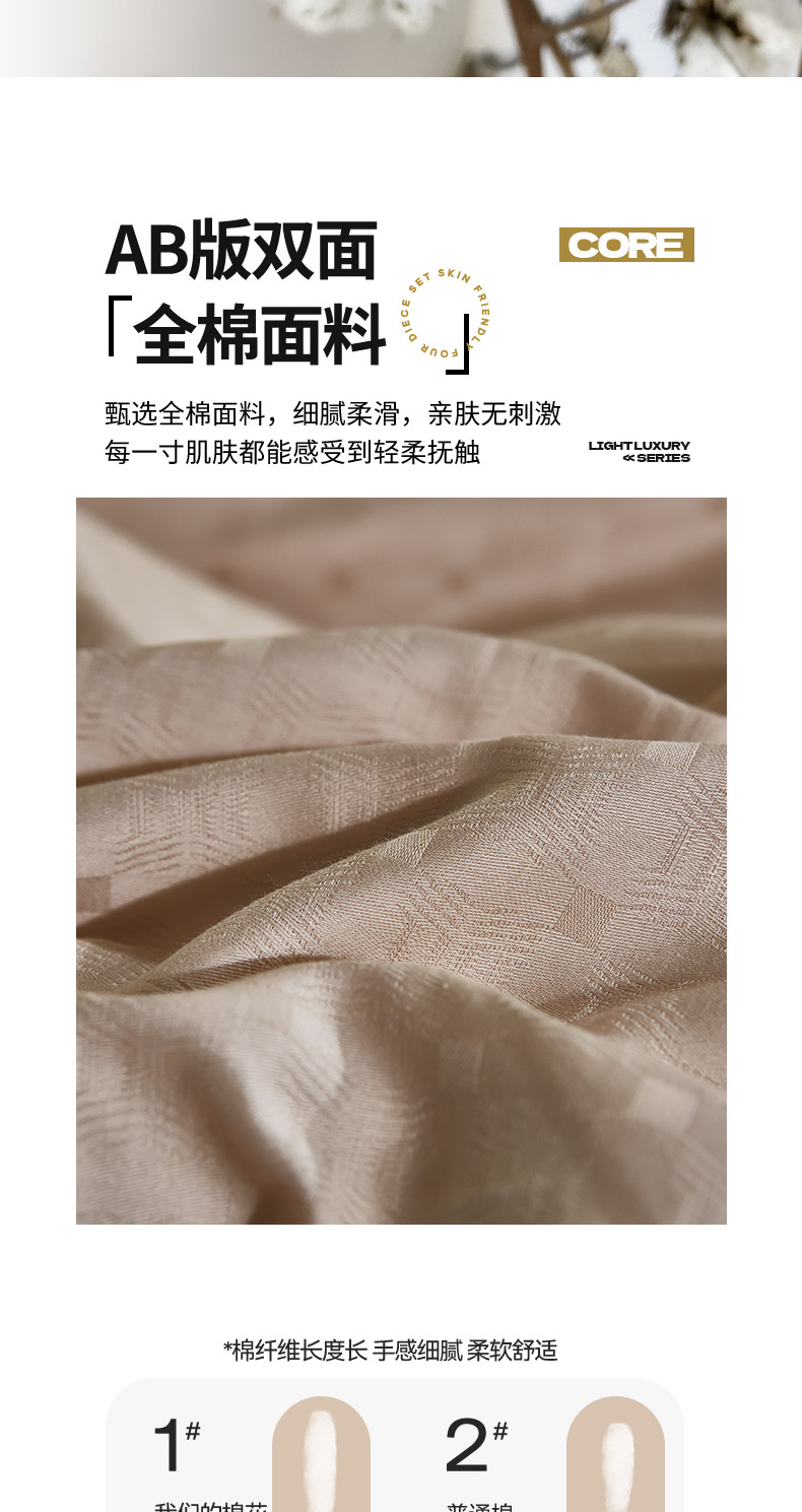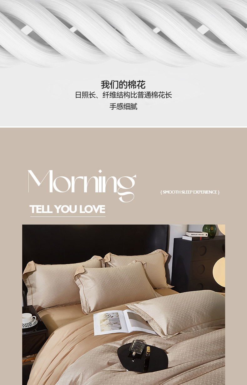 商品名称:雲归梦 2024新款全棉提花活性高支密轻奢四件套 曲线格-香槟金