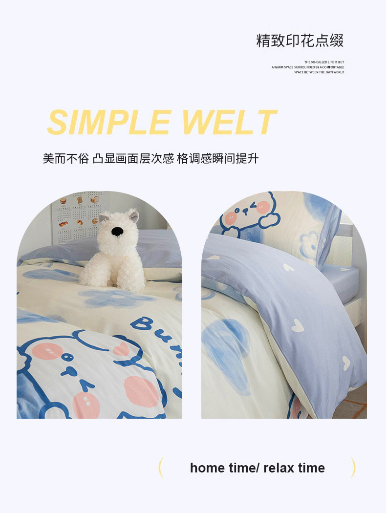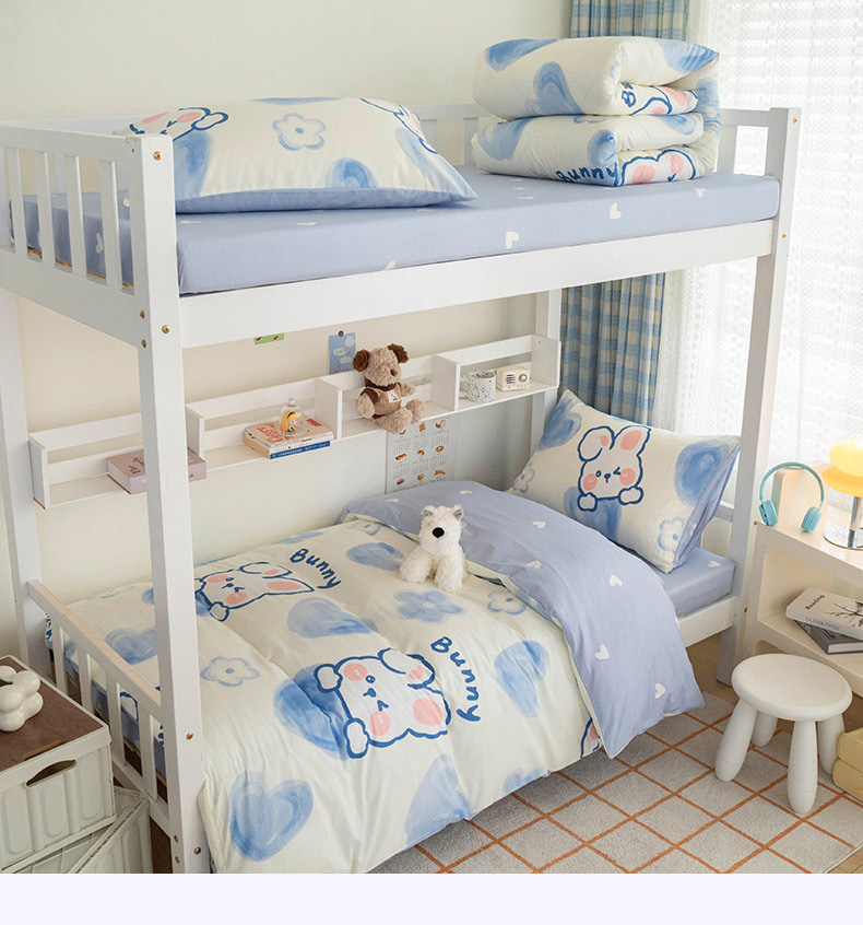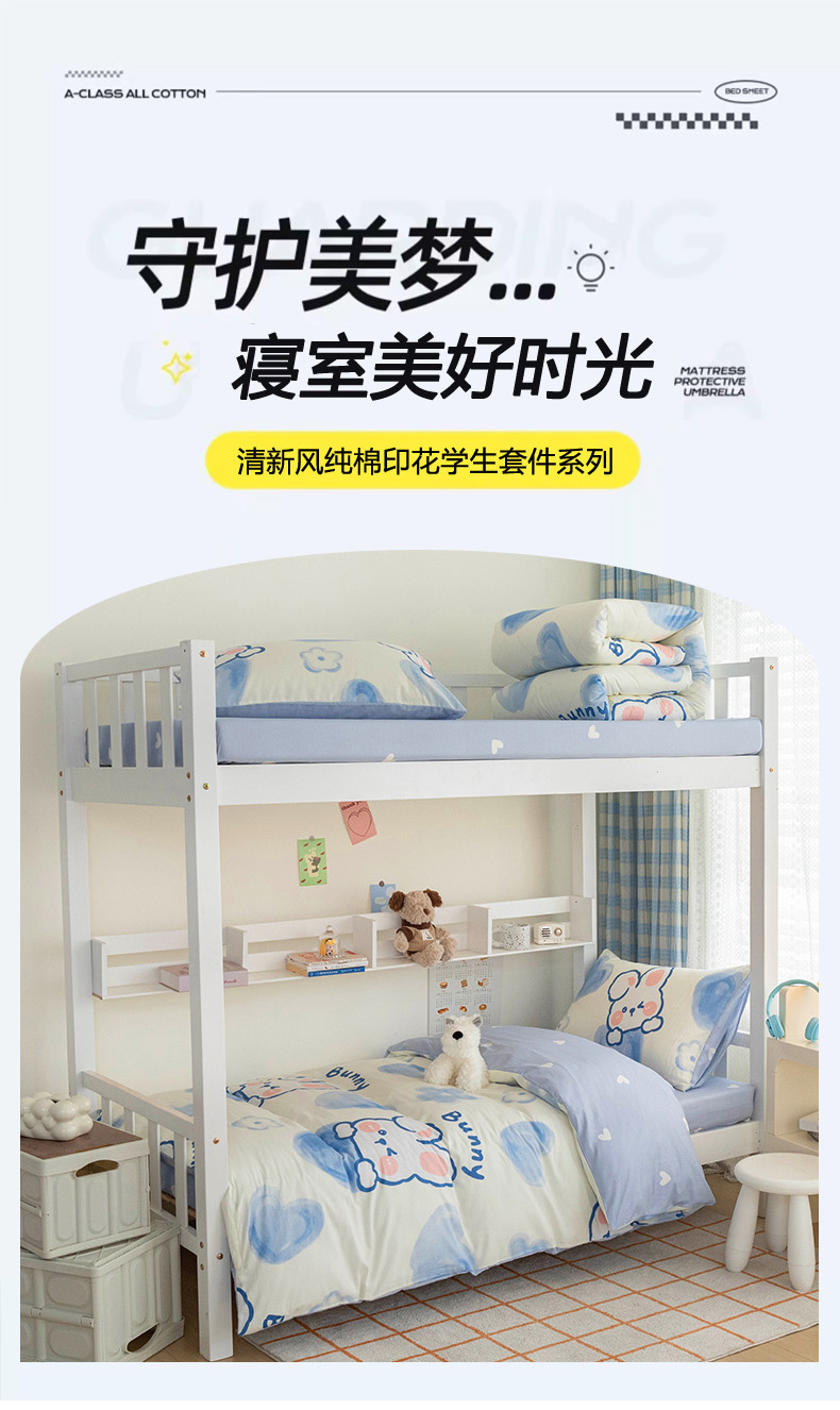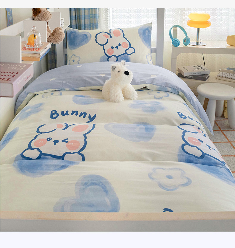 倾慕家纺 2024新款清新风纯棉印花学生套件系列 晴天小兔
