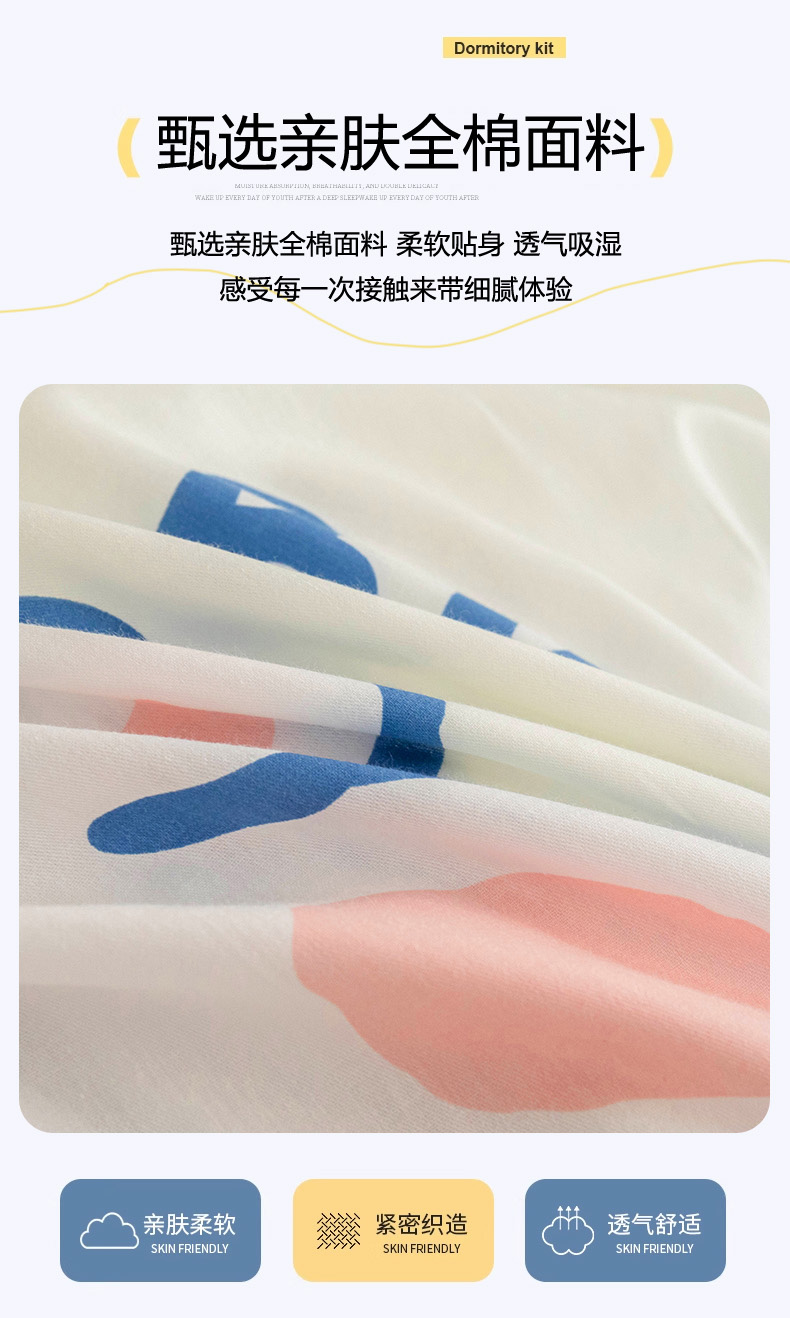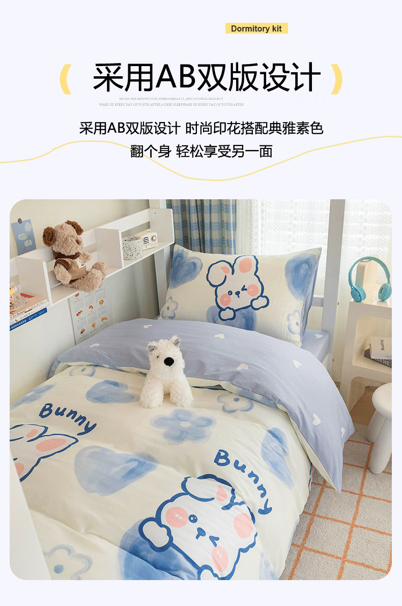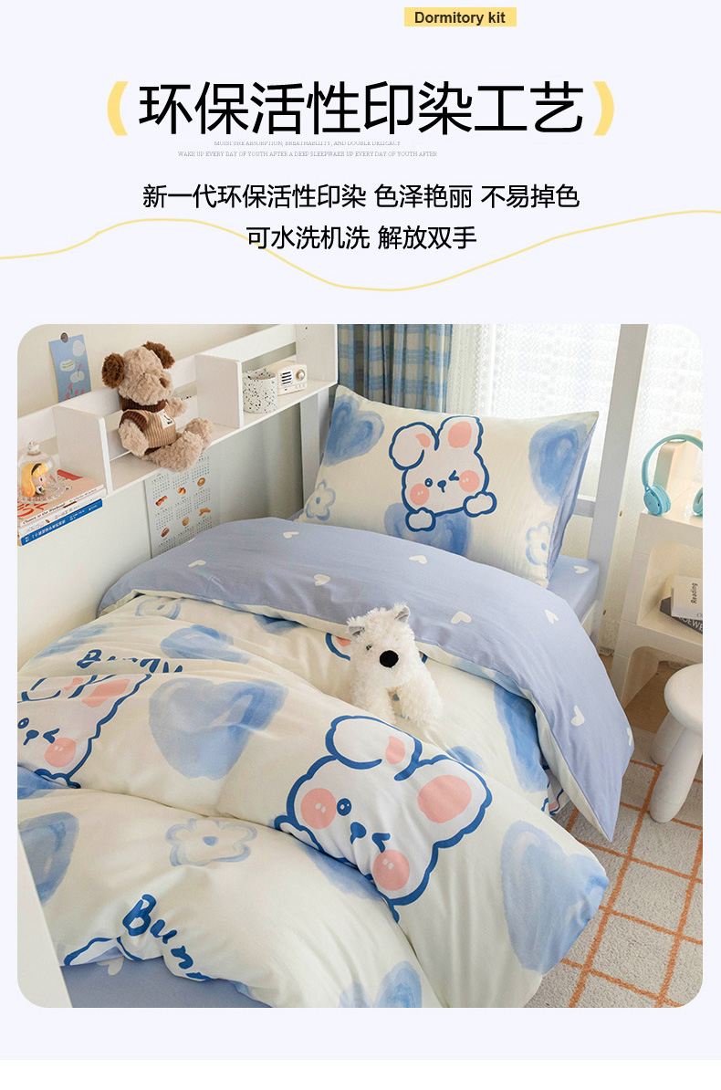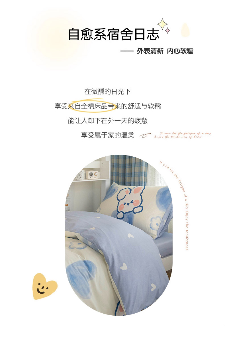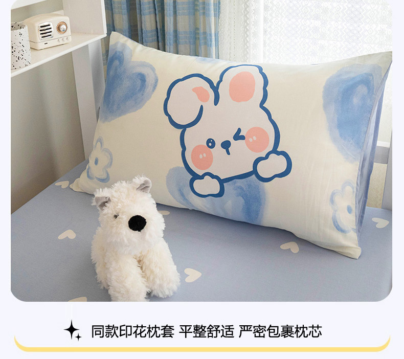 商品名称:倾慕家纺 2024新款清新风纯棉印花学生套件系列 晴天小兔