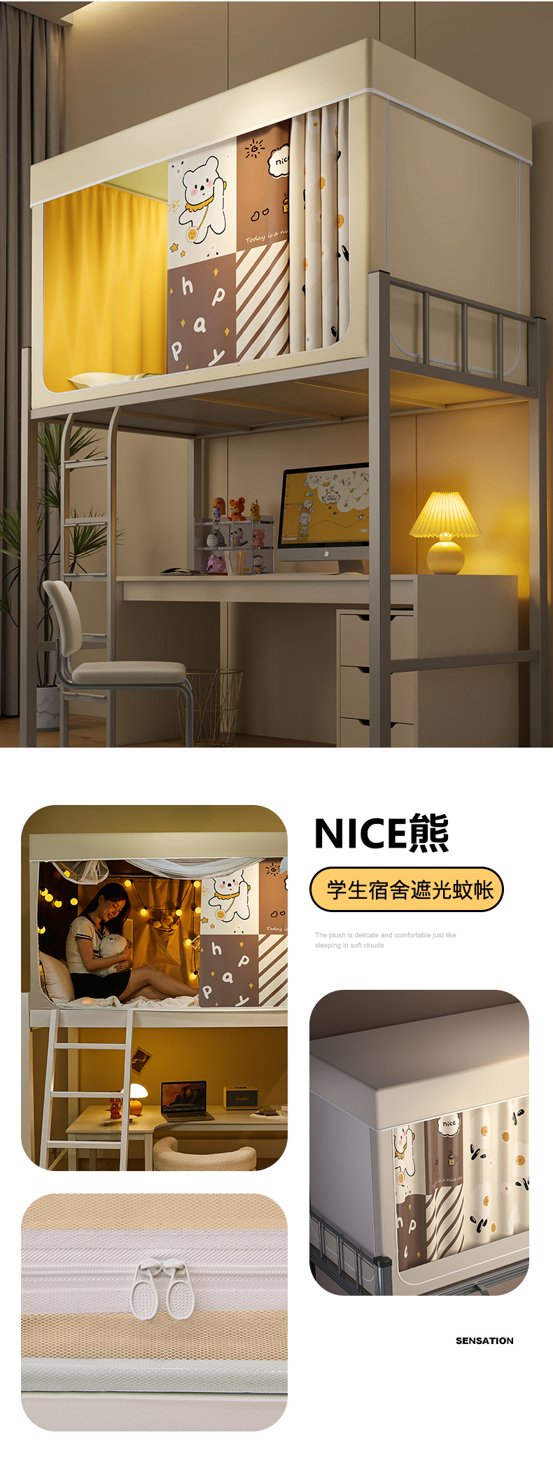 当前位置: 91家纺网 > 商品网购 > 床上用品 > 蚊帐 > 学生蚊帐 > 2024新款学生宿舍强遮光坐床蚊帐 米色-NICE熊