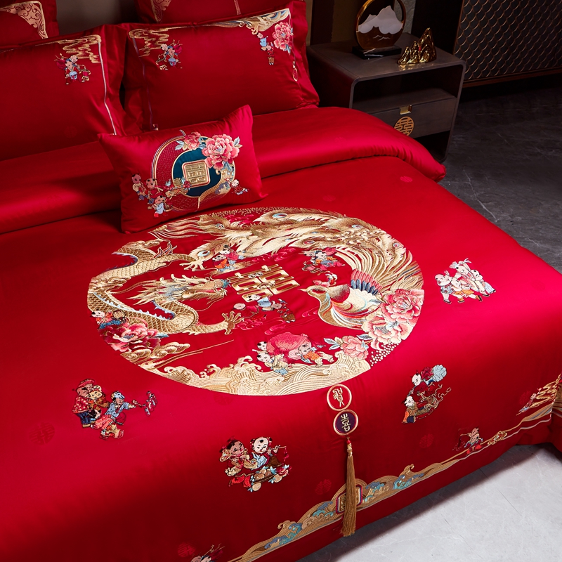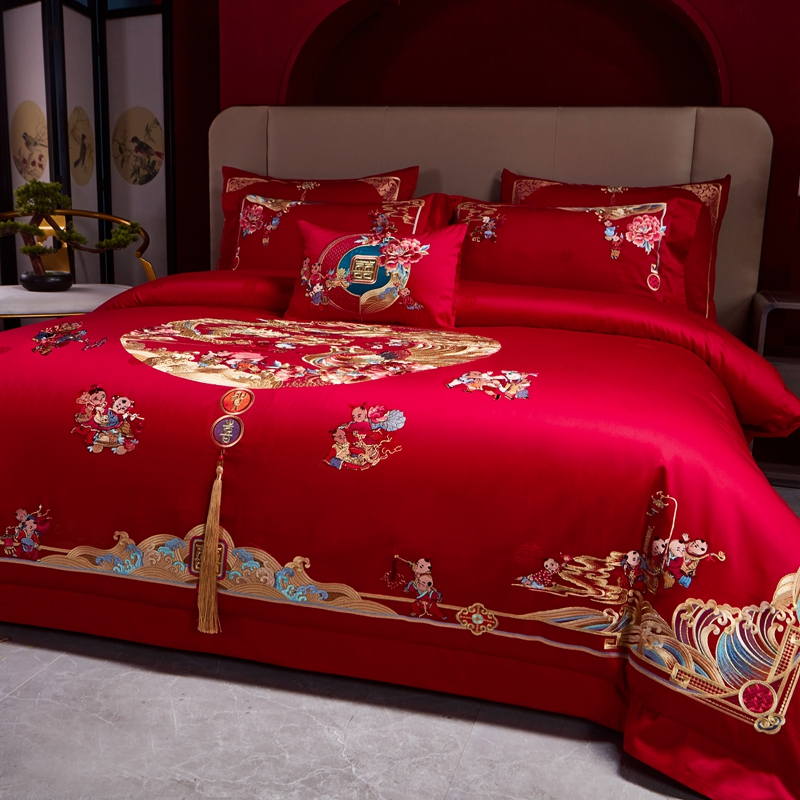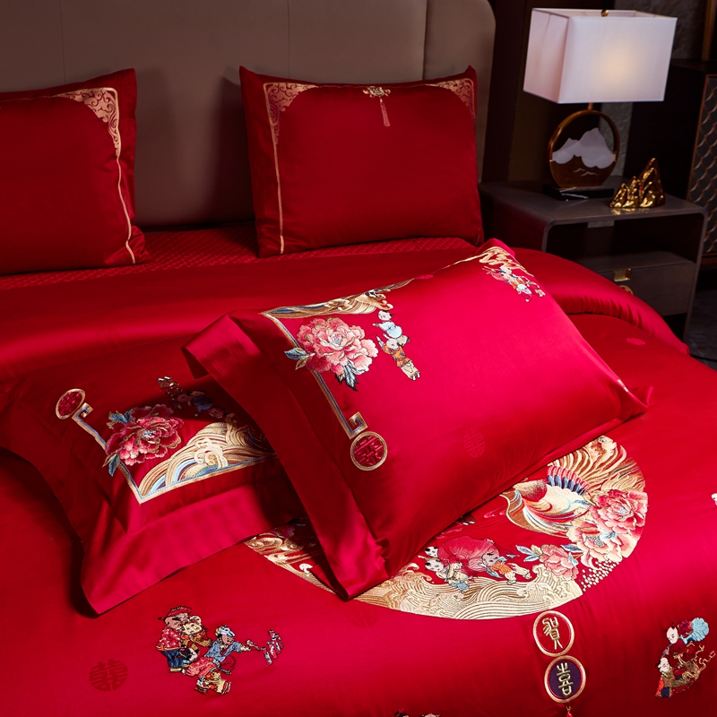 当前位置: 91家纺网 > 商品网购 > 床品套件 > 四件套 > 婚庆四件套 > 美娘阁 2025新款长绒棉贡缎提花款新中式古典韵味精美刺绣婚庆四件套多件套 锦绣前程