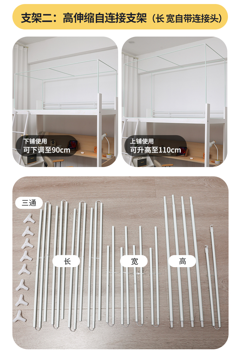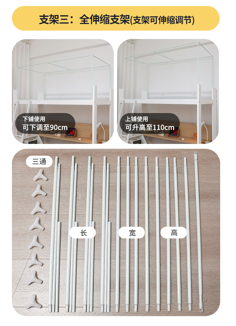 上铺90 ×190×(高90-115cm)(三开门)包含口袋帘(高伸缩免拼烤漆支架) | ¥100.00 |