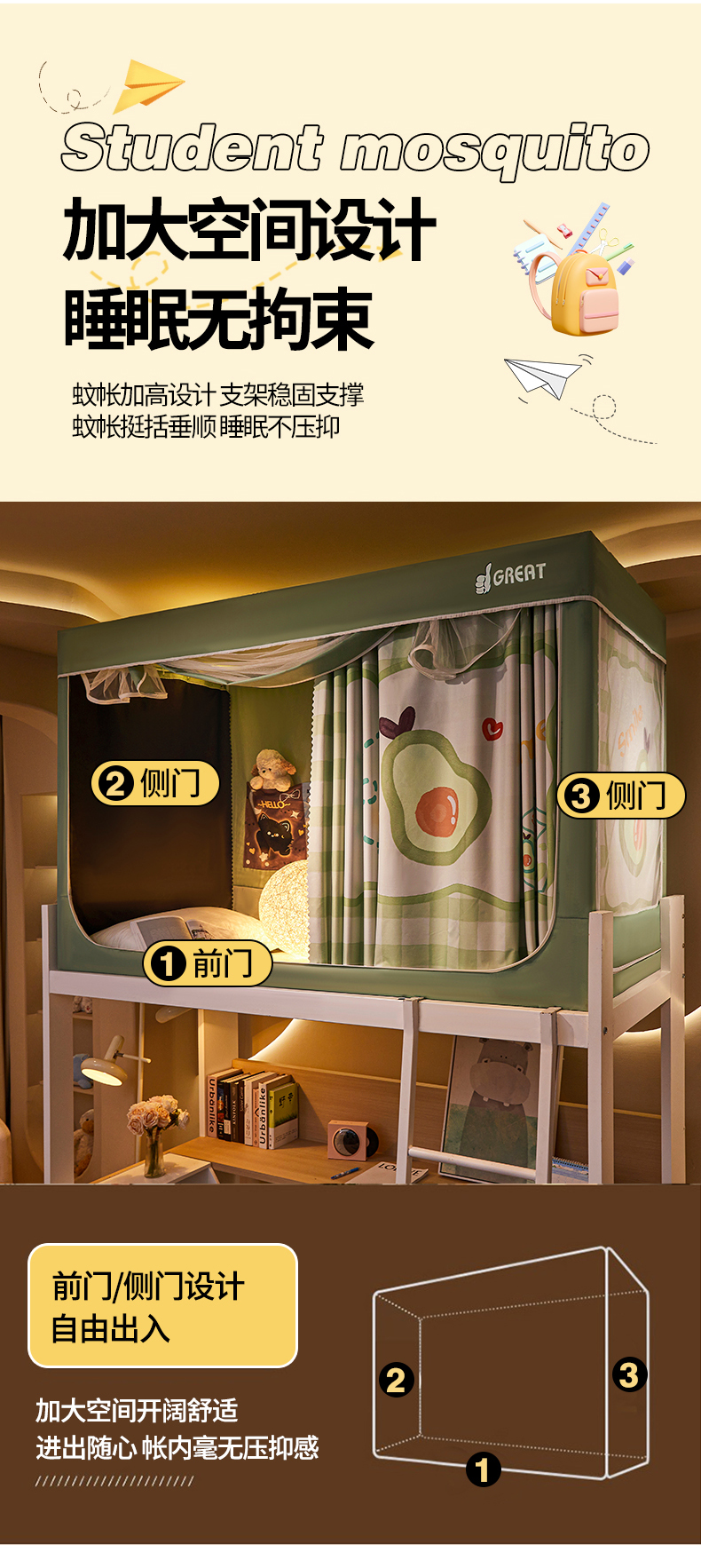 当前位置: 91家纺网 > 商品网购 > 床上用品 > 蚊帐 > 学生蚊帐 > 迪凡保罗蚊帐 2025新款2416纳米环保加厚强遮光大版数码印花学生蚊帐(自带靠墙帘) 牛油果奶