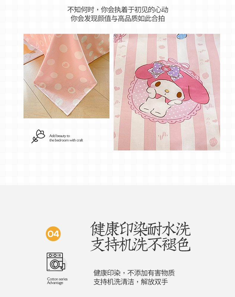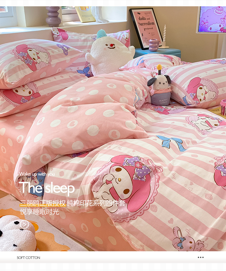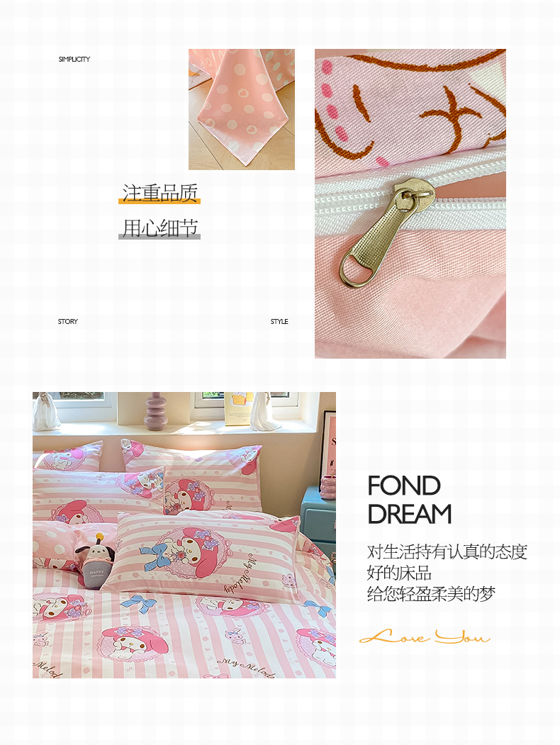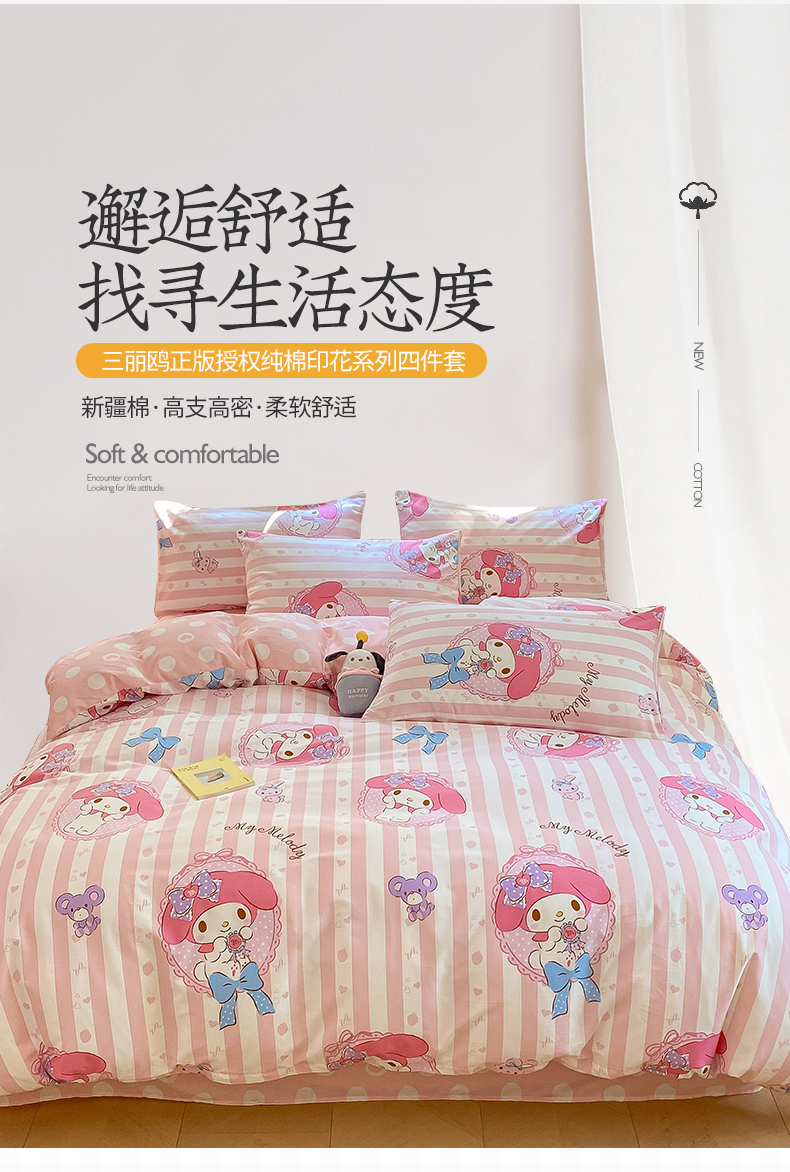 当前位置: 91家纺网 > 商品网购 > 床品套件 > 四件套 > 全棉普通四件套 > 桃子家居 2024新款三丽鸥正版授权卡通纯棉印花系列四件套 棉三丽鸥-甜甜美乐蒂