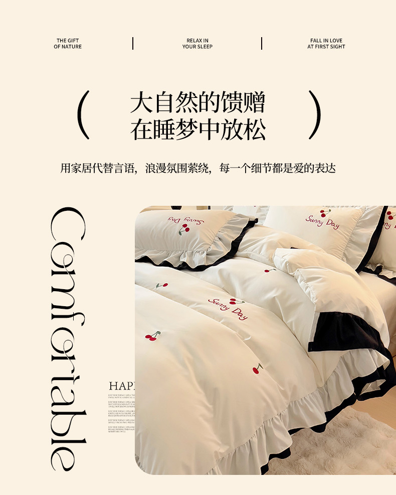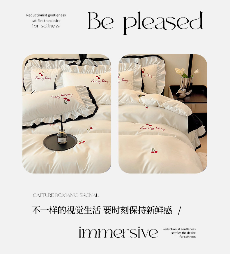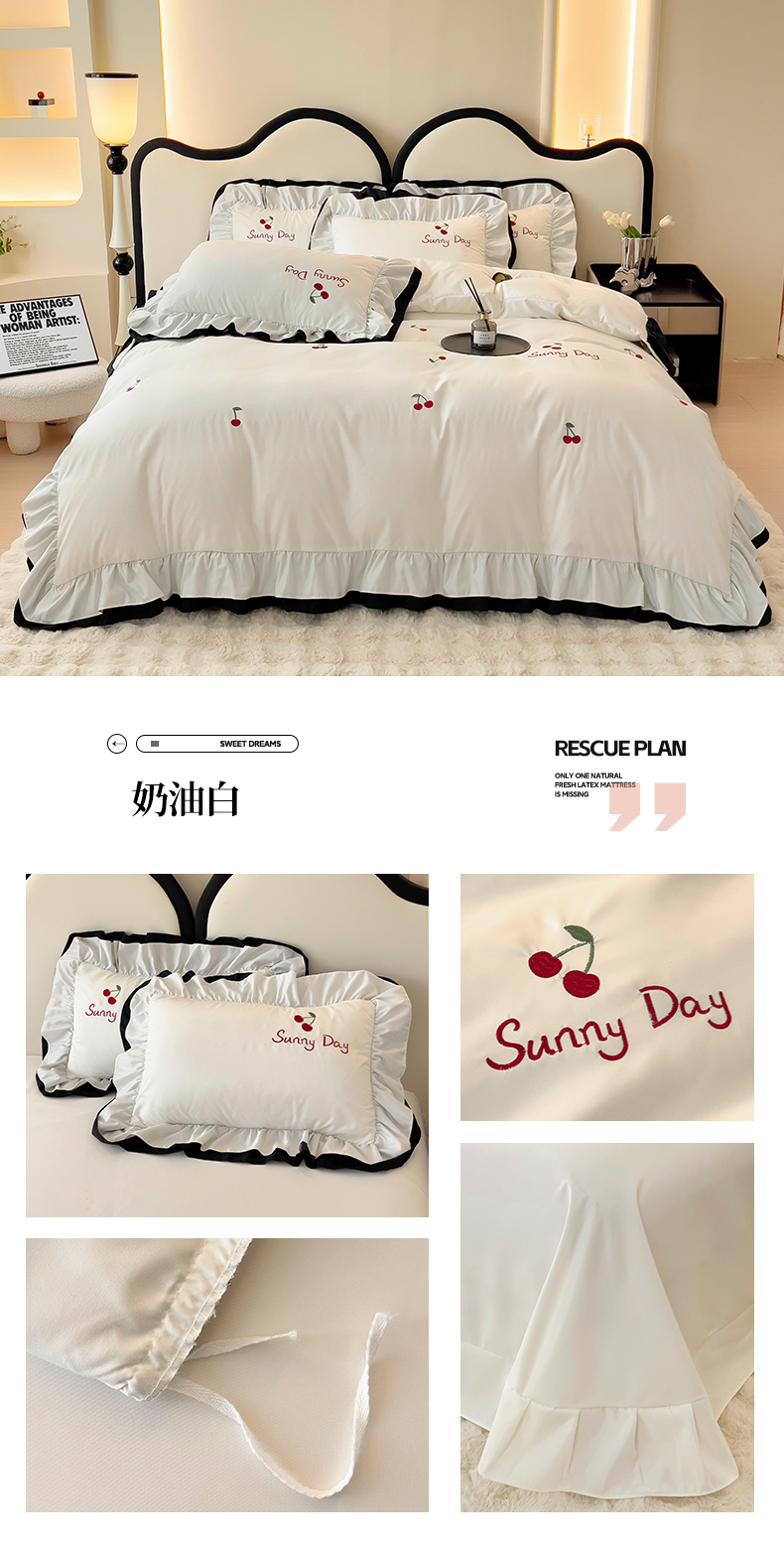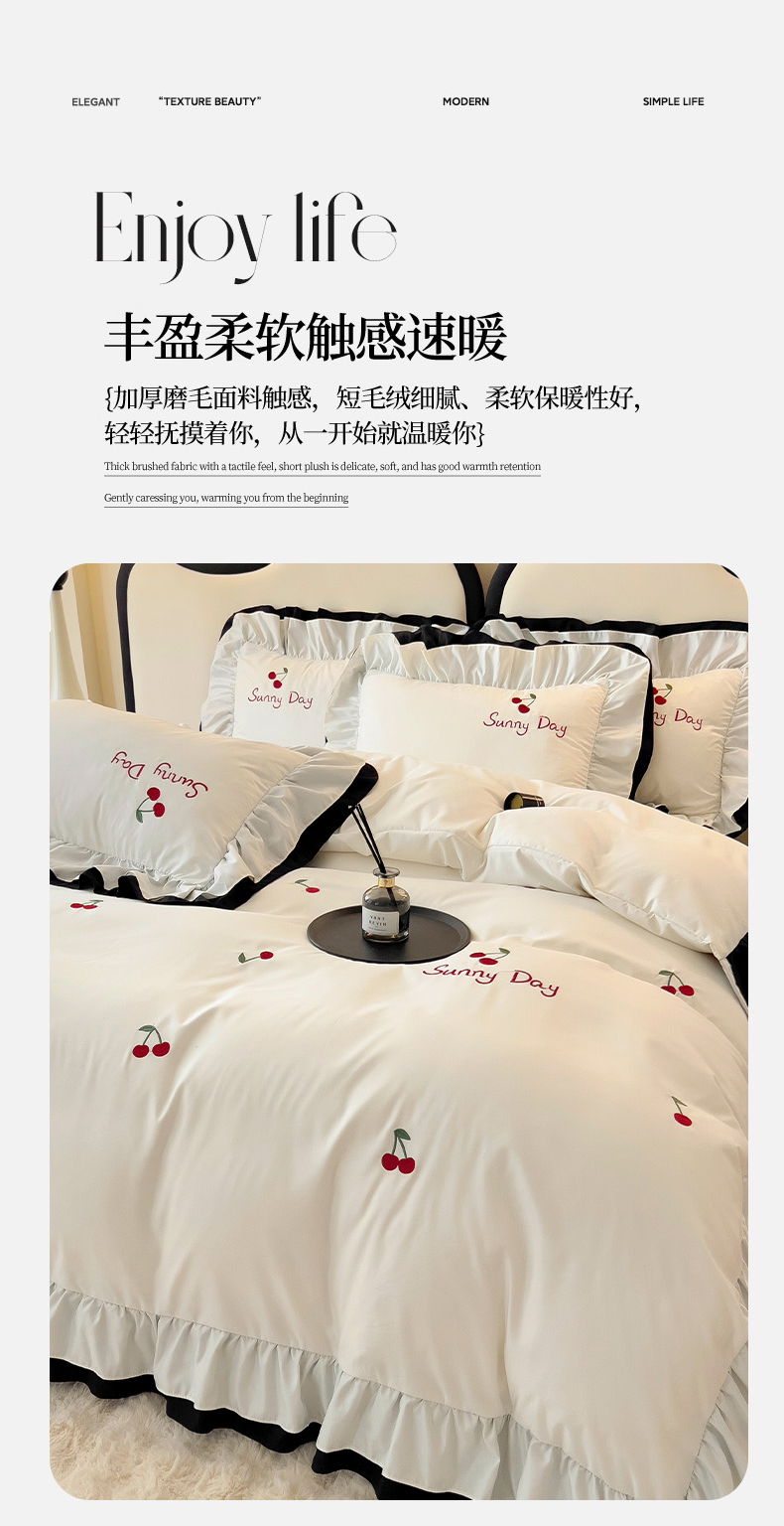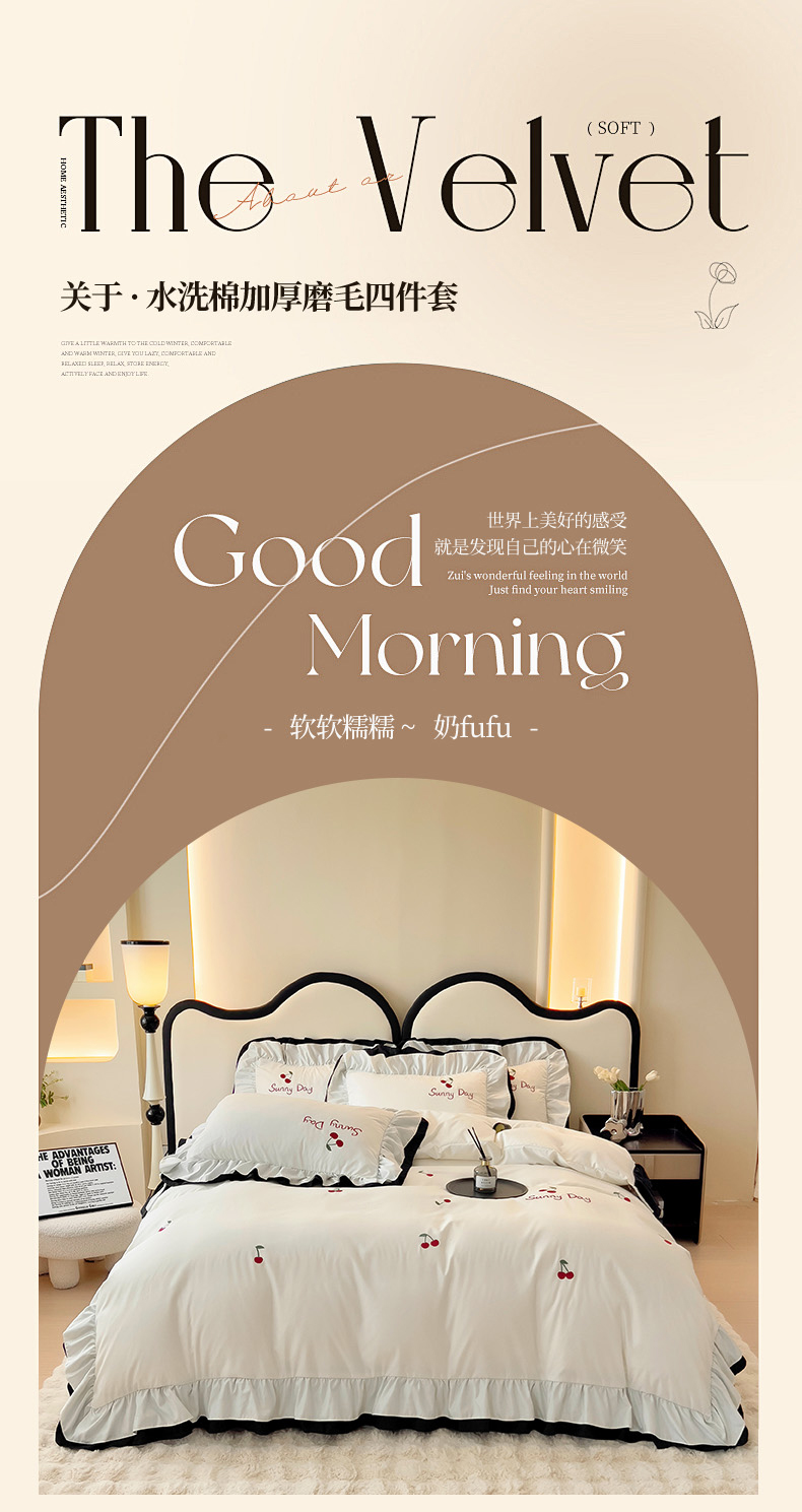 (总)找底底家纺 2025新款花边9-10斤牛奶绒床盖款四件套,花妖,梨花落,小樱桃,紫蔻