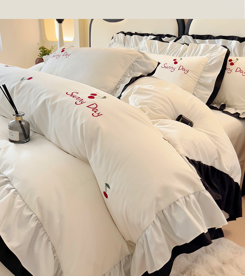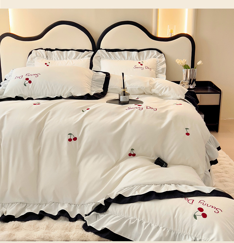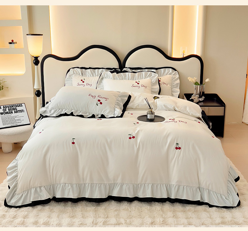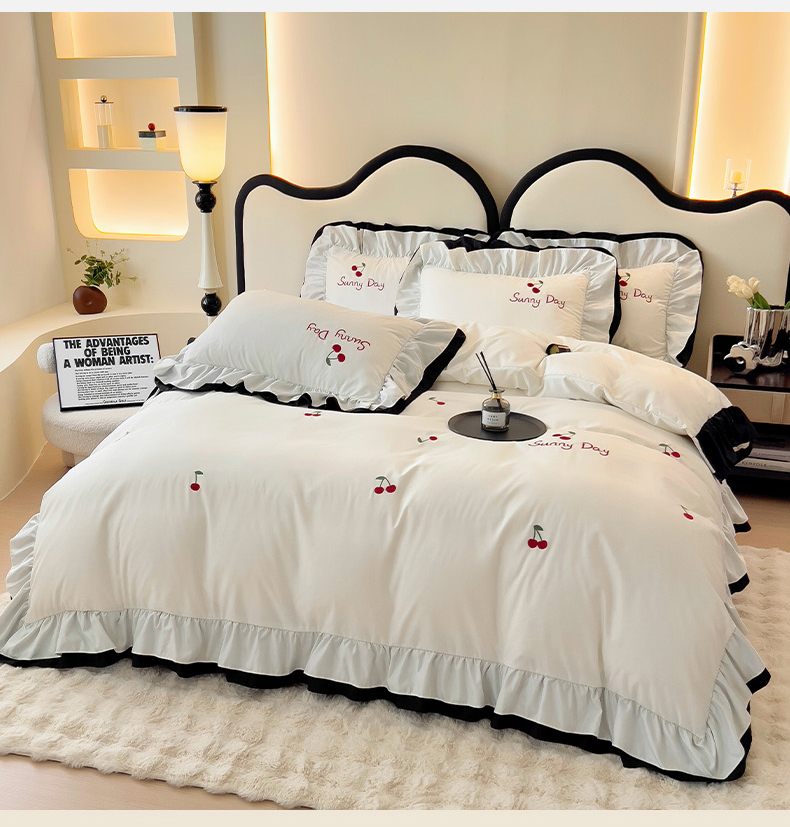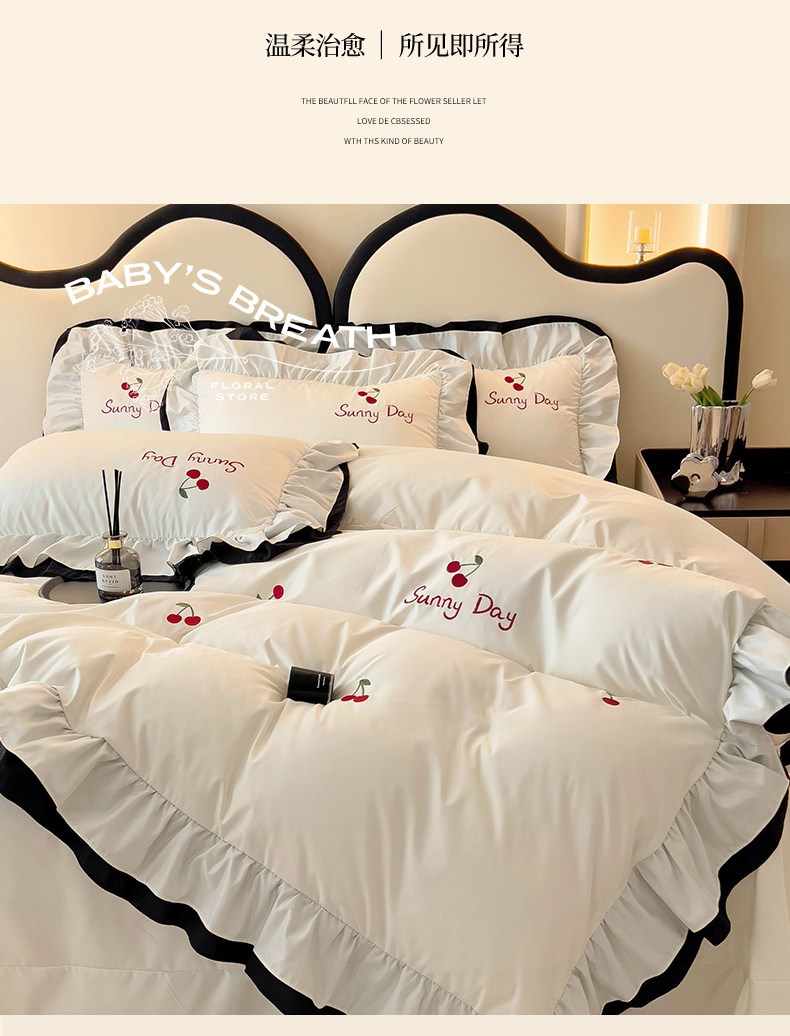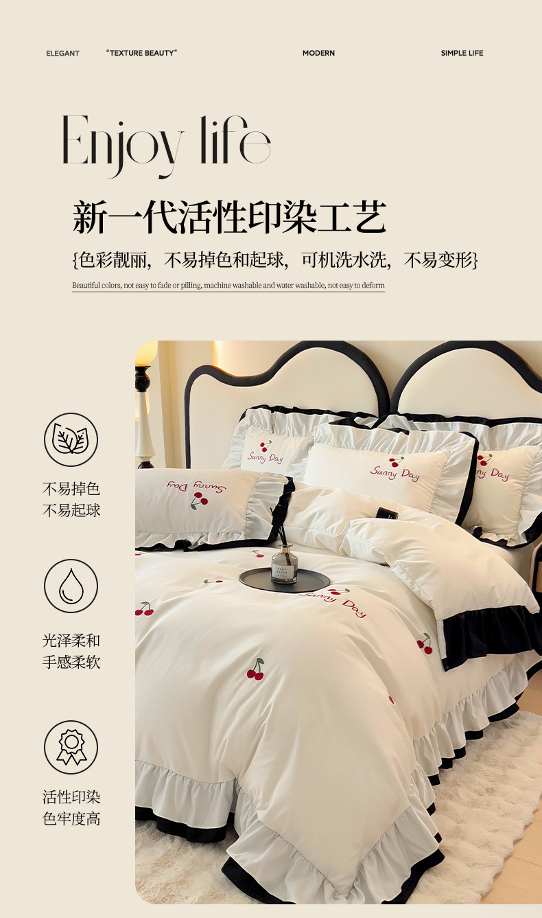 (总)找底底家纺 2025新款花边9-10斤牛奶绒床盖款四件套,花妖,梨花落,小樱桃,紫蔻