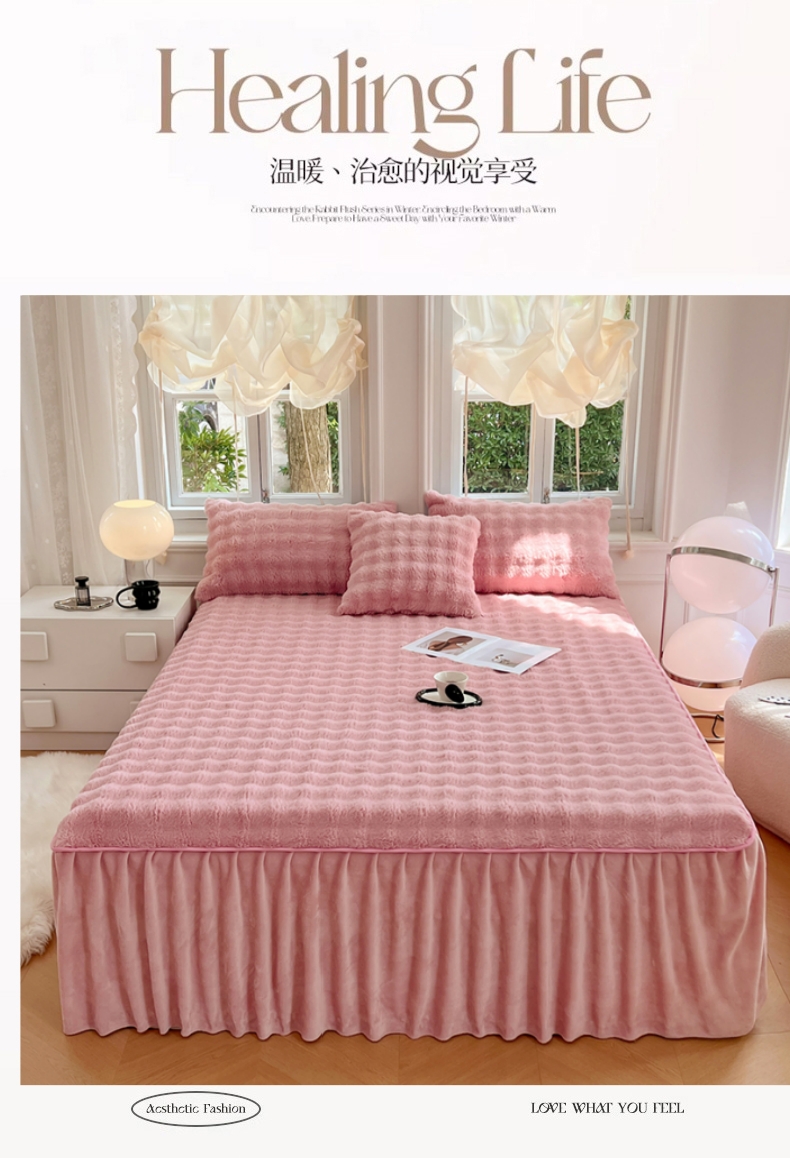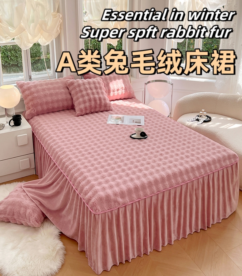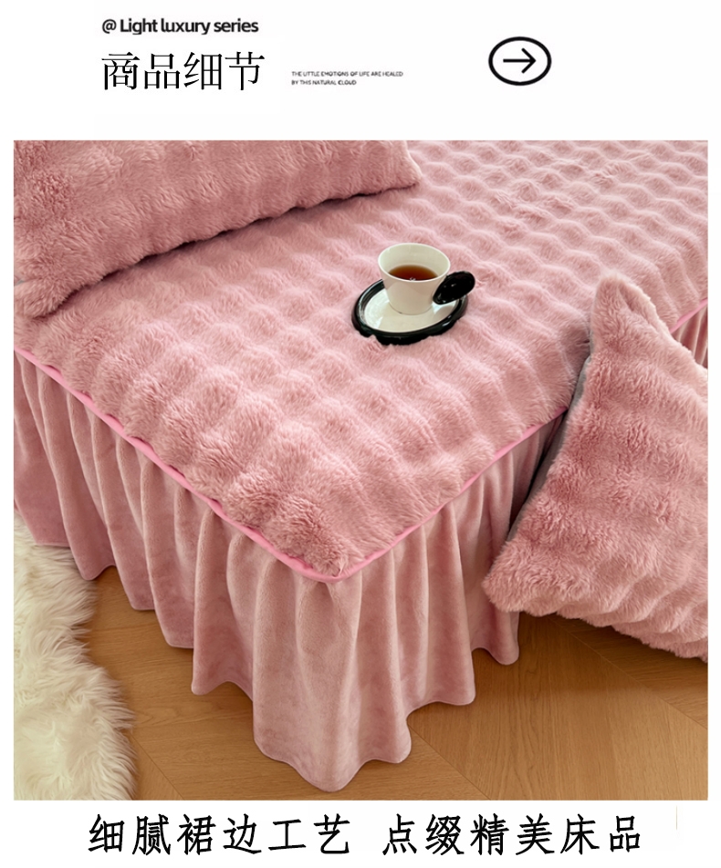 商品名称:梦舒羽 2025新款兔毛绒床裙水晶绒床垫保护罩牛奶绒床垫床单罩 云梦粉