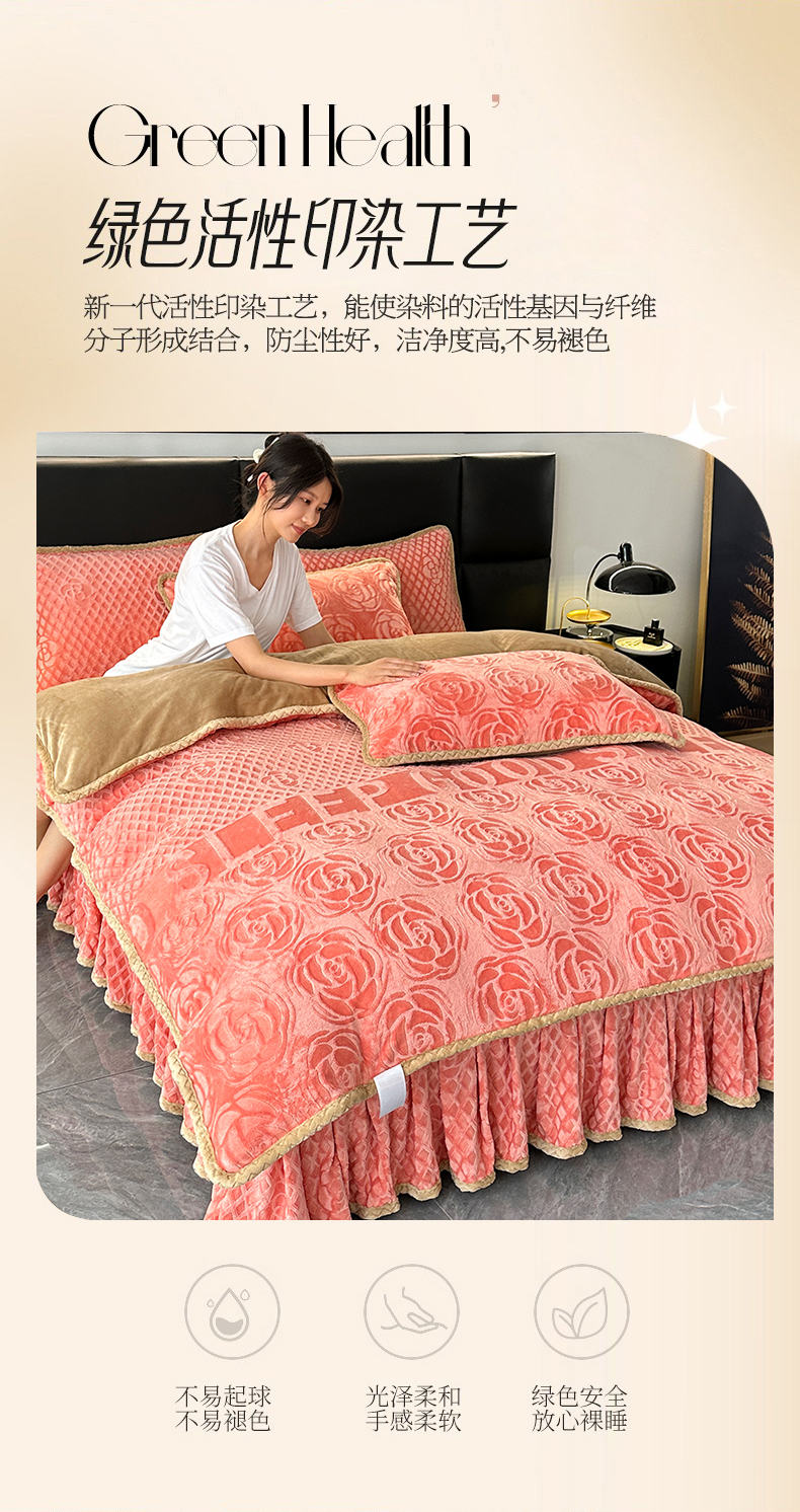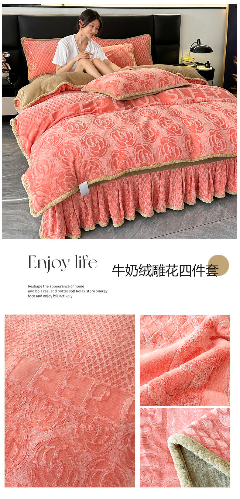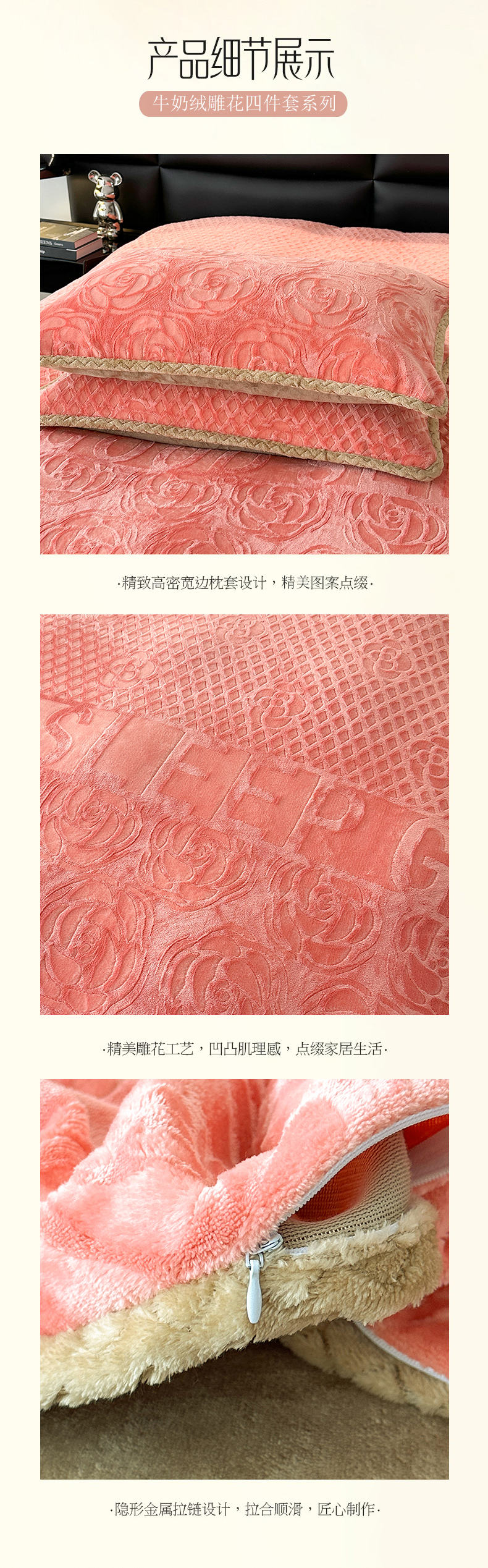 商品名称:望淮家纺 2025新款8D雕花牛奶绒四件套 挚爱-浪漫粉