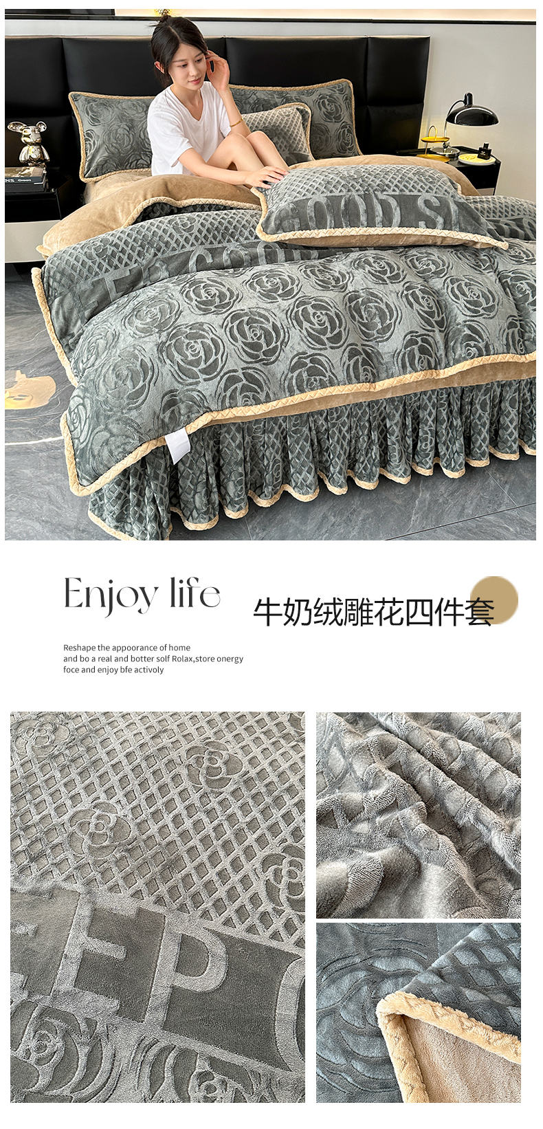 (总)望淮家纺 2025新款8D雕花牛奶绒四件套,欧式情怀-经典灰,欧式情怀-翡翠绿,欧式情怀-卡其,欧式情怀-浪漫粉,欧式情怀-苹果绿,欧式情怀-烟灰,欧式情怀-珍珠白,挚爱-翡翠绿,挚爱-经典灰,挚爱-卡其,挚爱-浪漫粉,挚爱-苹果绿,挚爱-烟灰,挚爱-珍珠白