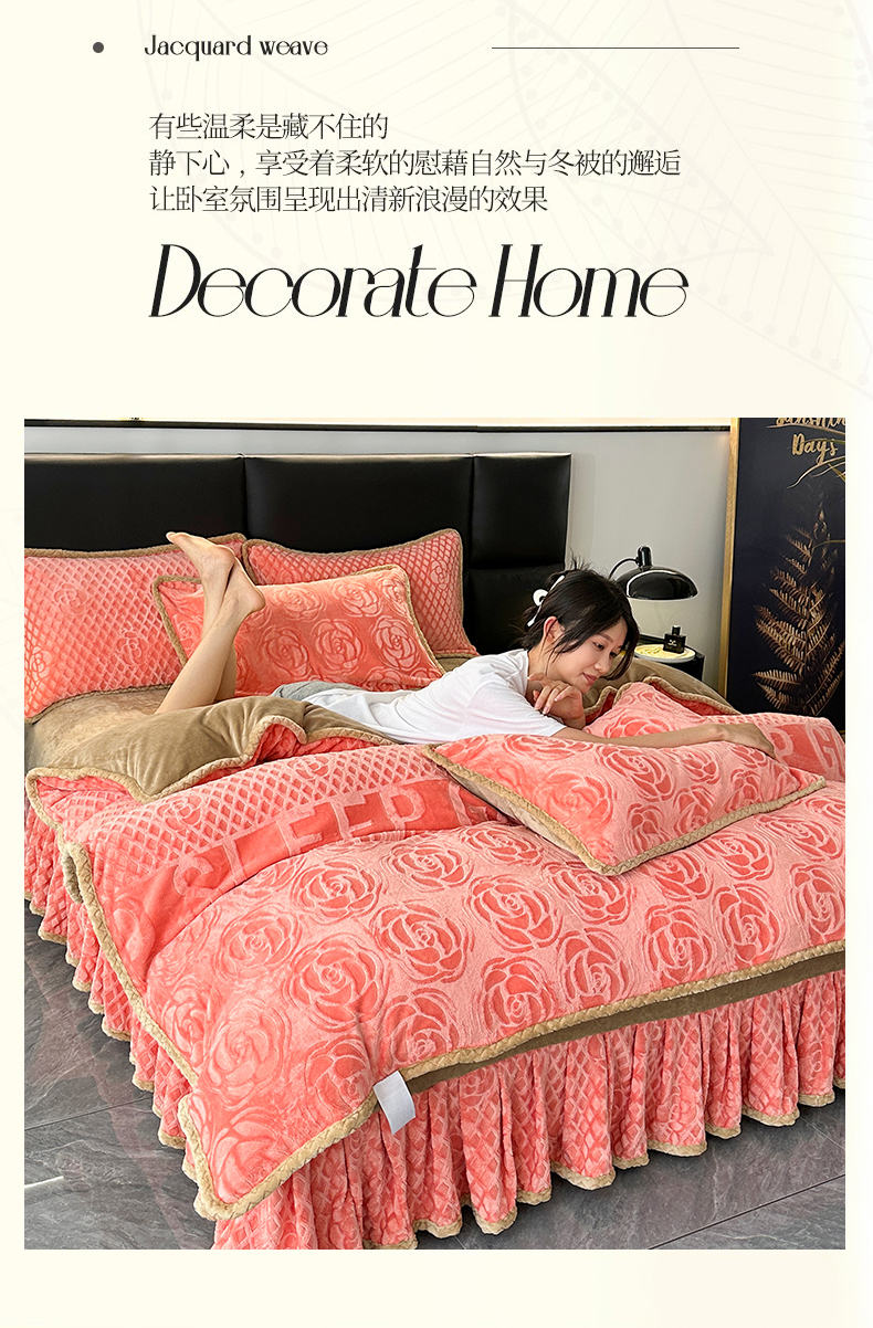 望淮家纺 2025新款8D雕花牛奶绒四件套 挚爱-浪漫粉