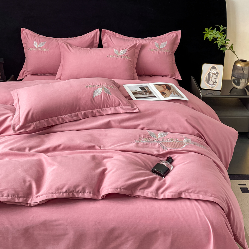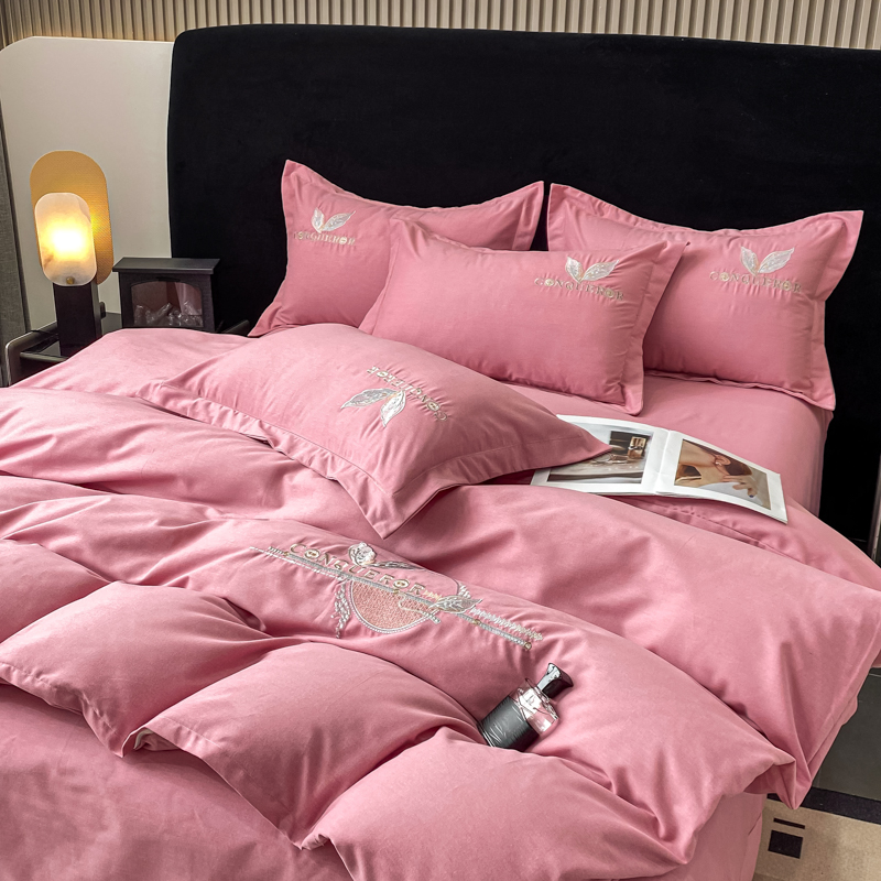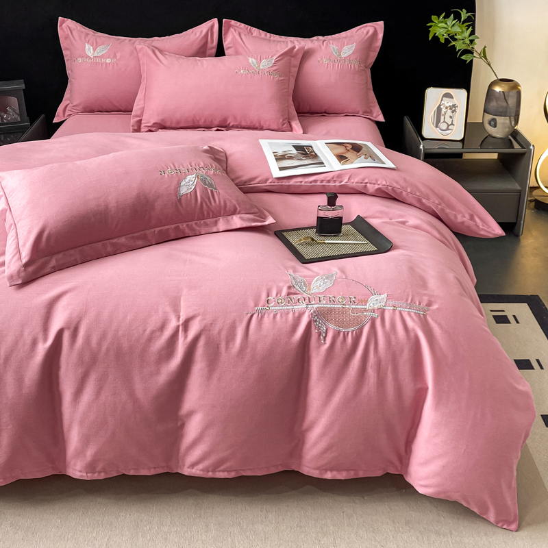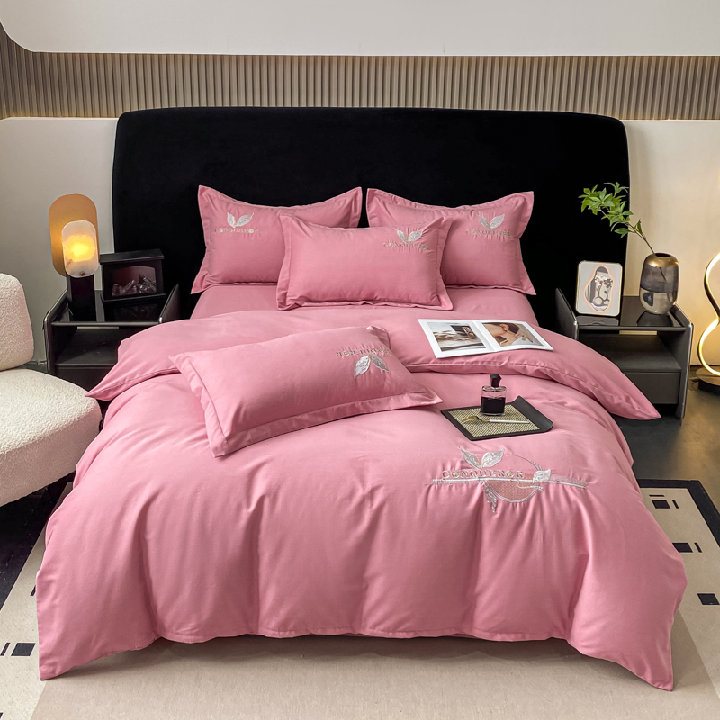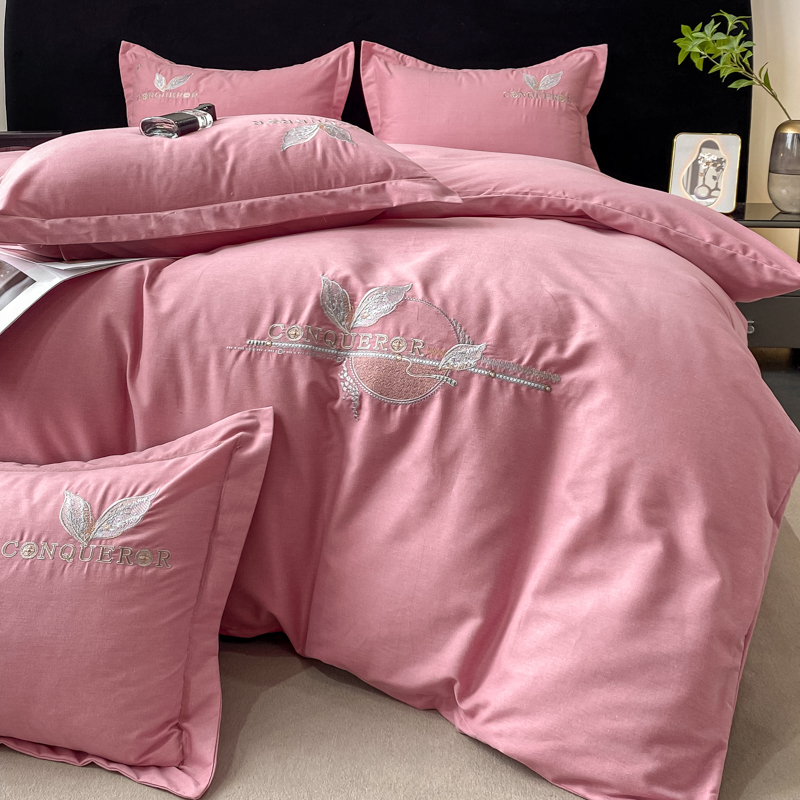 昊翔家纺 2025新款全棉磨毛绣花四件套叶之秋-藕荷玉