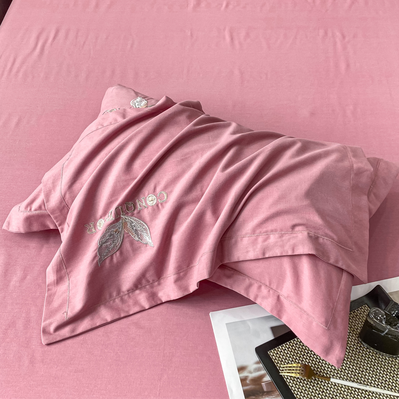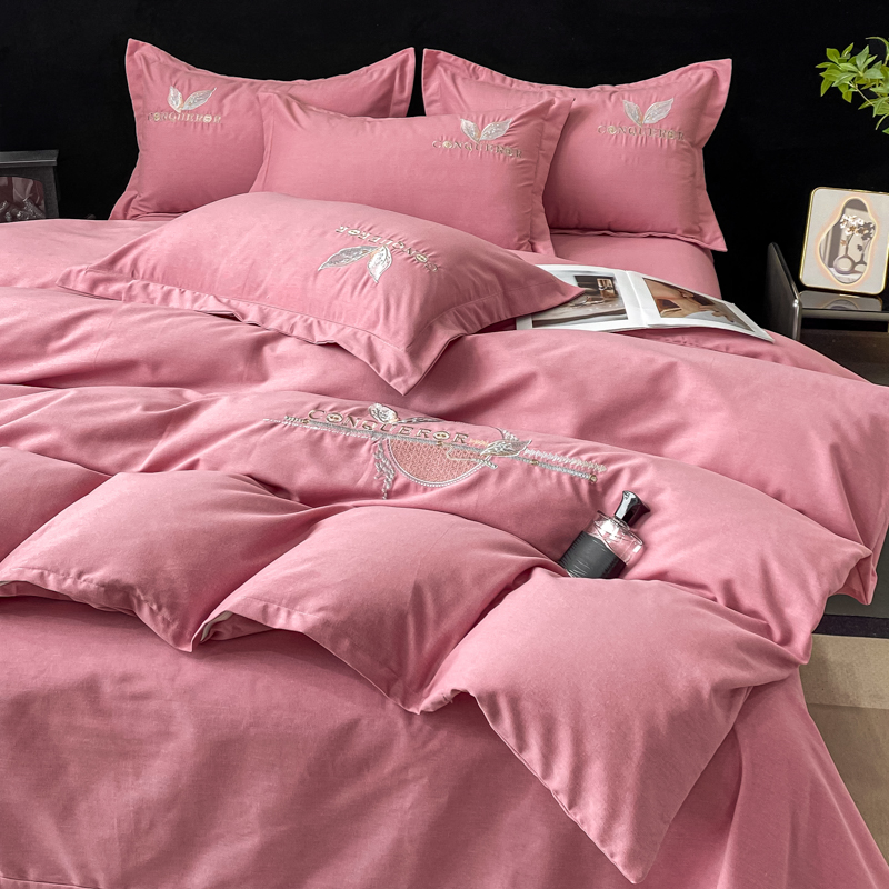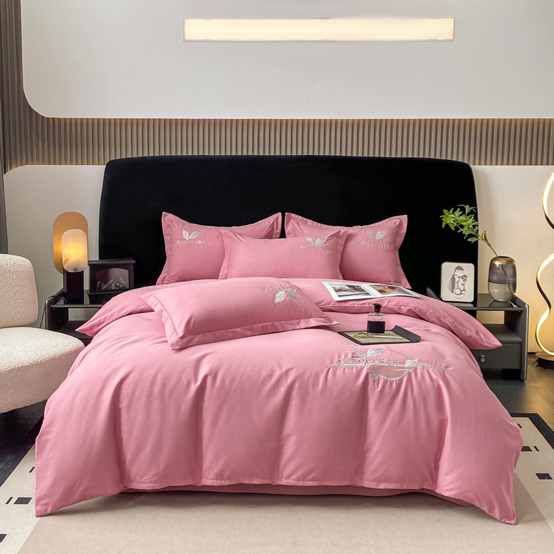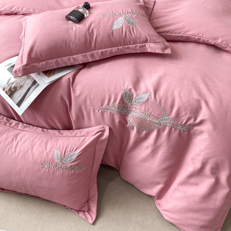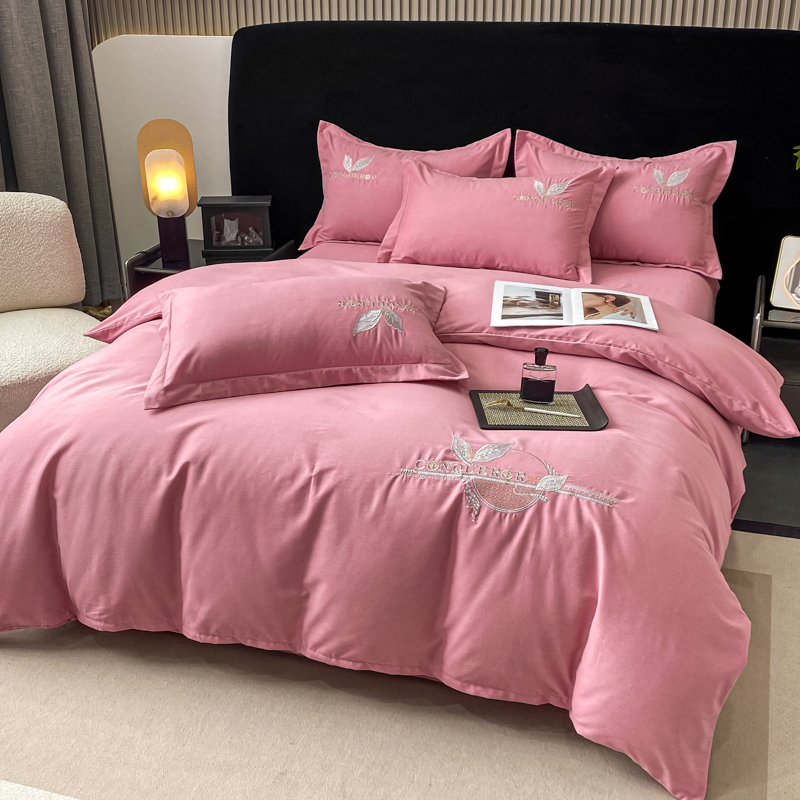 昊翔家纺 2025新款全棉磨毛绣花四件套叶之秋-藕荷玉