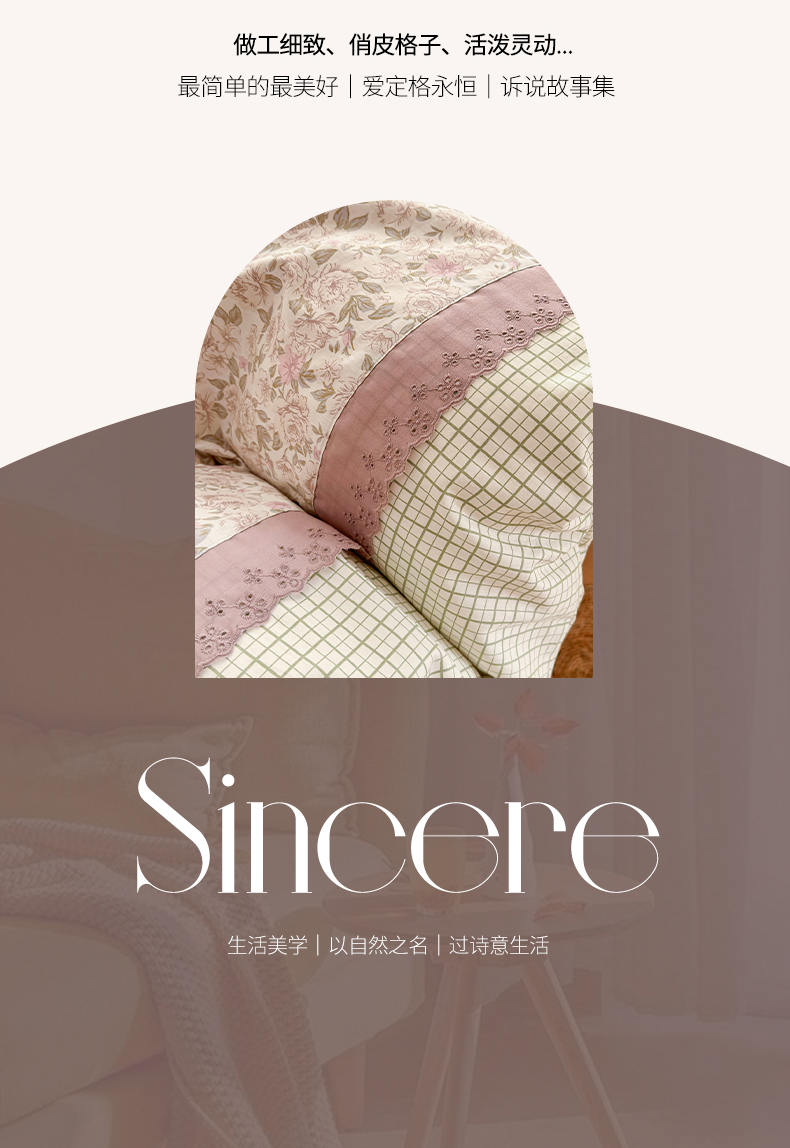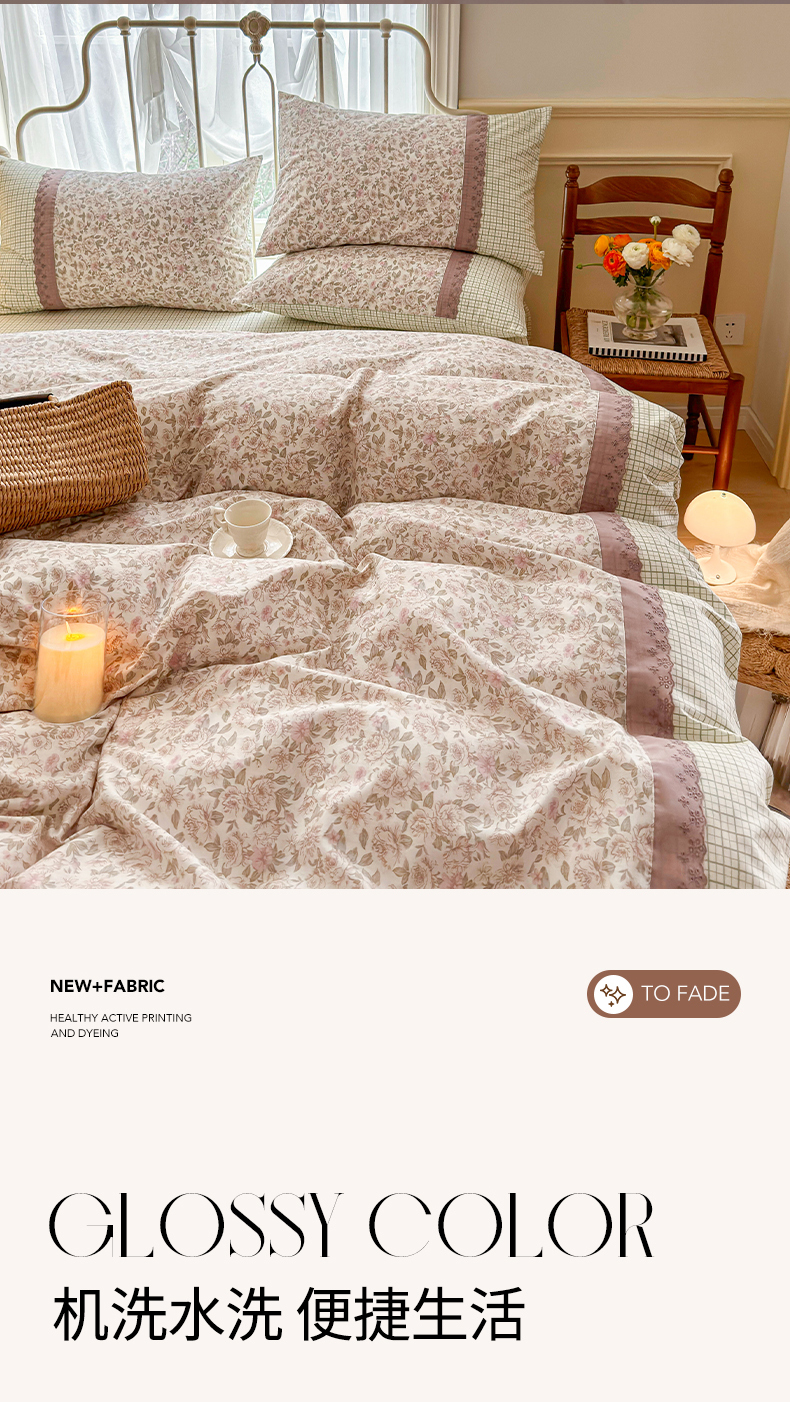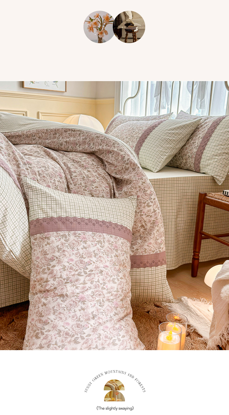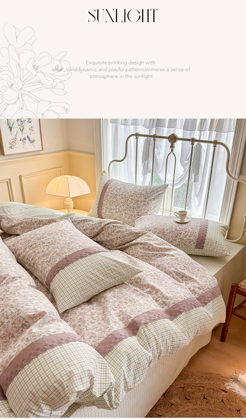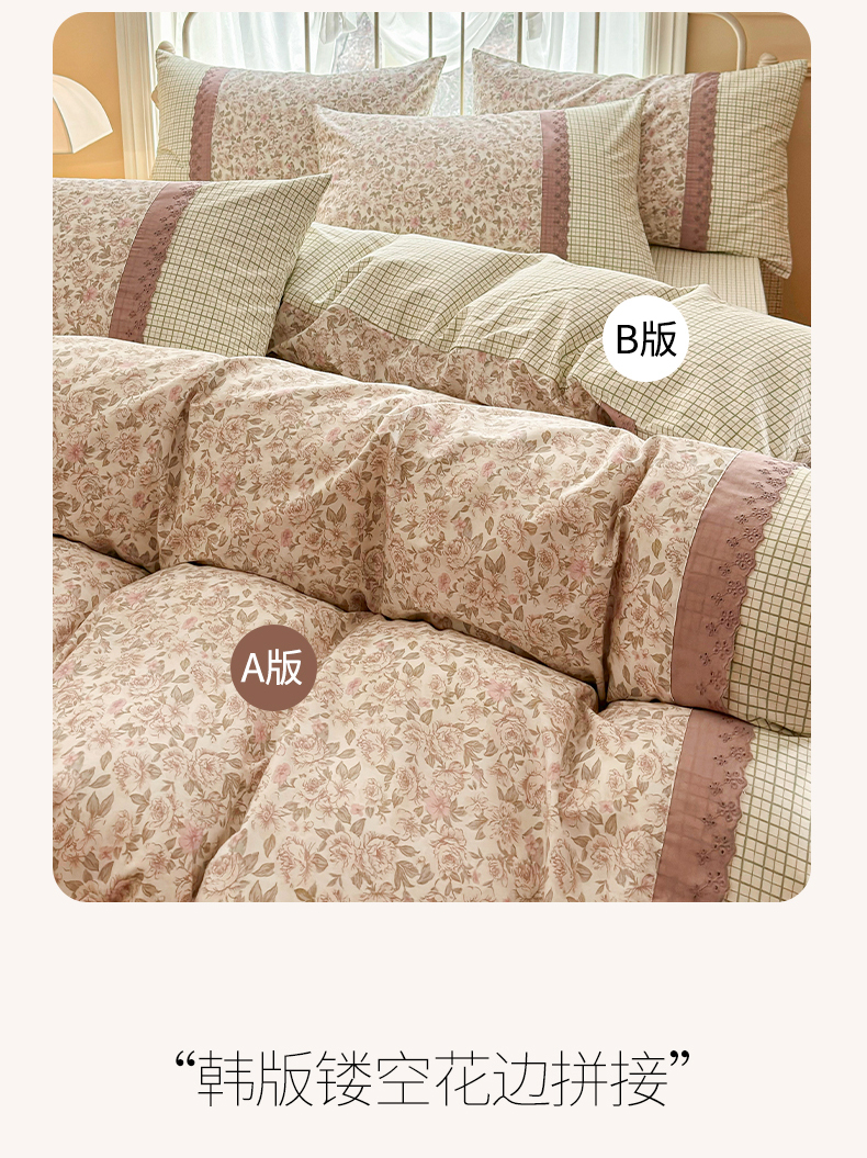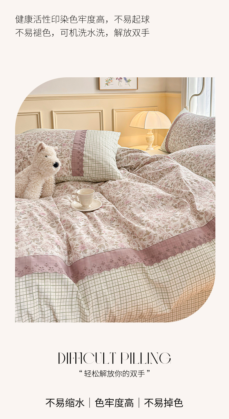 (总)安莱生活 2026年新品全棉纯棉小碎花刺绣花边款四件套-小碎花系列,花漾粉,花梦紫,凯特花园,漫语花,泡芙花园