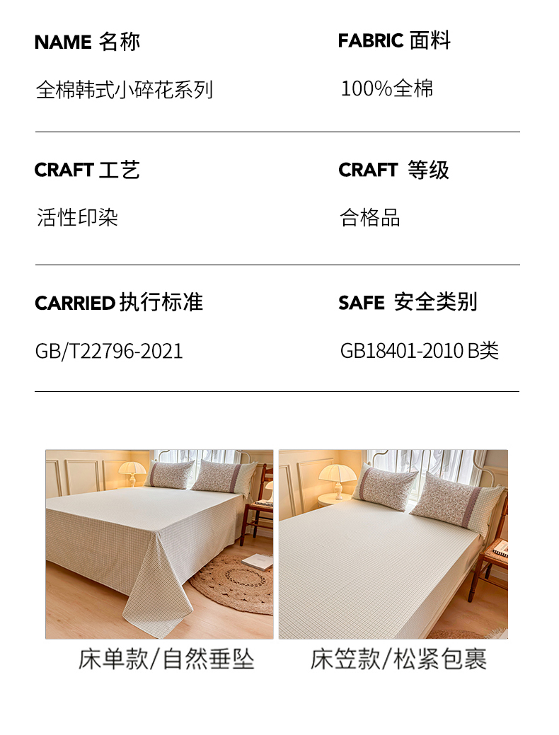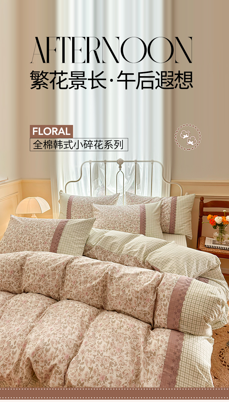 商品名称:安莱生活 2024新款全棉韩式小碎花系列四件套 遐想