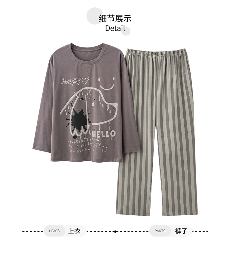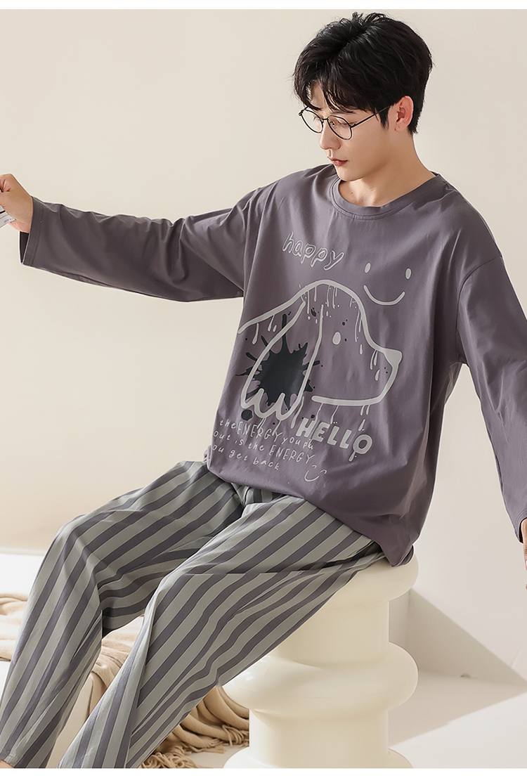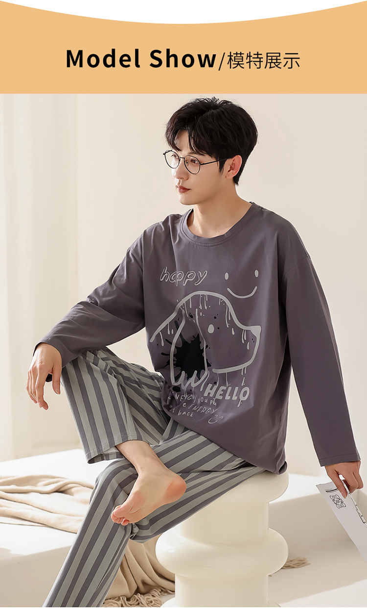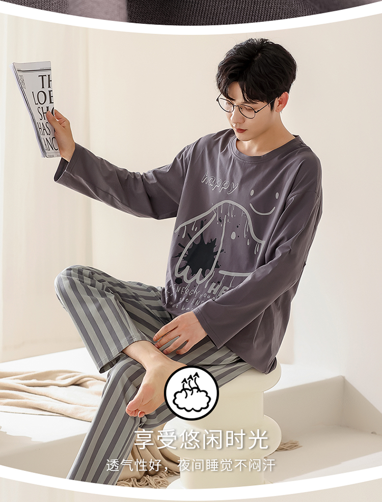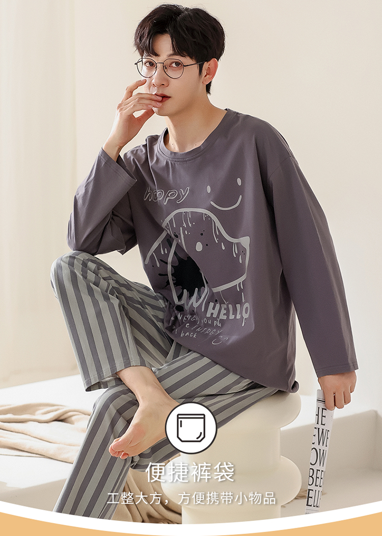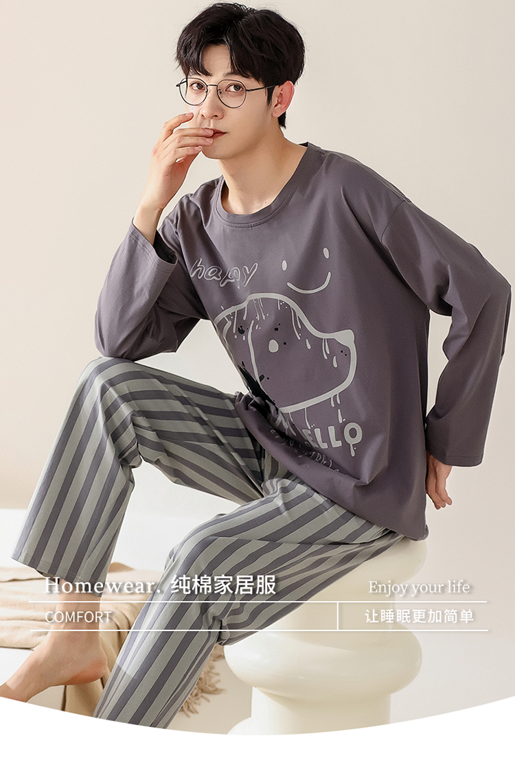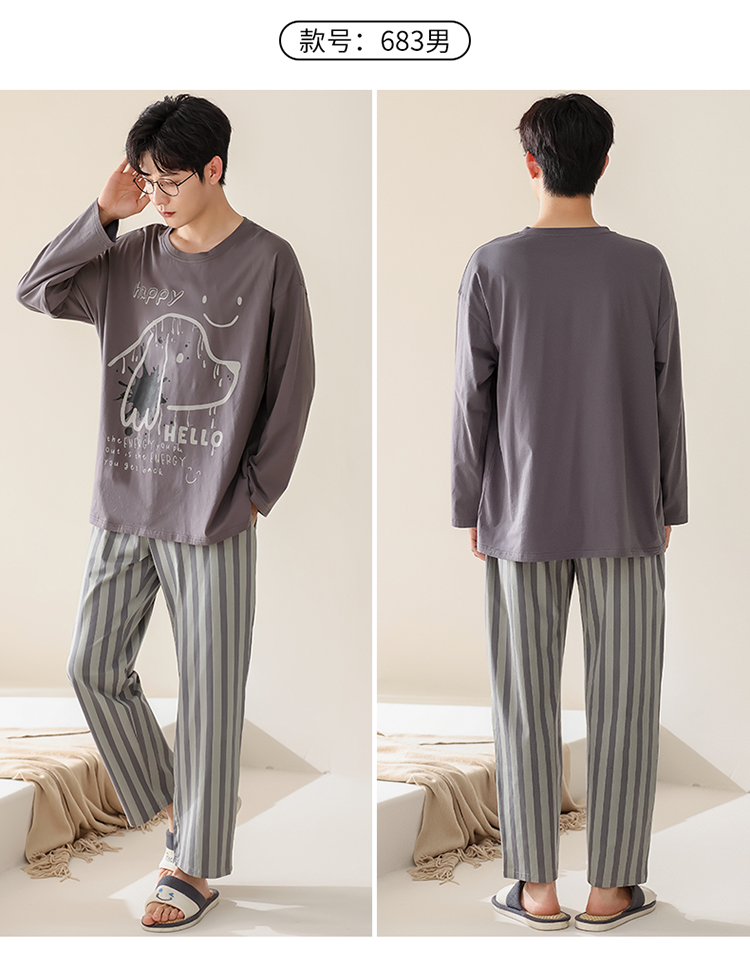 商品名称:春秋季纯棉圆领睡衣男士卡通长袖家居服夏季青少年休闲可外穿套装 683男