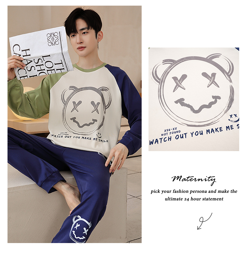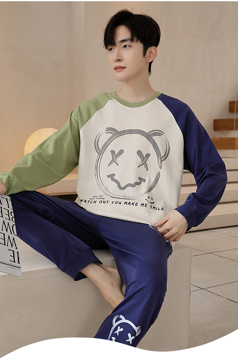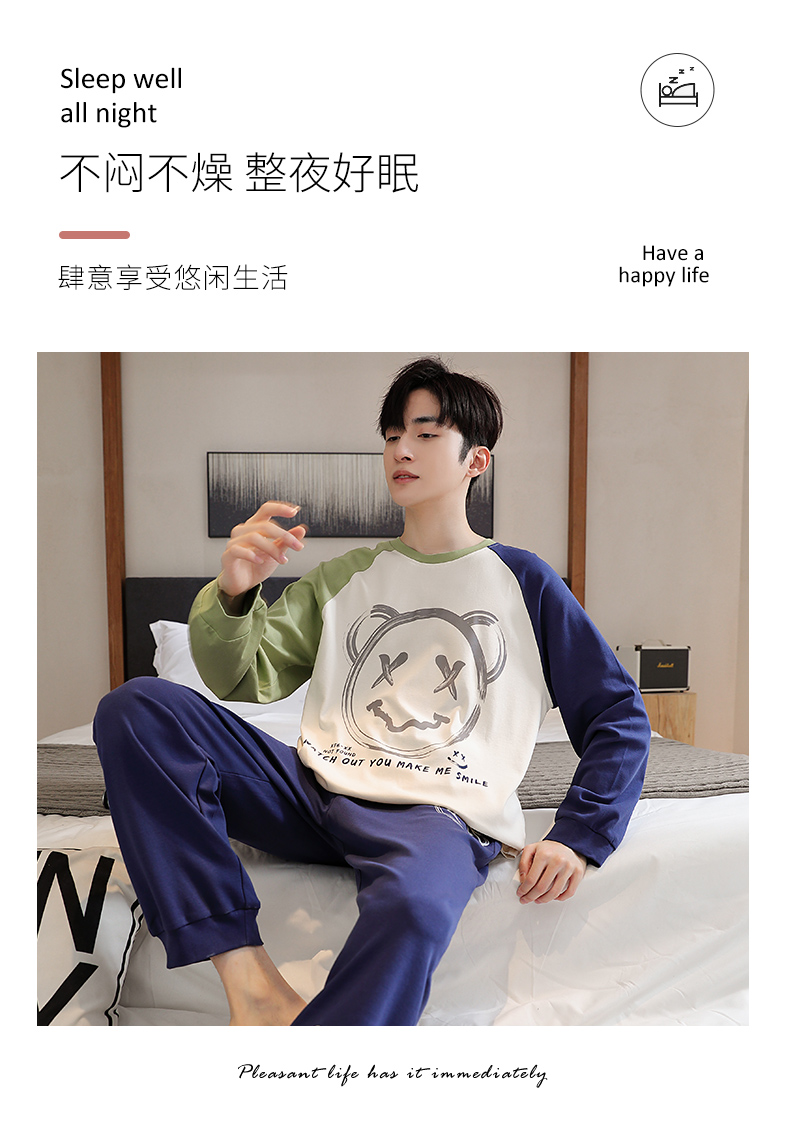 春秋季纯棉圆领睡衣男士卡通长袖家居服夏季青少年休闲可外穿套装 89294