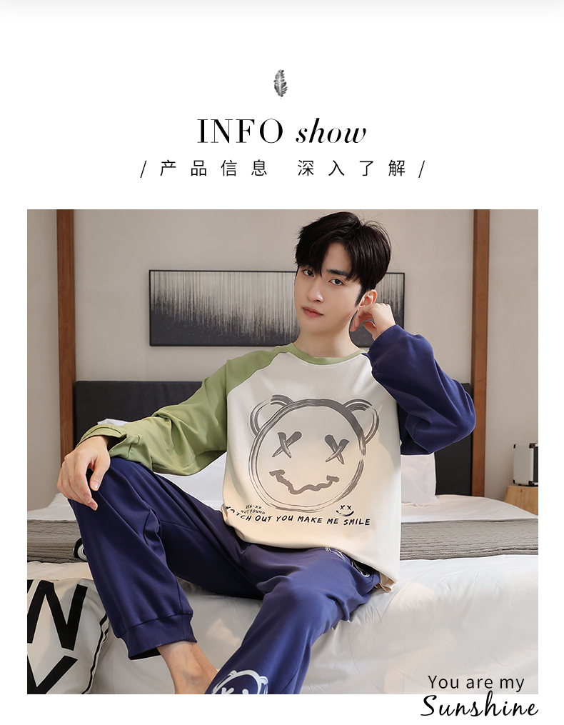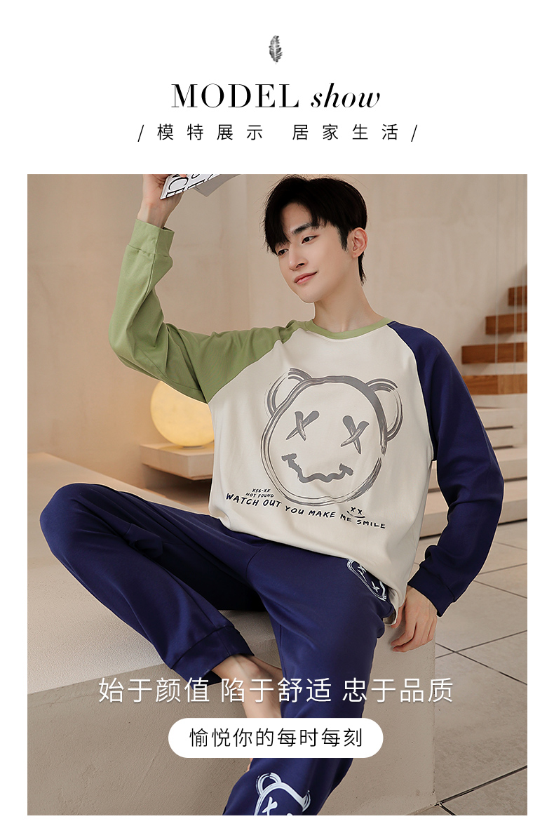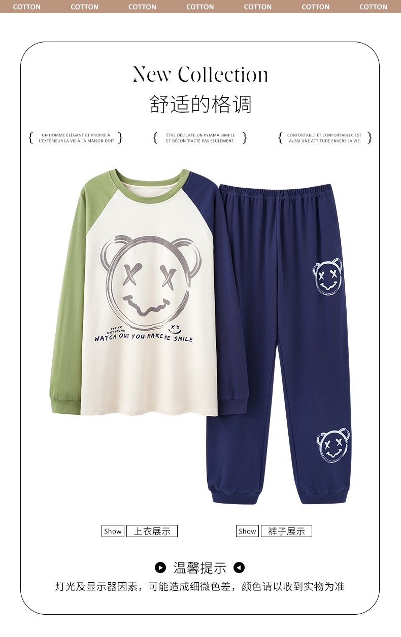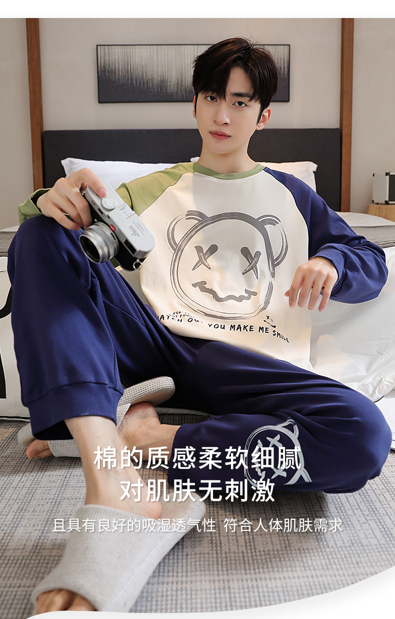 商品名称:春秋季纯棉圆领睡衣男士卡通长袖家居服夏季青少年休闲可外穿套装 89294