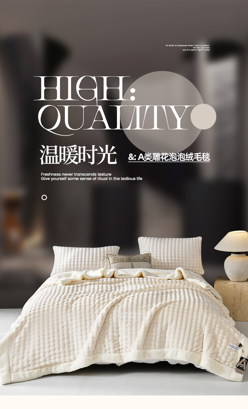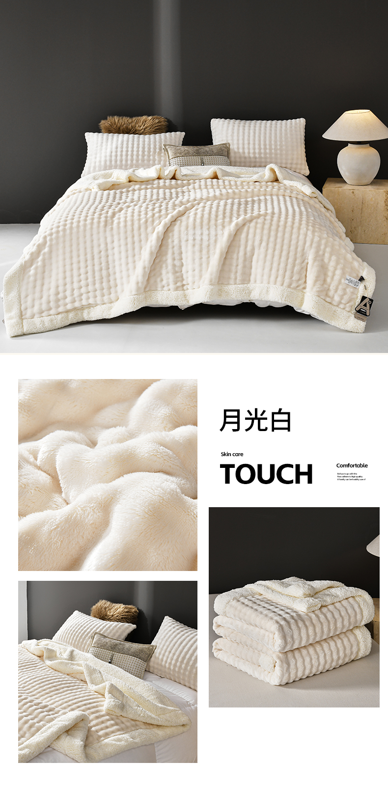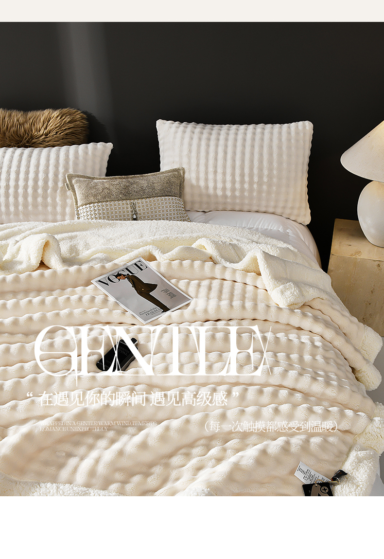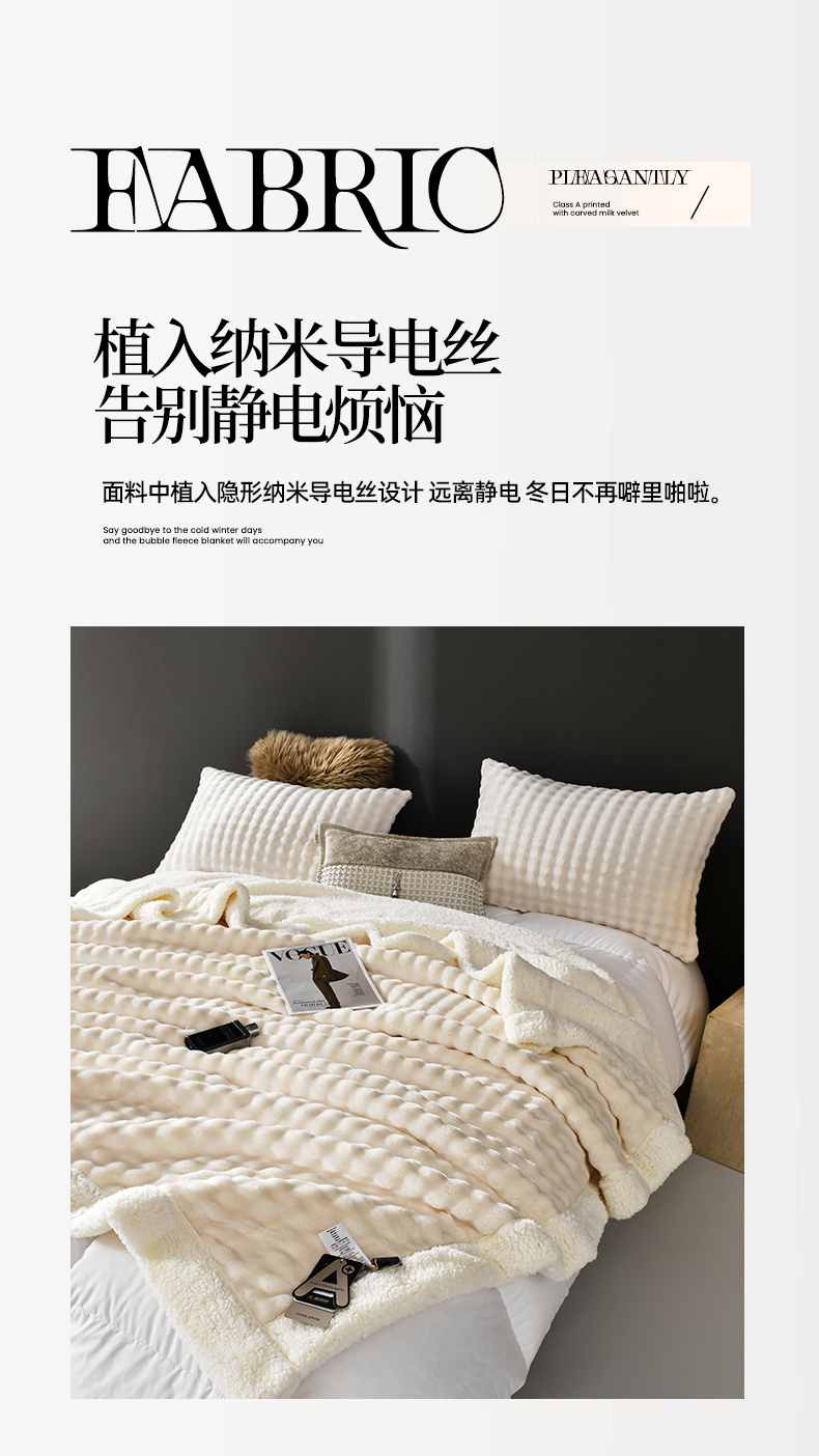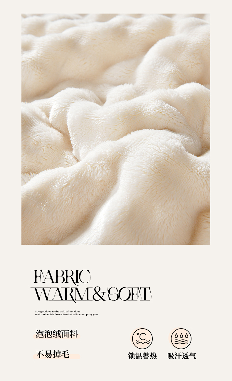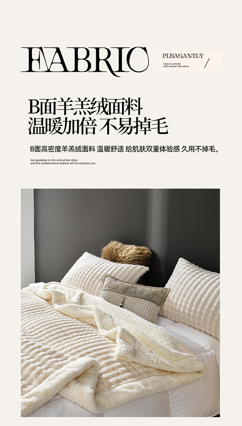 网客家纺 2024新款雕花绒泡泡绒羊羔绒毛毯 月光白