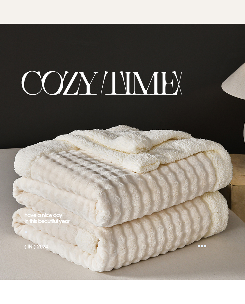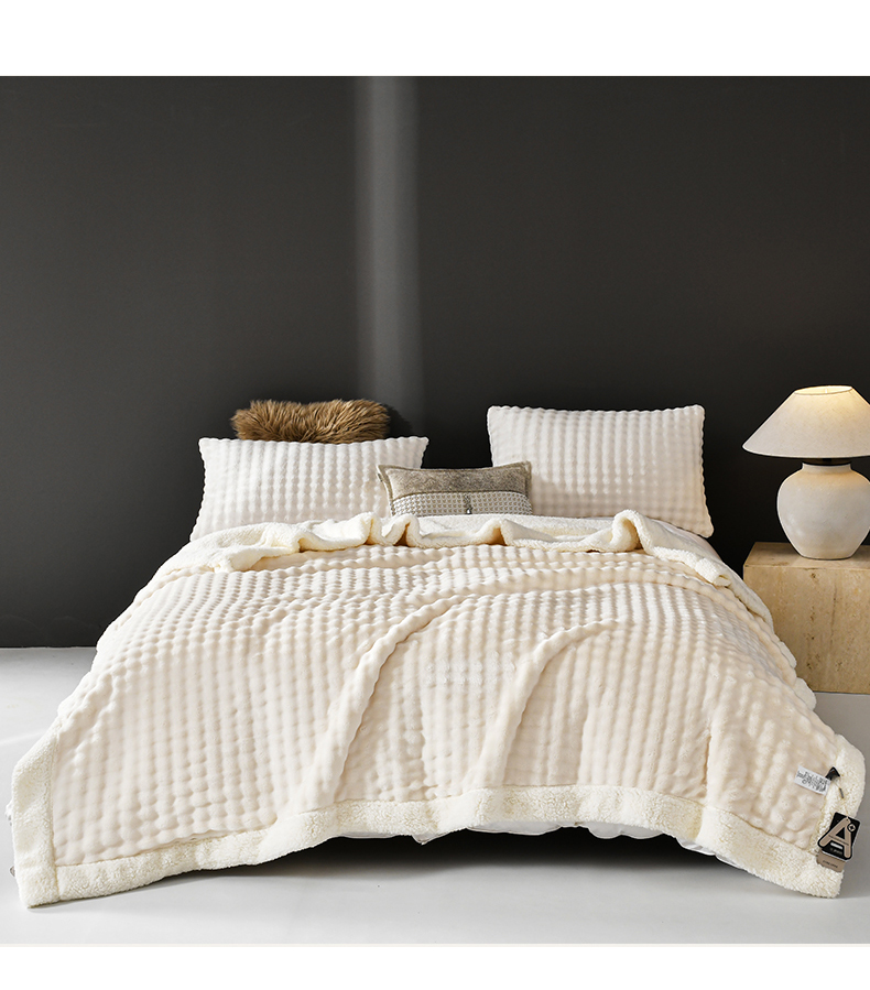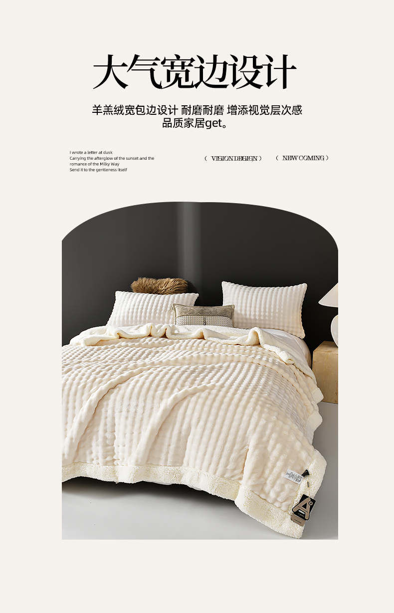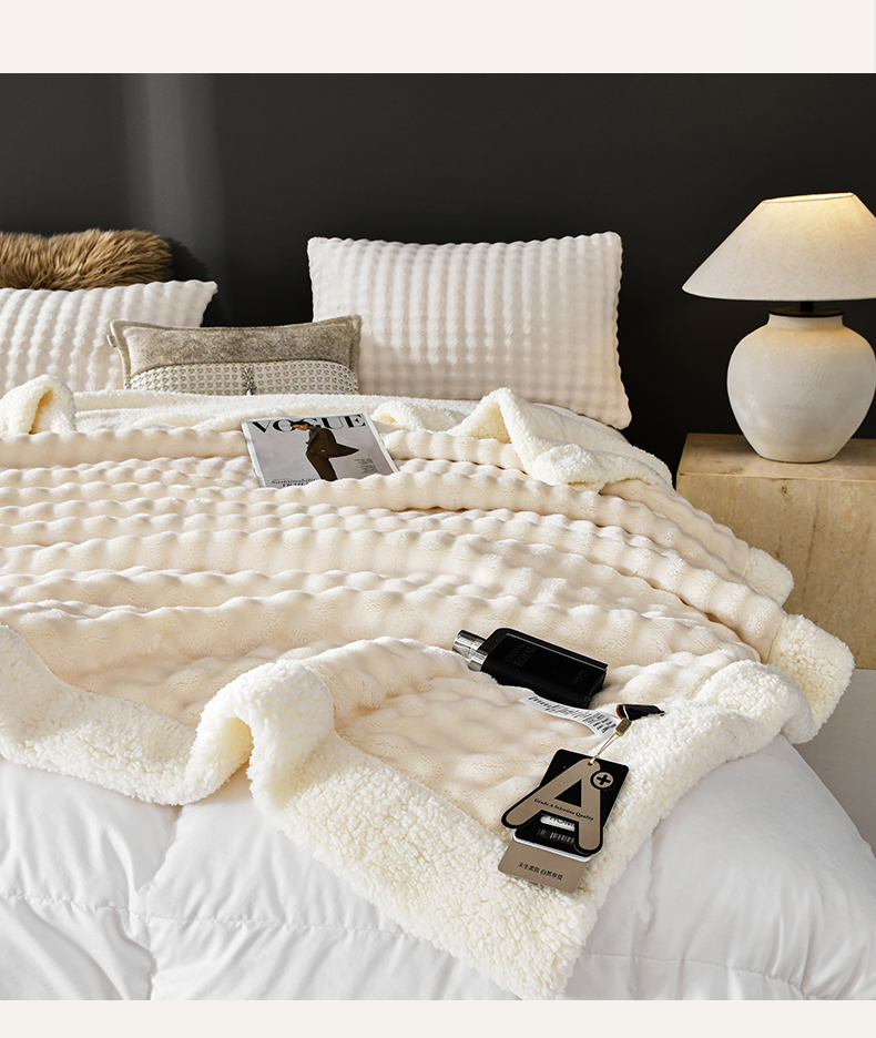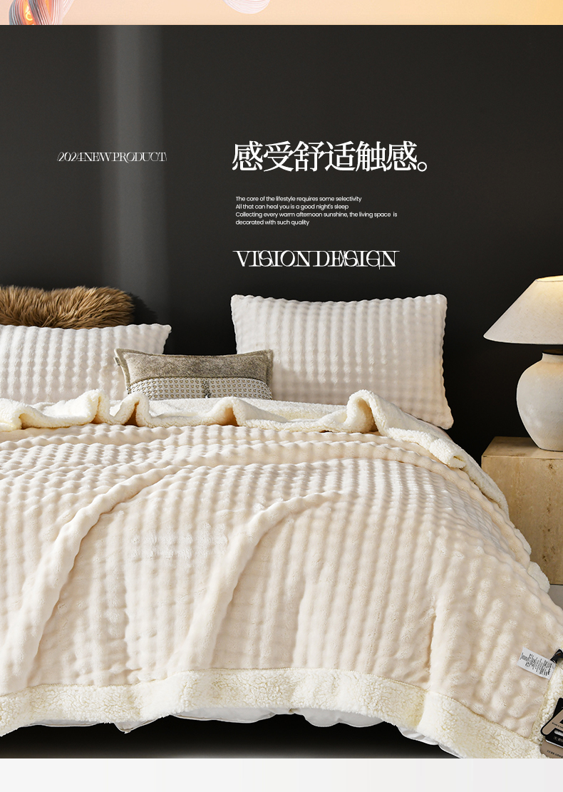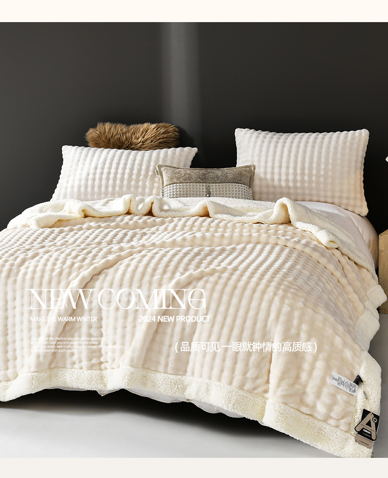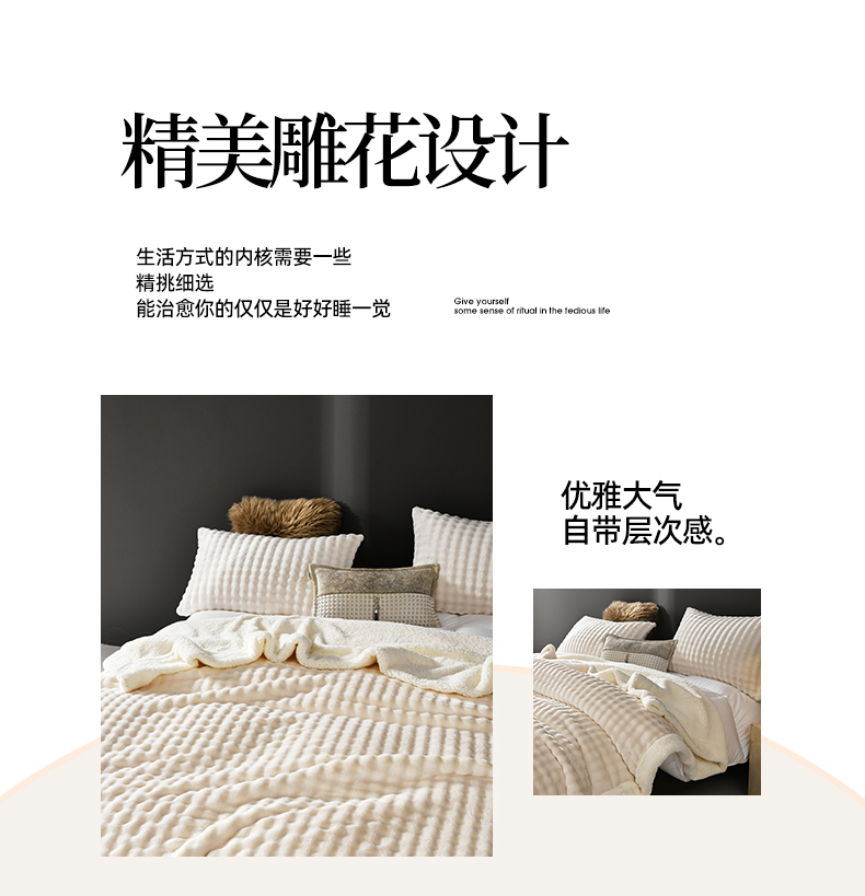 网客家纺 2024新款雕花绒泡泡绒羊羔绒毛毯 月光白