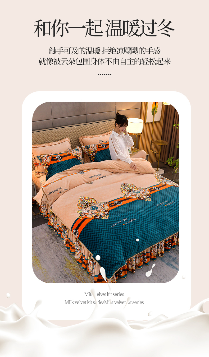 (总)曼尼2025新品高克重直播印花牛奶绒四件套床裙款法莱绒金貂珊瑚绒,牛奶派对,安娜粉,巴黎之约,霸王茶姬,玫瑰庄园,咪ni,秘密花园,逆境,暖暖时光,青花瓷,三生有幸,山茶花,时尚斑马,时尚格,水墨江南,小熊丫丫,叶叶思语,一鹿有你,穿越浪漫,淡雅,花间漫舞,小熊芭比,时尚风情,奇妙花开,迷情方格,艾莎 绿,清新怡人,梦幻花韵,郁金香,晚秋,蓝大格,妙笔生花,小兔吉米,吉祥如意,花开暮色