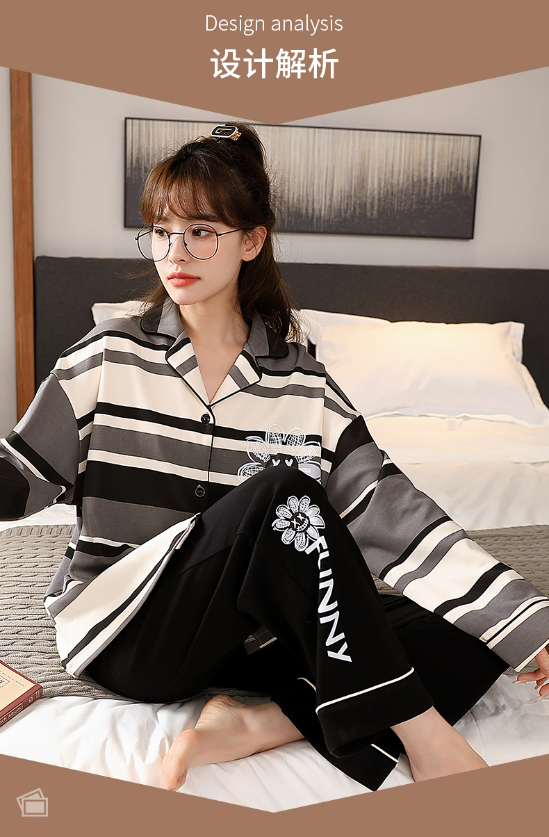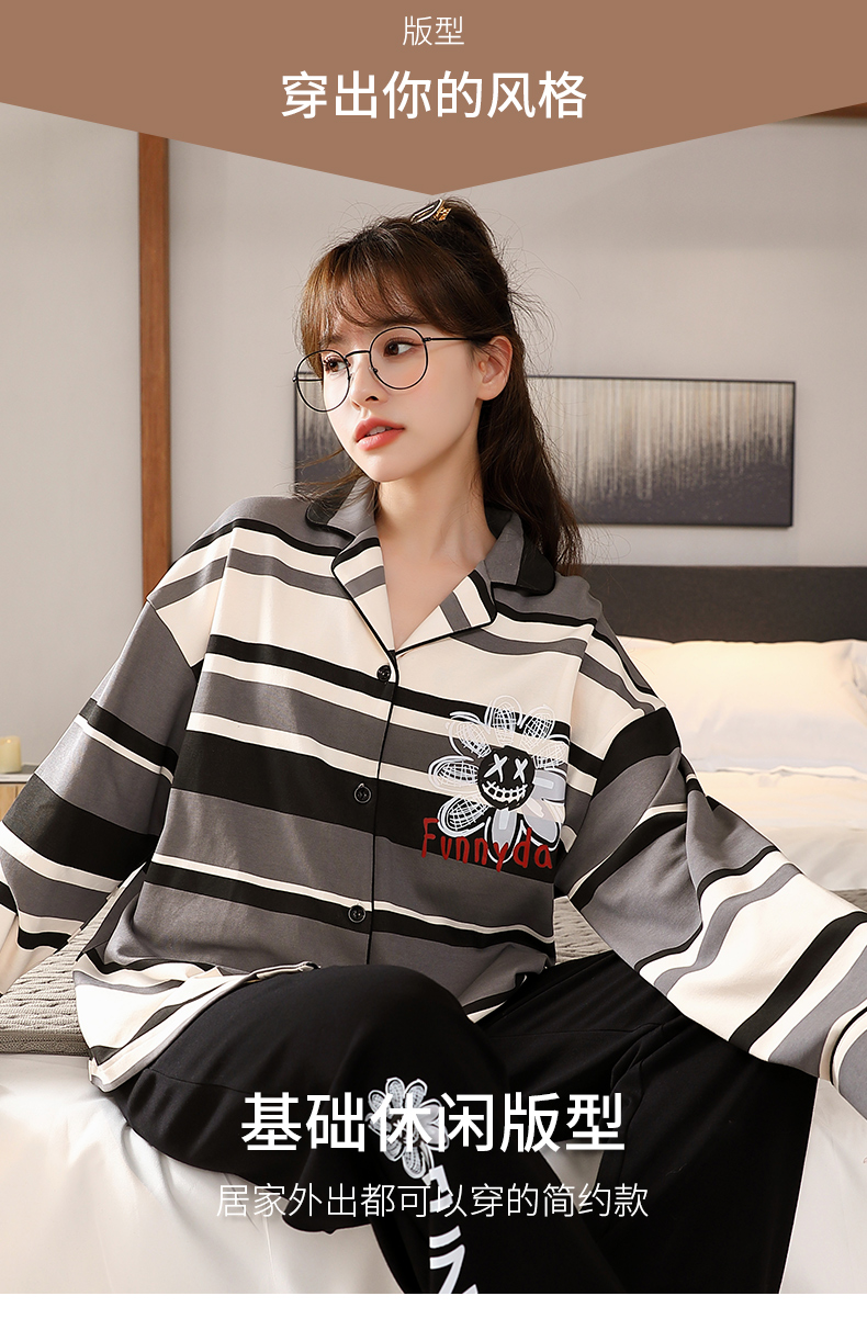商品名称:春秋季纯棉开衫翻领睡衣少女卡通甜美长袖可外穿家居服套装 641女