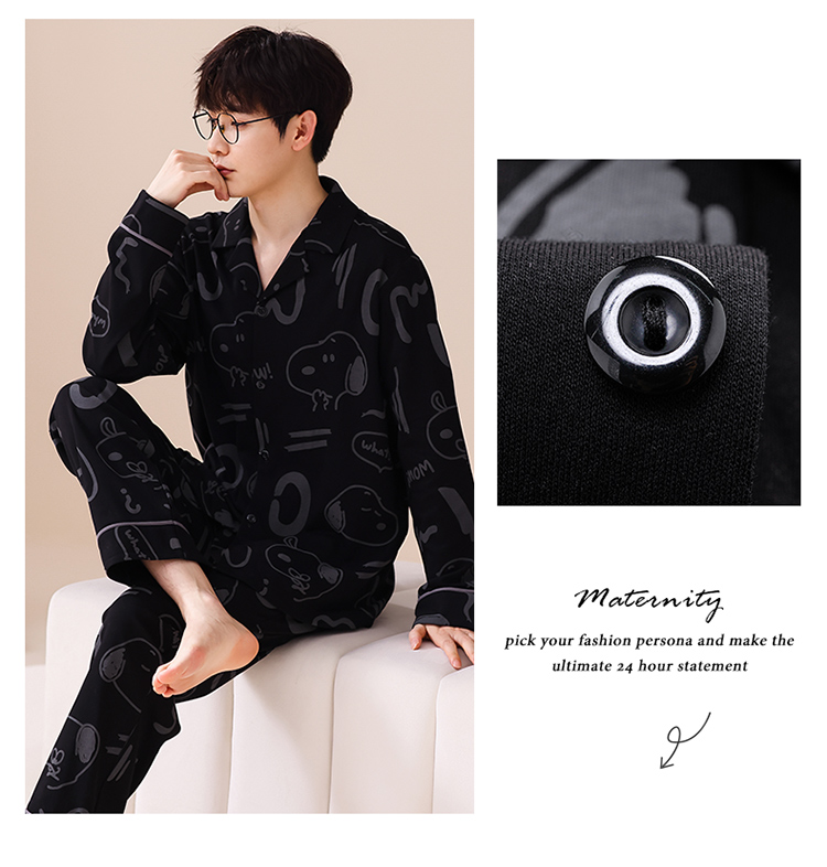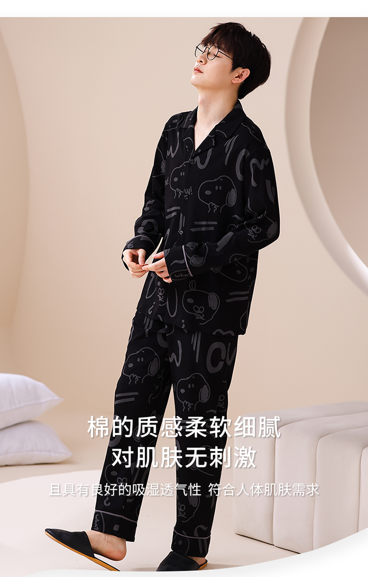 洛兰沙 春秋季纯棉开衫长袖可外穿家居服睡衣 L667男