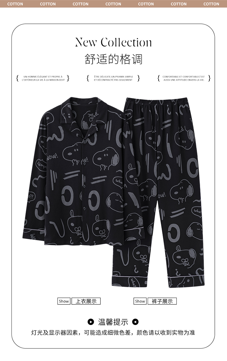 商品名称:洛兰沙 春秋季纯棉开衫长袖可外穿家居服睡衣 L667男
