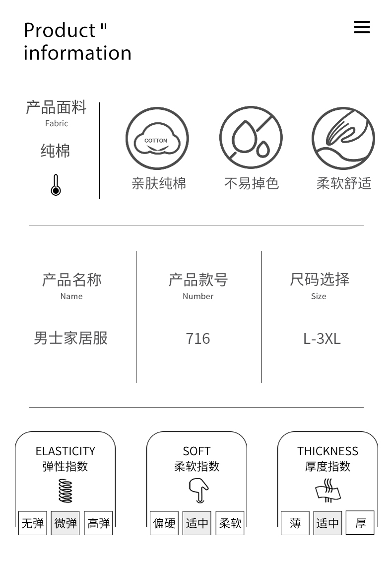 商品名称:洛兰沙 春秋季纯棉开衫长袖可外穿家居服睡衣 716男