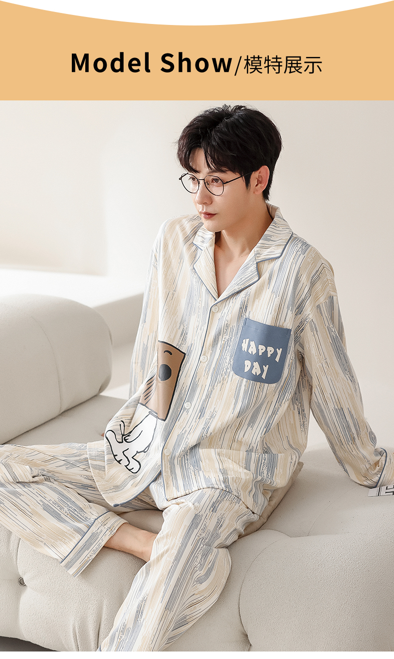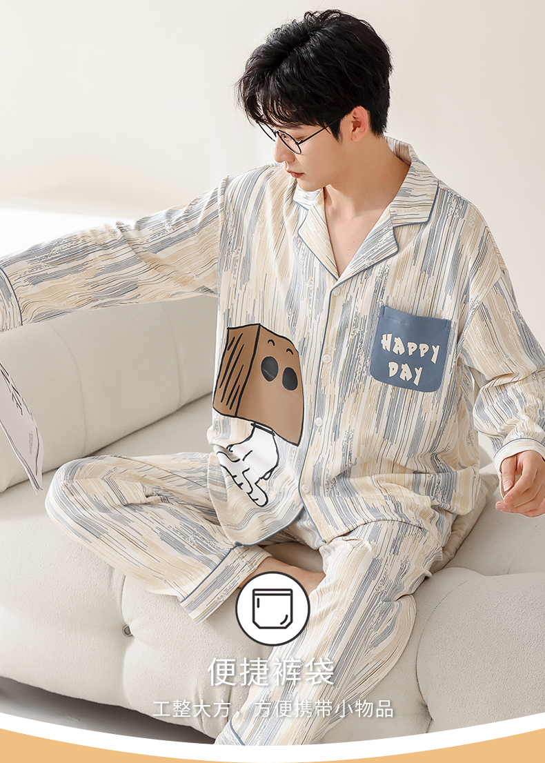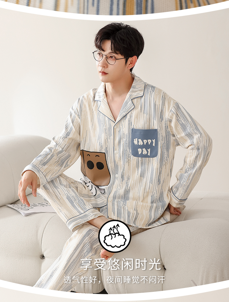 洛兰沙 春秋季纯棉开衫长袖可外穿家居服睡衣 716男