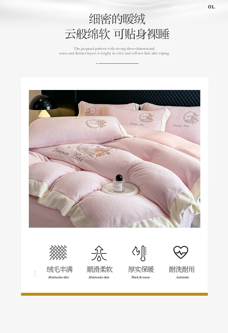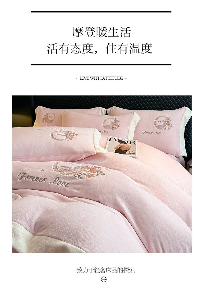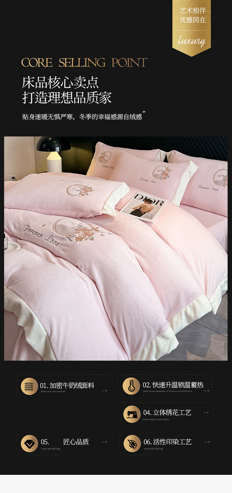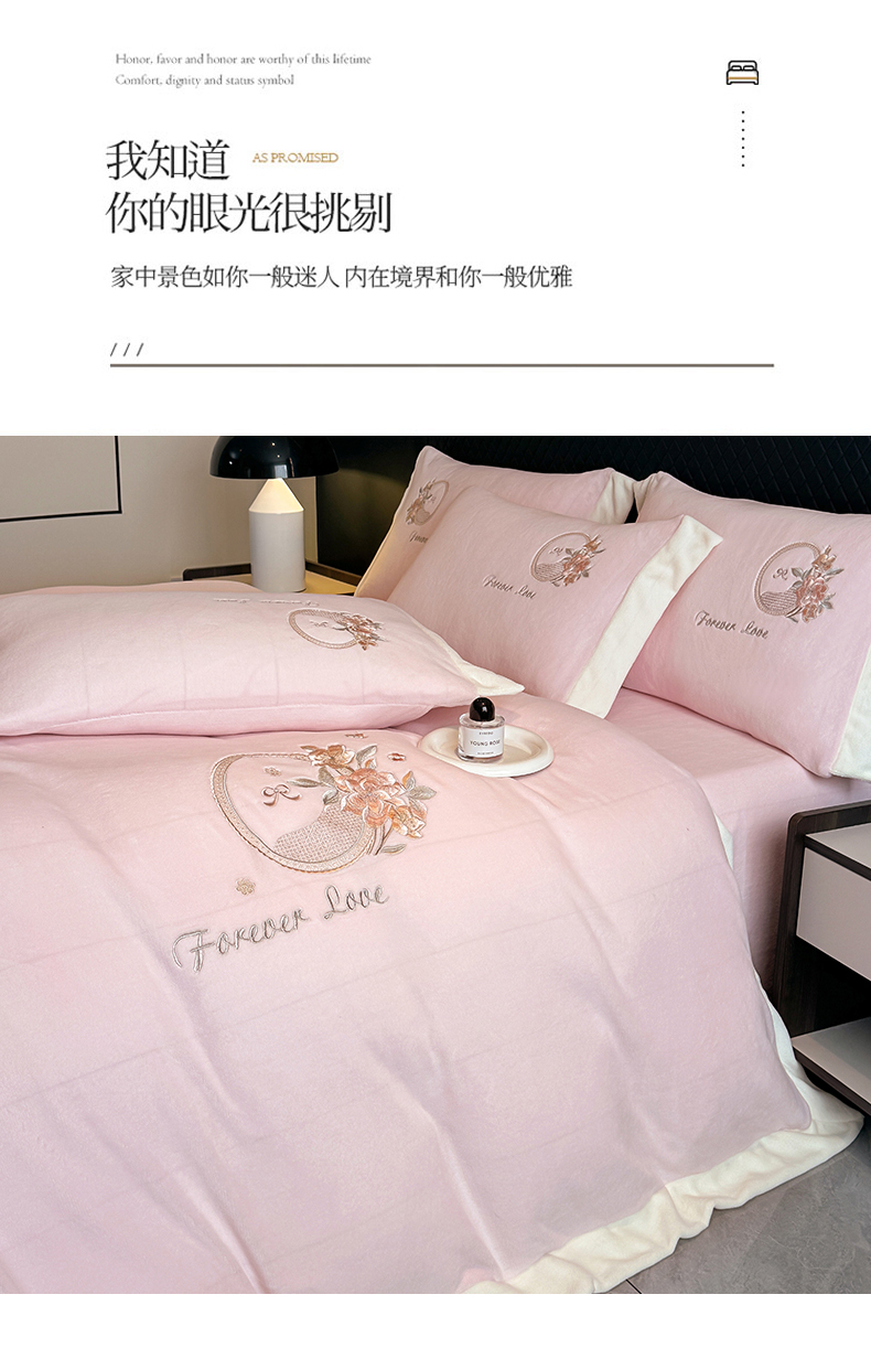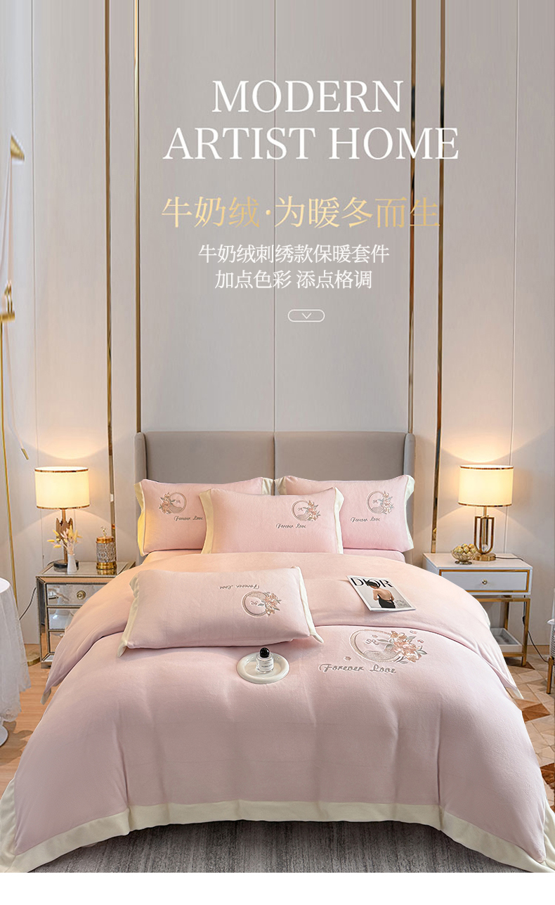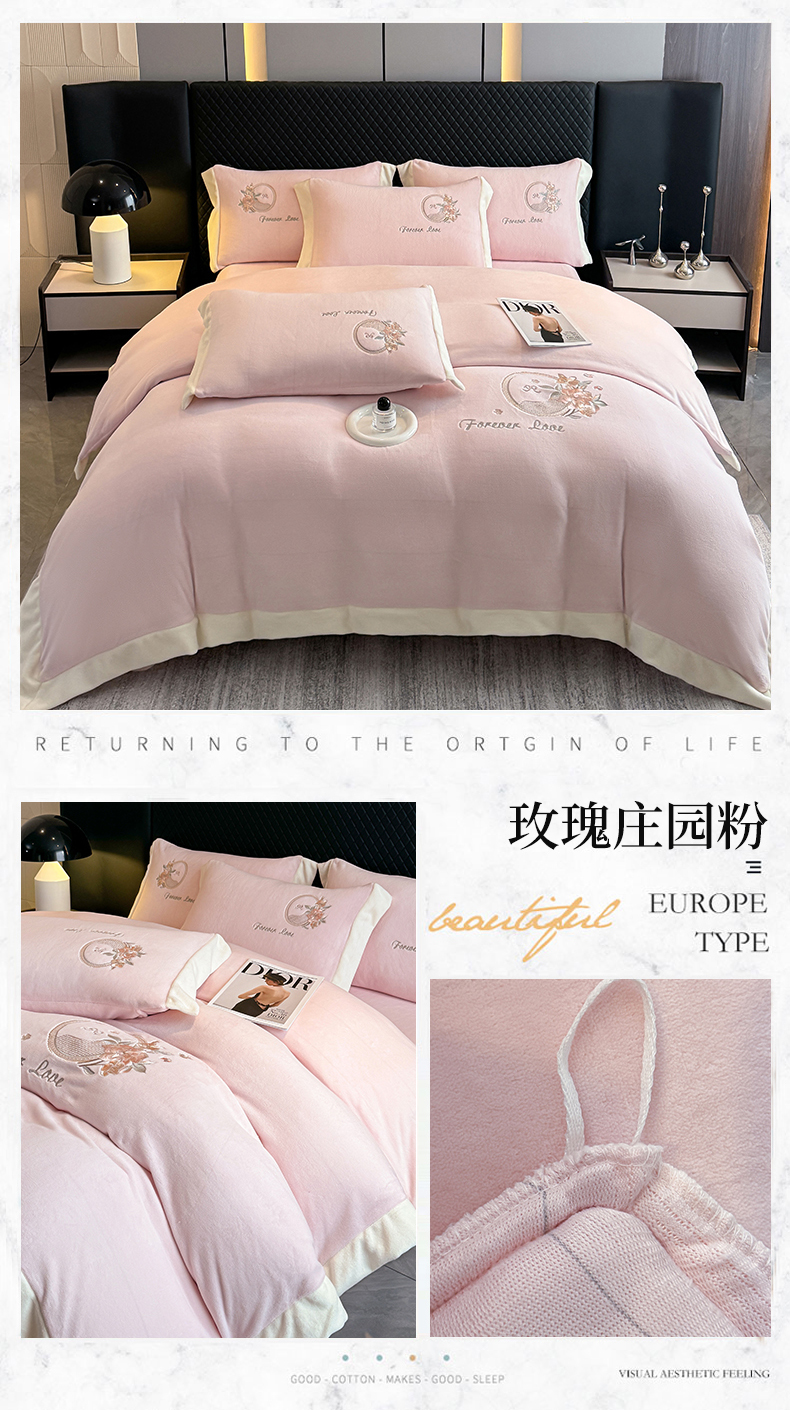 当前位置: 91家纺网 > 商品网购 > 床品套件 > 四件套 > 牛奶绒四件套 > KA家纺 2025新款绣花牛奶绒四件套-玫瑰庄园系列 玫瑰庄园粉