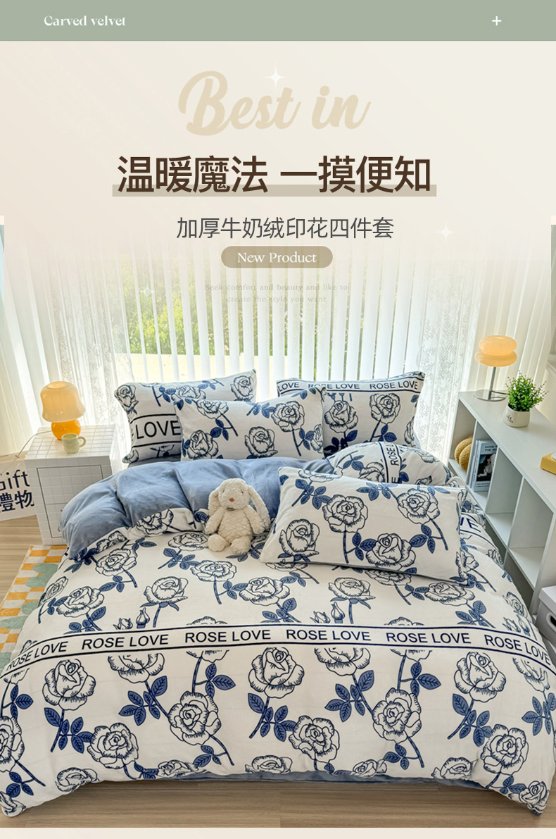 当前位置: 91家纺网 > 商品网购 > 床品套件 > 四件套 > 牛奶绒四件套 > 觅妮家纺 2025新款高克重秋冬加厚印花牛奶绒四件套 青花瓷