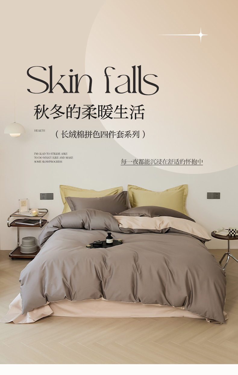 当前位置: 91家纺网 > 商品网购 > 床品套件 > 四件套 > 长绒棉四件套 > EH家居 2024新款长绒棉拼色四件套系列--英文版 可可棕