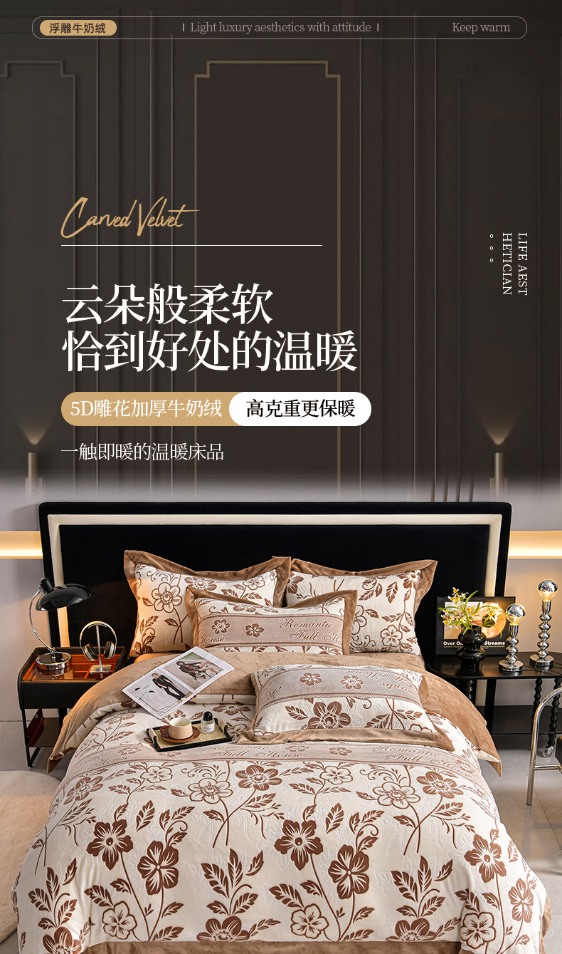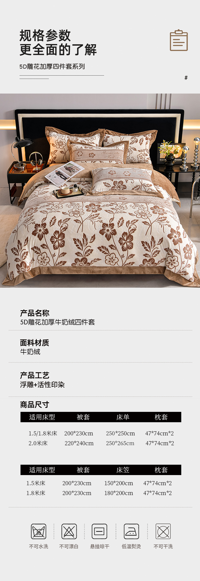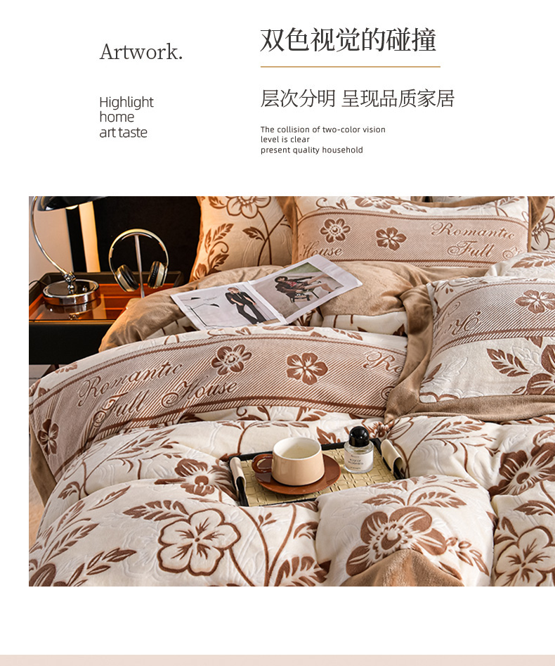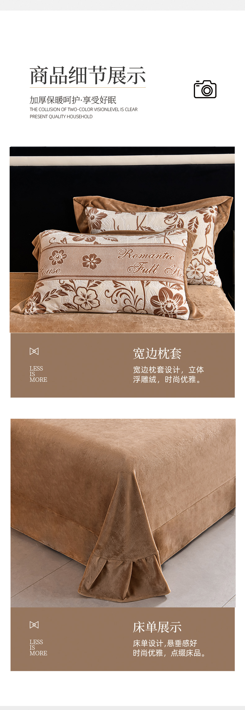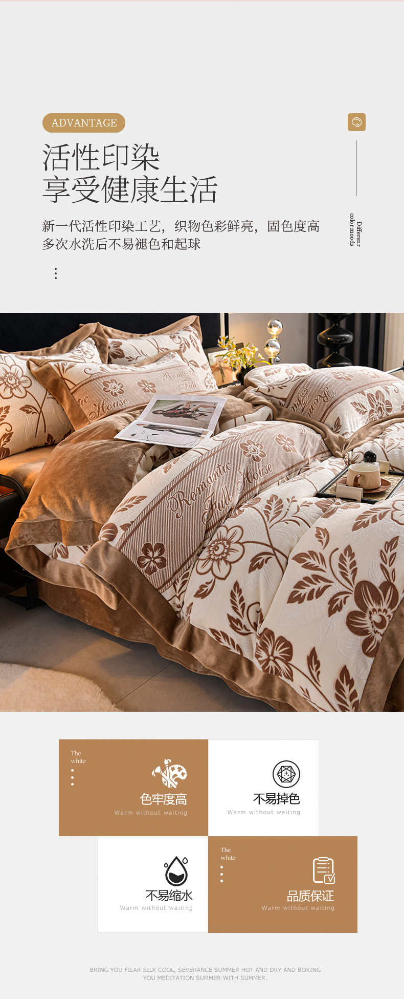 商品名称:馨梦缘 2025新款宽边5D雕花绒牛奶绒四件套 繁花-咖