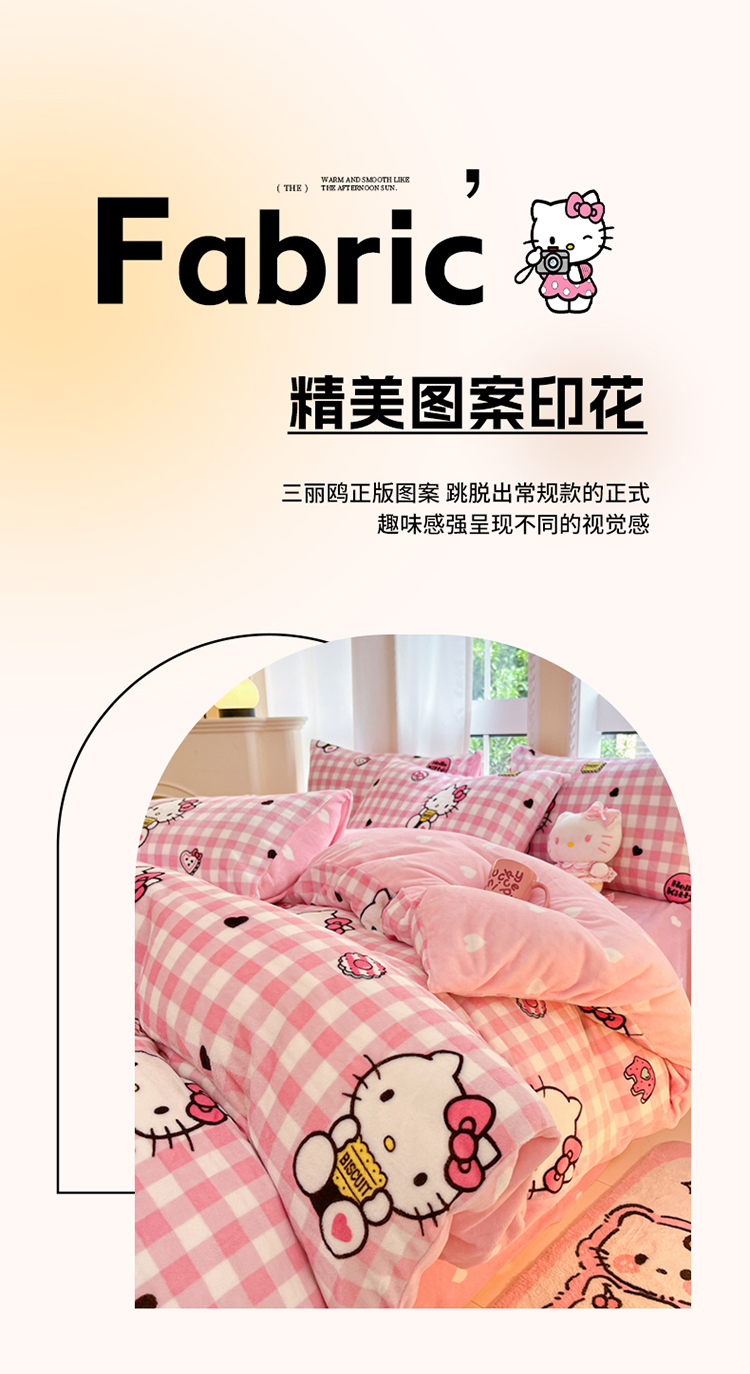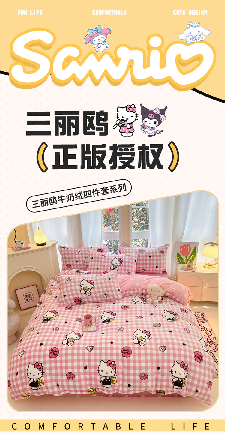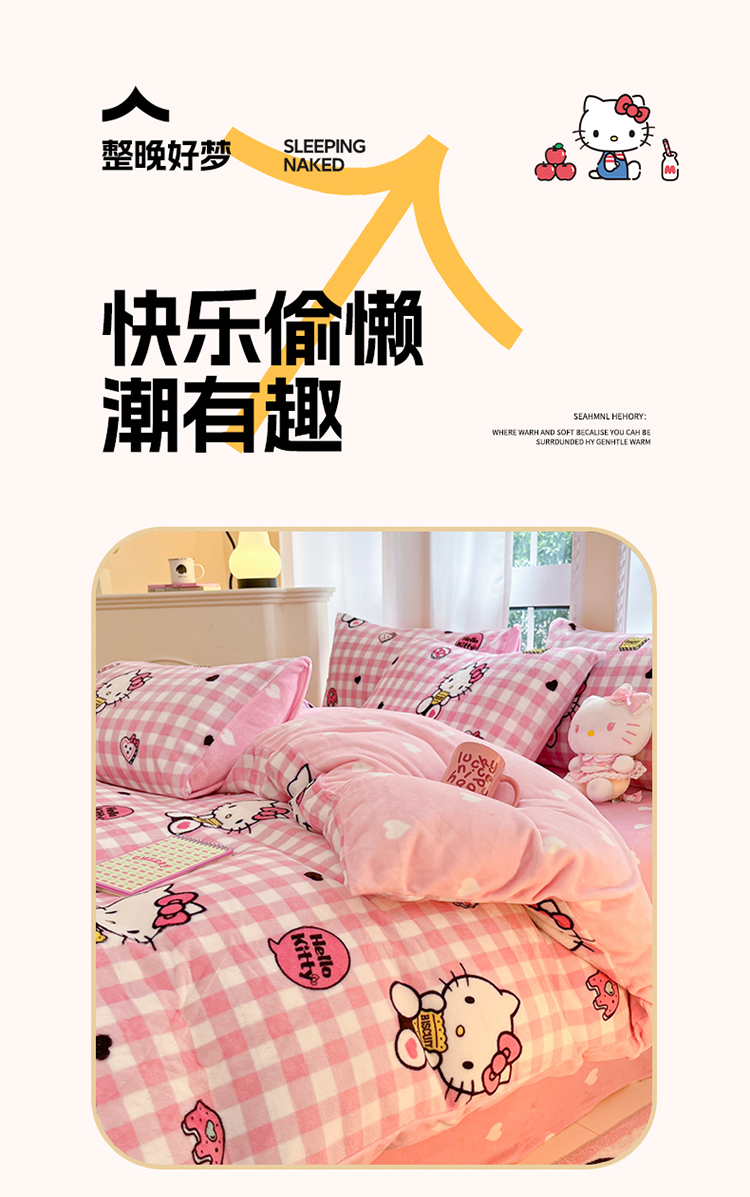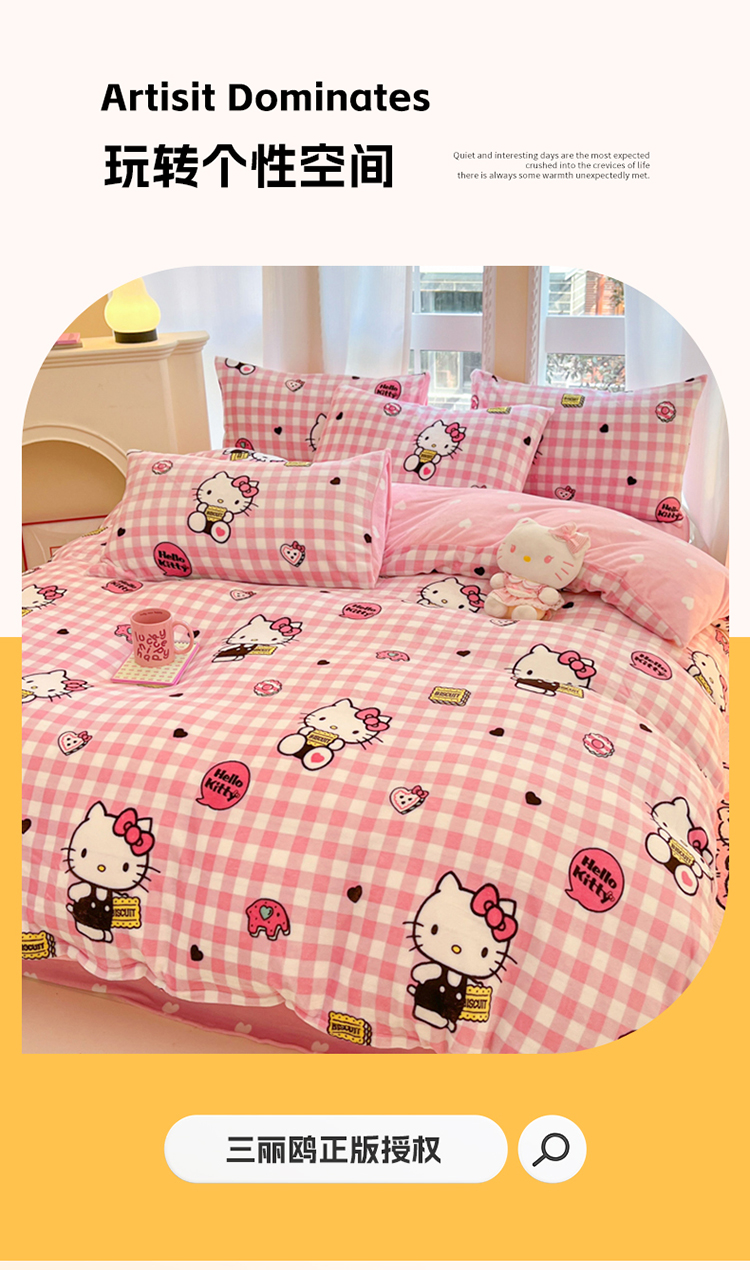 当前位置: 91家纺网 > 商品网购 > 床品套件 > 四件套 > 牛奶绒四件套 > 2024新款三丽鸥牛奶绒小版四件套 牛奶绒小版-饼干KT猫