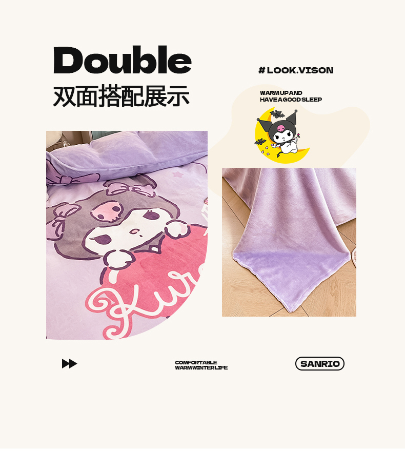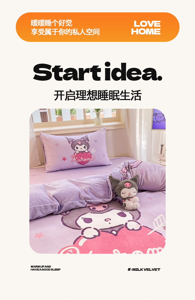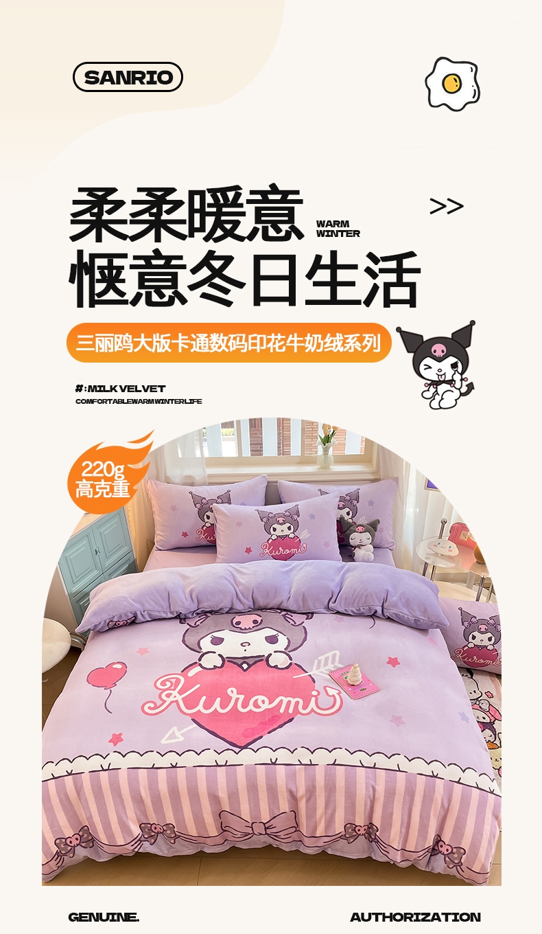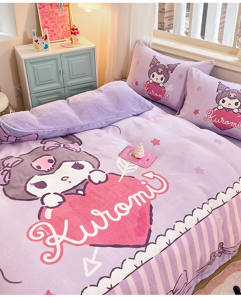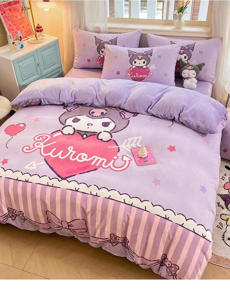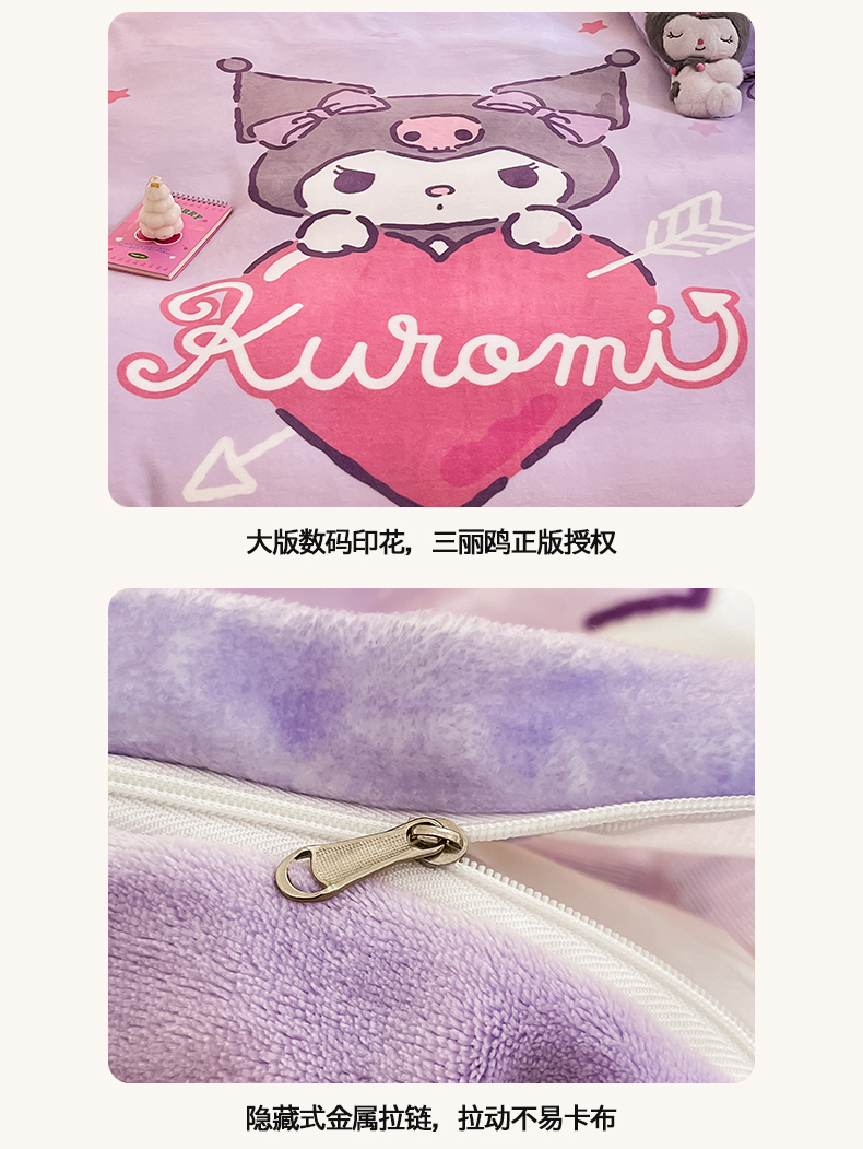 当前位置: 91家纺网 > 商品网购 > 床品套件 > 四件套 > 牛奶绒四件套 > 2024新品正版三丽鸥授权大版卡通平网数码印花加厚高克重牛奶绒系列四件套 绒大版-R丘比特库洛米