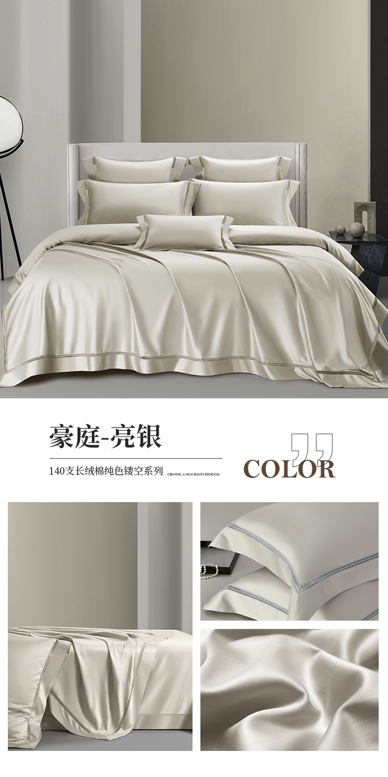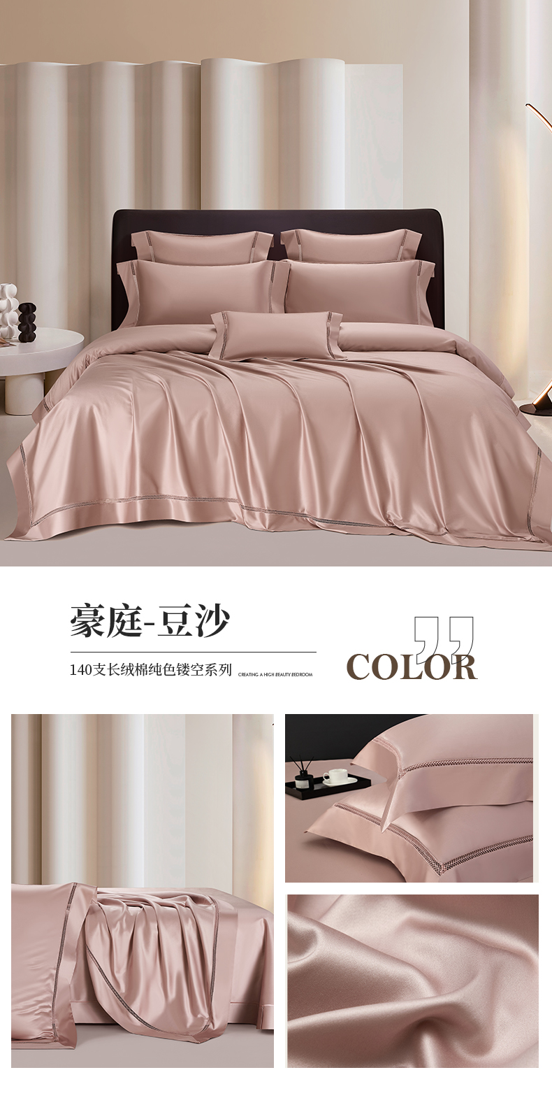 商品名称:【2024】140支140S全棉纯色四件套镂空款可选多件套可定制 豪庭豆沙