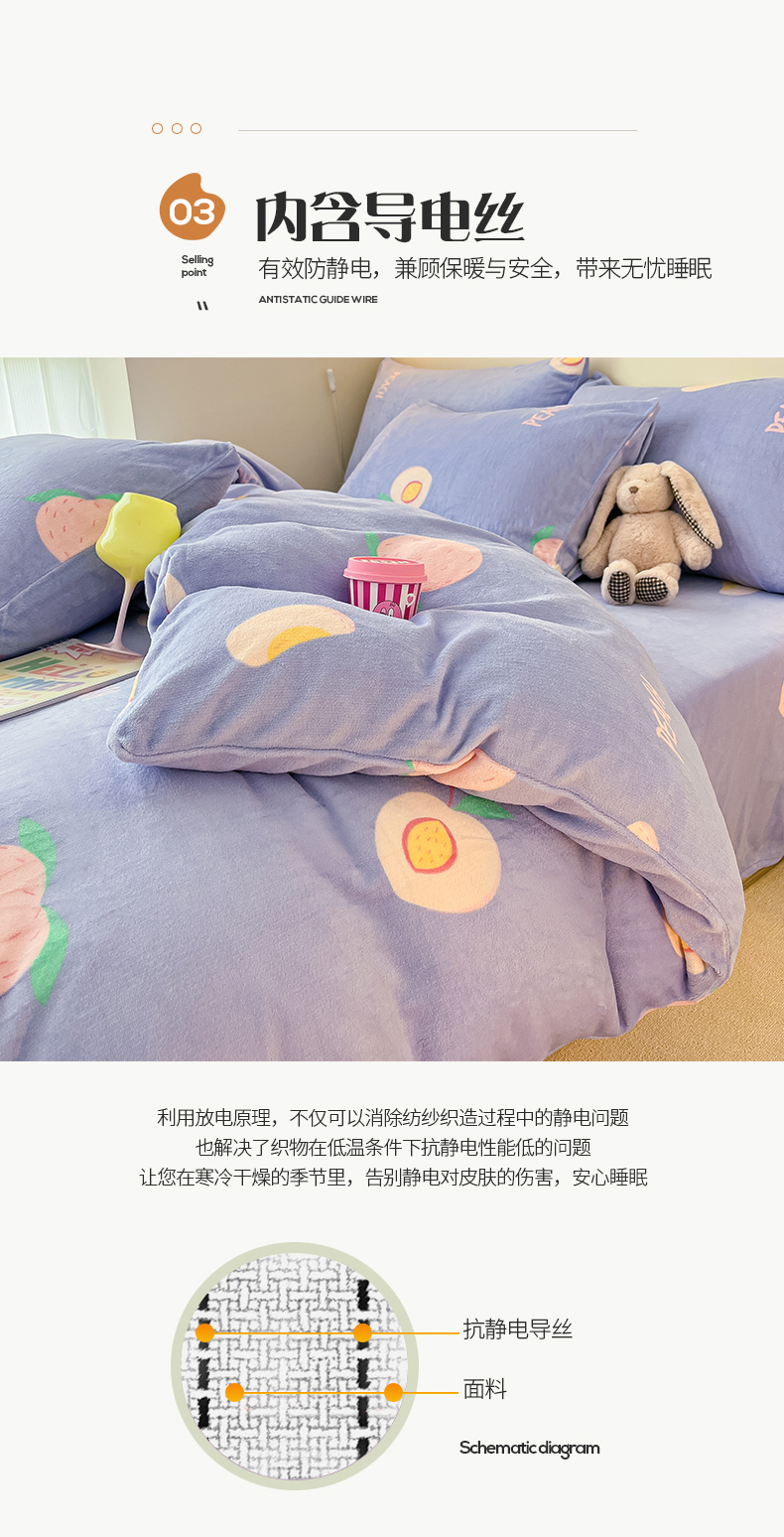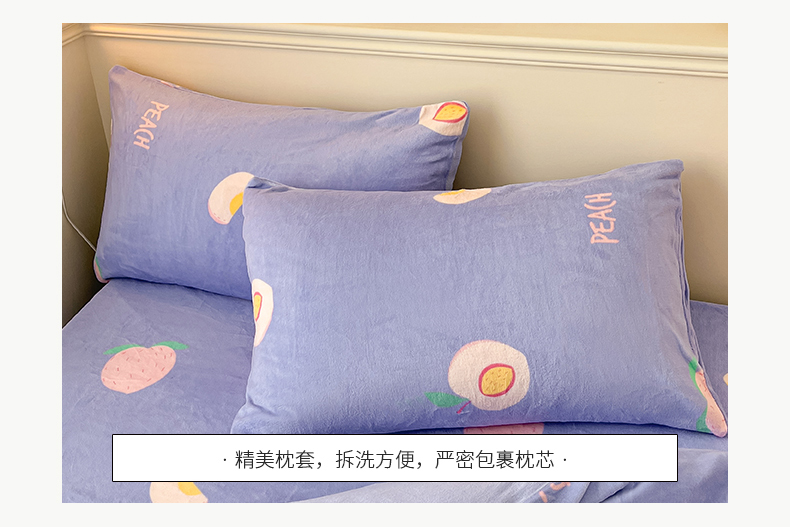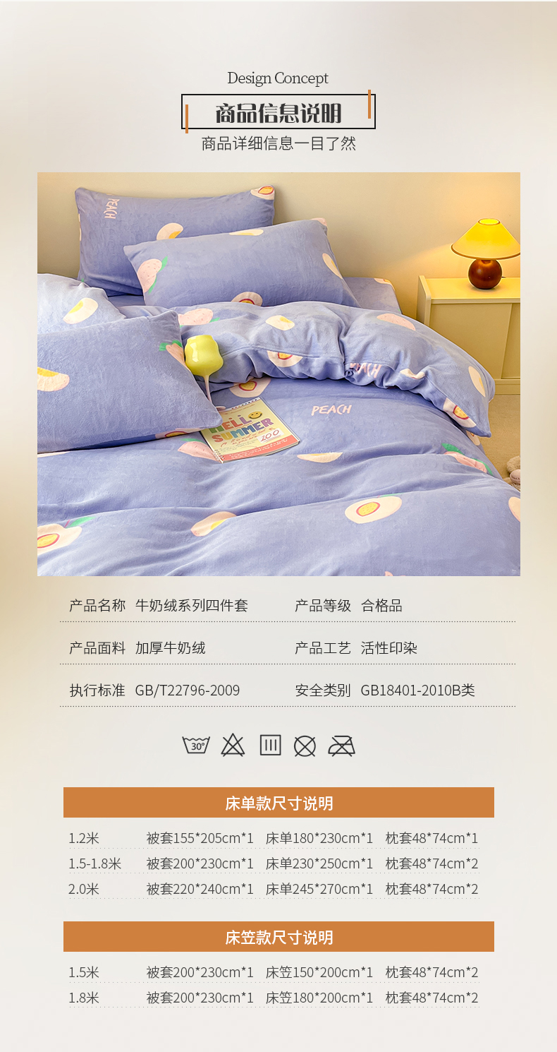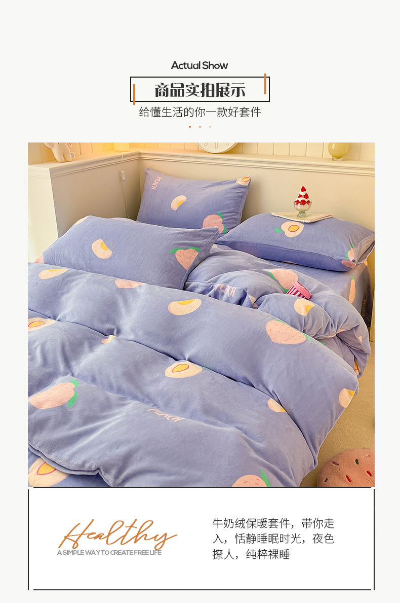 商品名称:2024新款200g加厚防静电牛奶绒小清新四件套 绒-紫色桃子