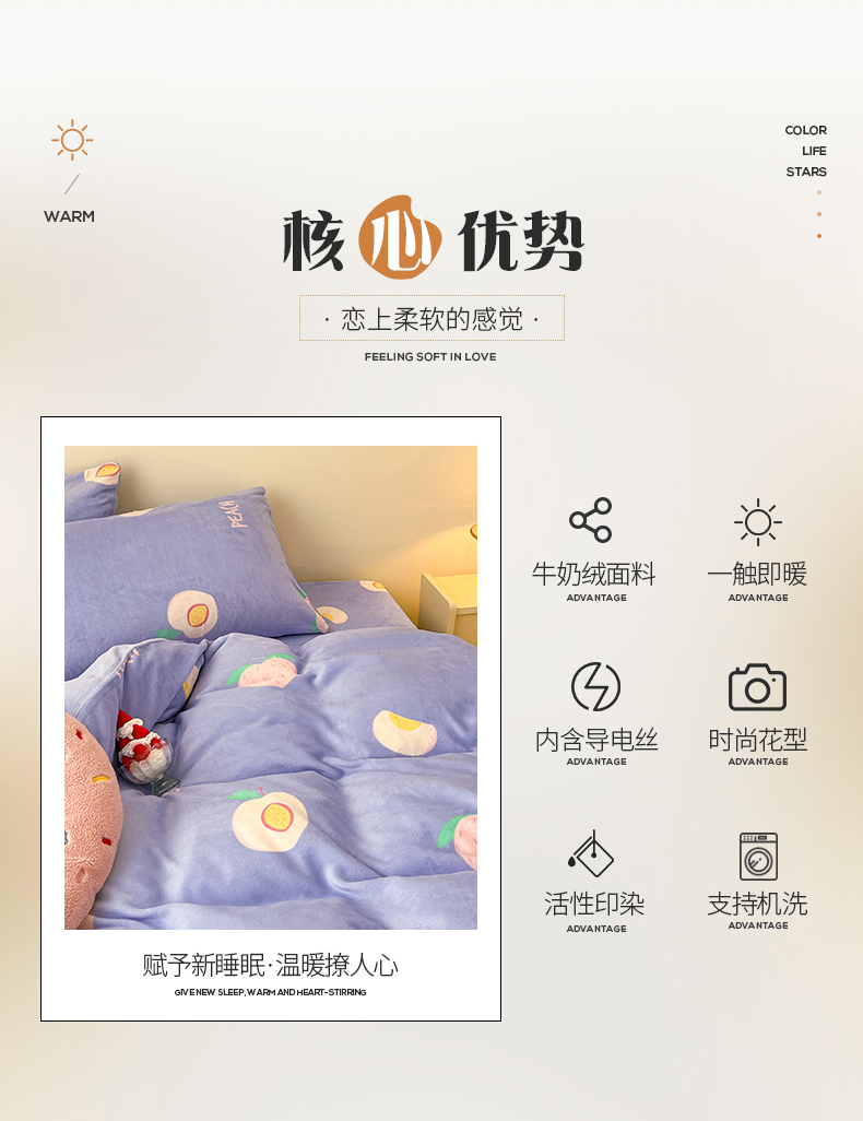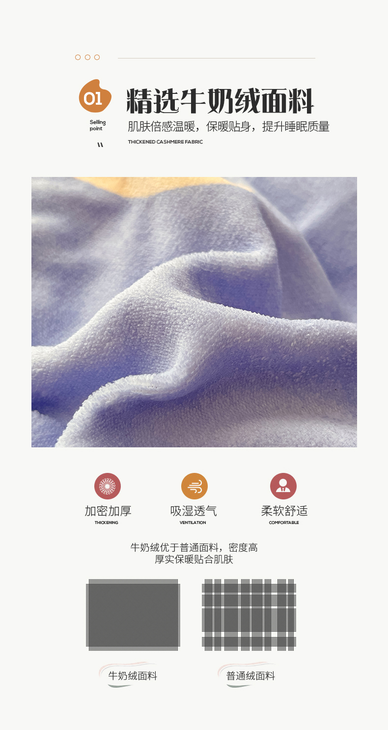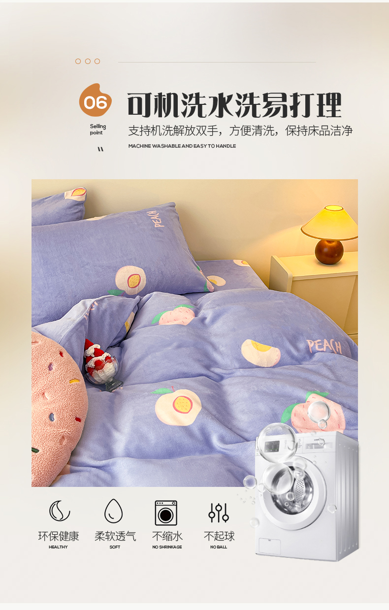 商品名称:2024新款200g加厚防静电牛奶绒小清新四件套 绒-紫色桃子