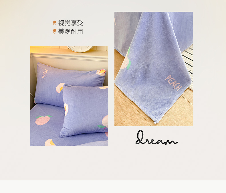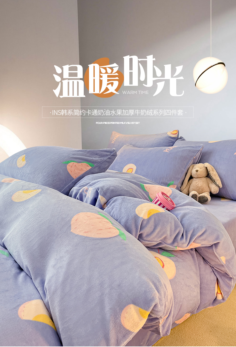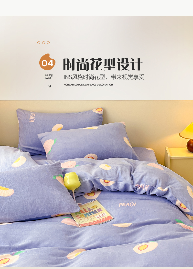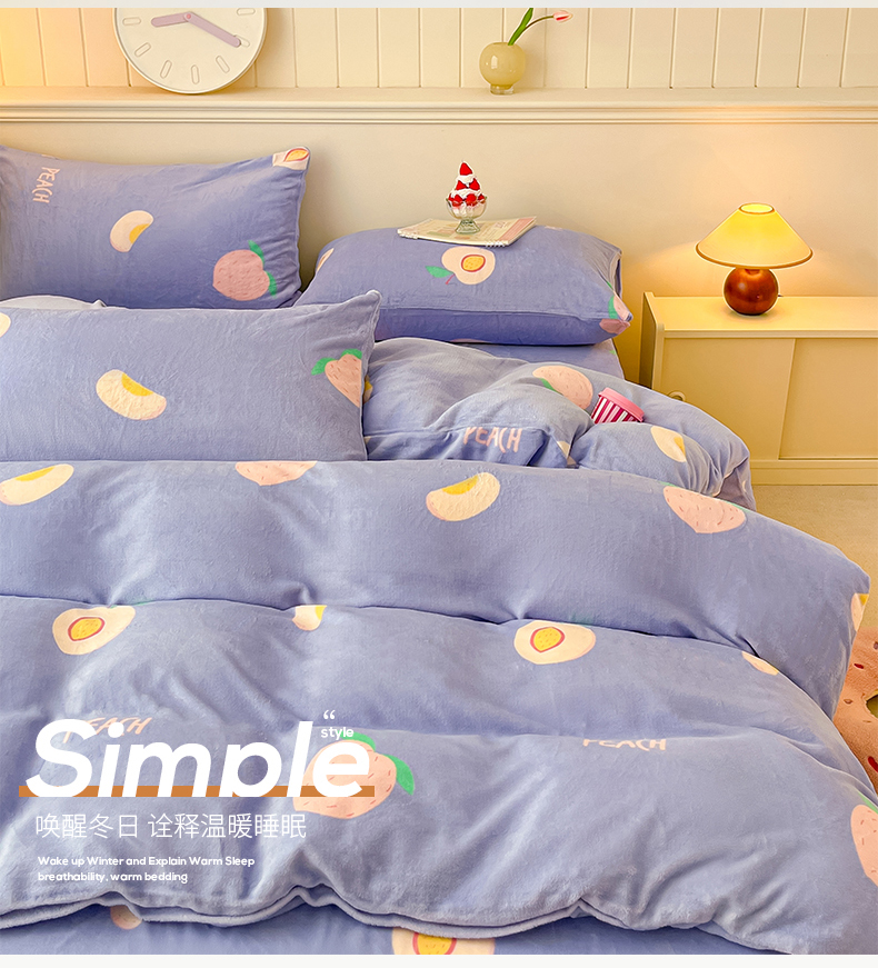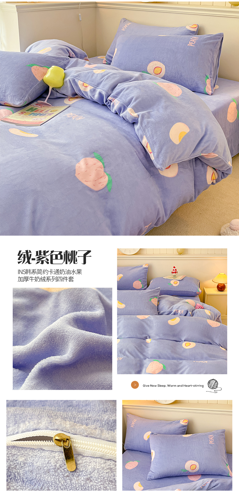 2024新款200g加厚防静电牛奶绒小清新四件套 绒-紫色桃子