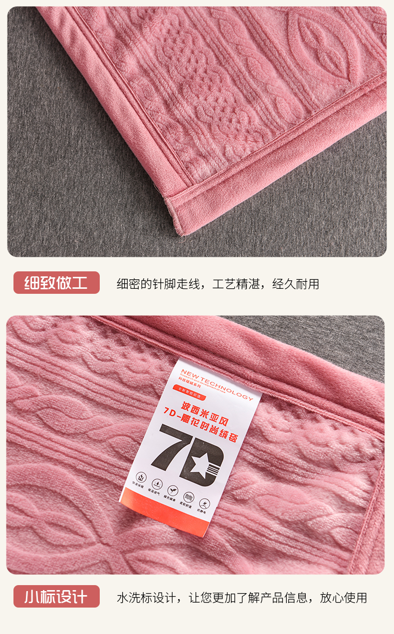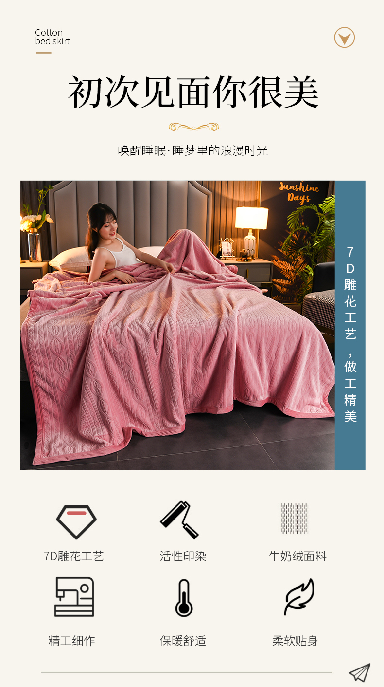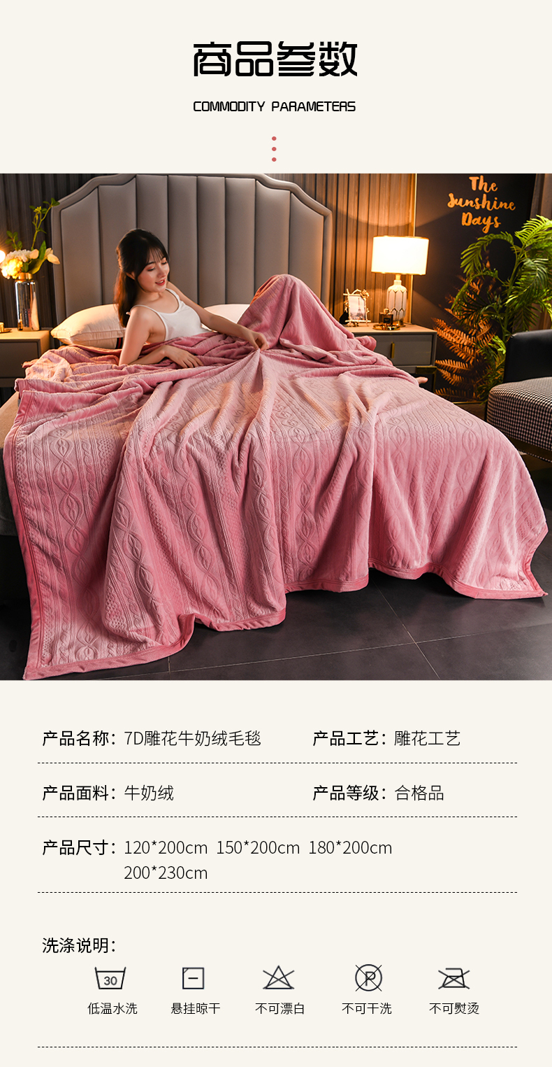 商品名称:小牛席业 2024新款7D雕花牛奶绒毛毯 粉色