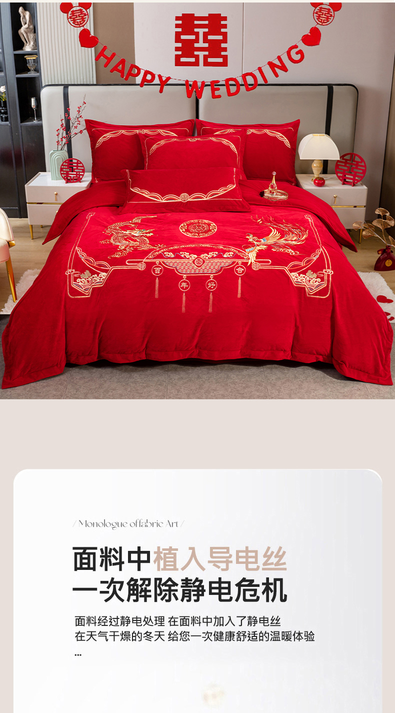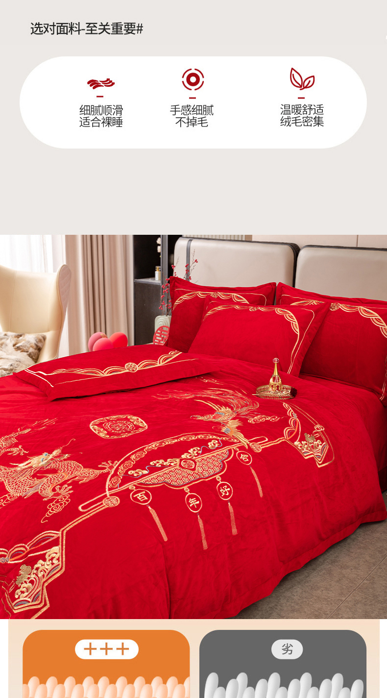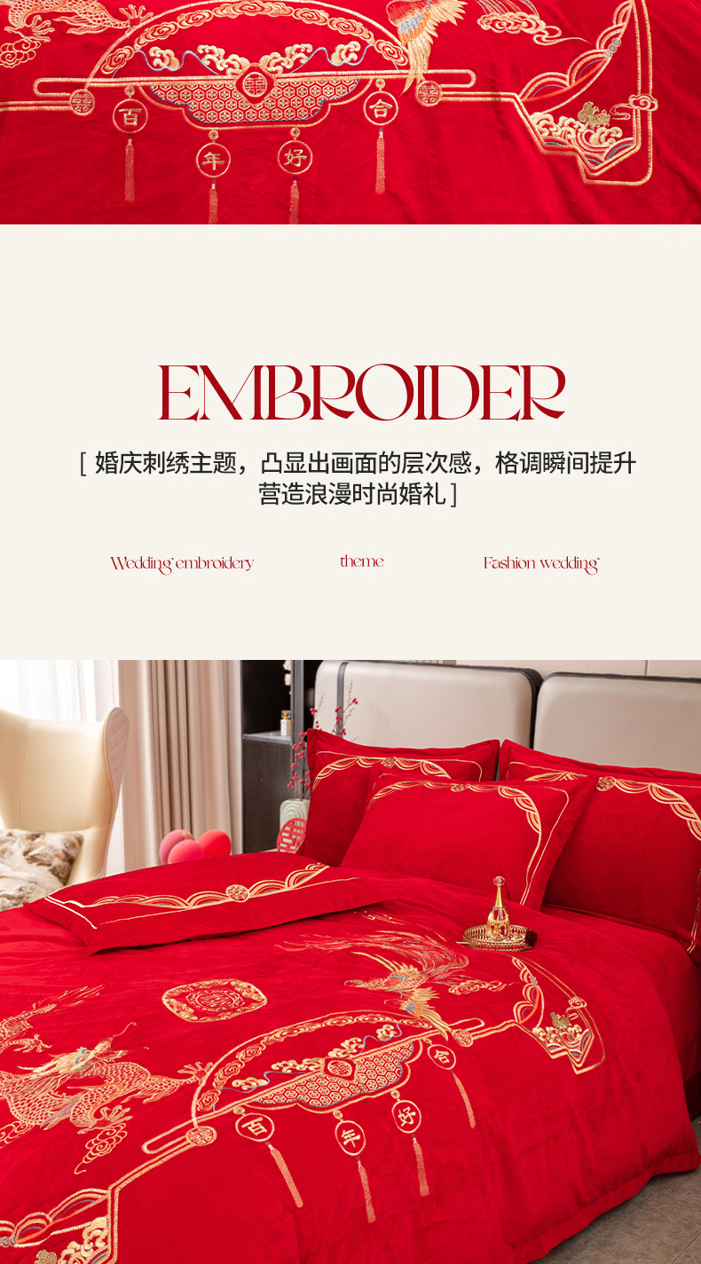 商品名称:张公子婚庆馆 2025新款宝宝绒婴儿绒婚庆刺绣四件套 高克重高端婚庆床上用品绣花四件套 贵族龙凤